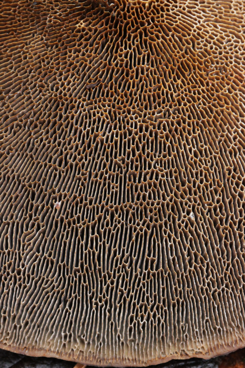 Auch habe ich bei Phlebia rufa noch nie centrifugal / strahlig auseinanderstrebende Strukturen gesehen. Das ist eher linear oder chaotisch angeordnet. Solche strahligen Wuchsweisen kenne ich in der Form wie hier eben nur von Phlebia radiata, Phlebia albida und Phlebia centrifuga (solange frisch zuwachsend bei den beiden letzten).