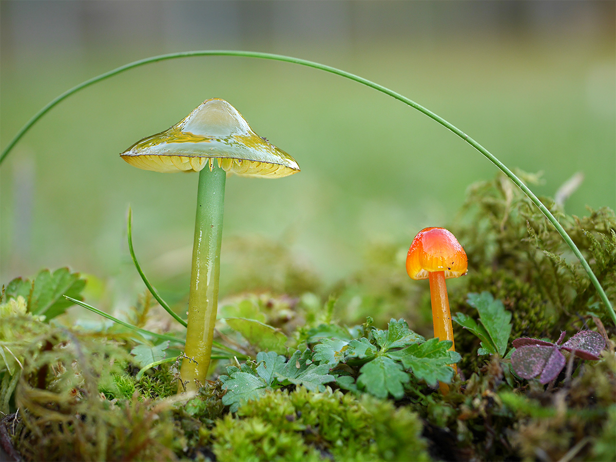 Irisle (Jahressiegerin) mit Papageien-Saftling (Hygrocybe psittacina) und unbekanntem Saftling (Hygrocybe spec.)