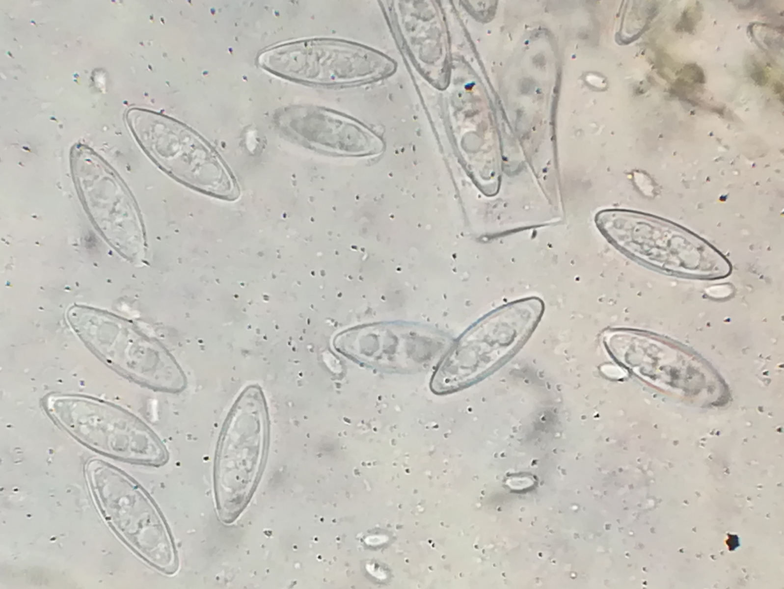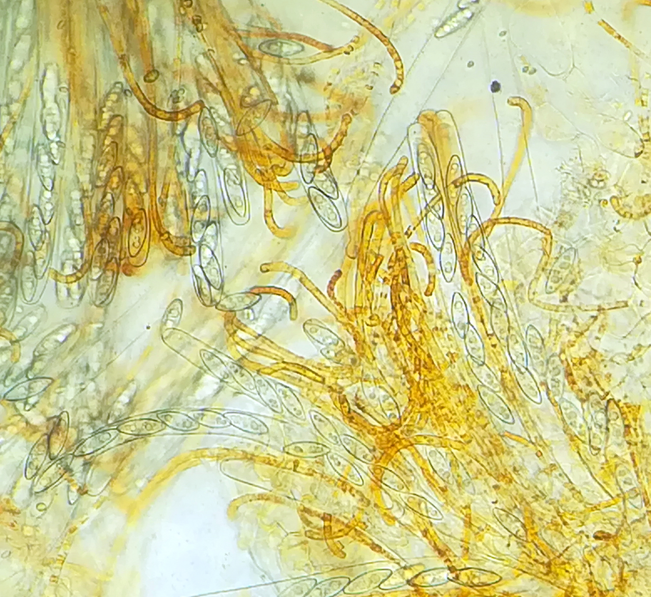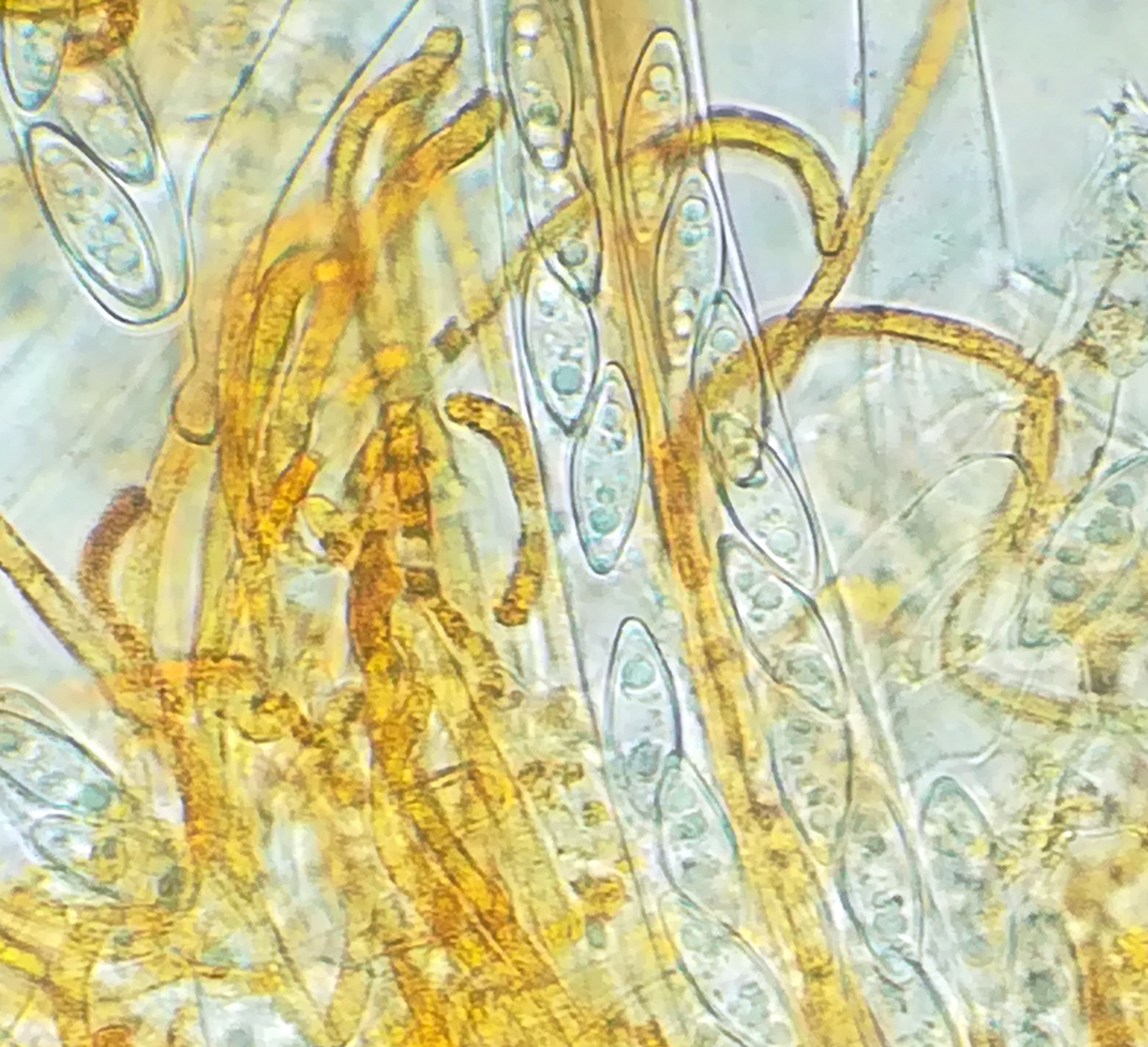 auf unserer Tour am letzten Wochenende in der Krelinger Heide fanden wir an mehreren Stellen kleine Becherchen im dicken Moos. Die Stellen werden sehr gut von Kaninchen, Hasen, Rehen und Heidschnucken frequentiert, daher ist ein Kontakt mit Urin nicht unwahrscheinlich. Eigentlich weist dieser Umstand, sowie die apikal gekrümmten Paraphysen auf Byssonectria terrestris hin. Was mich allerdings irritiert ist das fehlende Subikulum, sowie die Sporengröße (schwankt kaum um 25 x 8 µm). Daher die Frage: Darf B. terrestris das?![]()