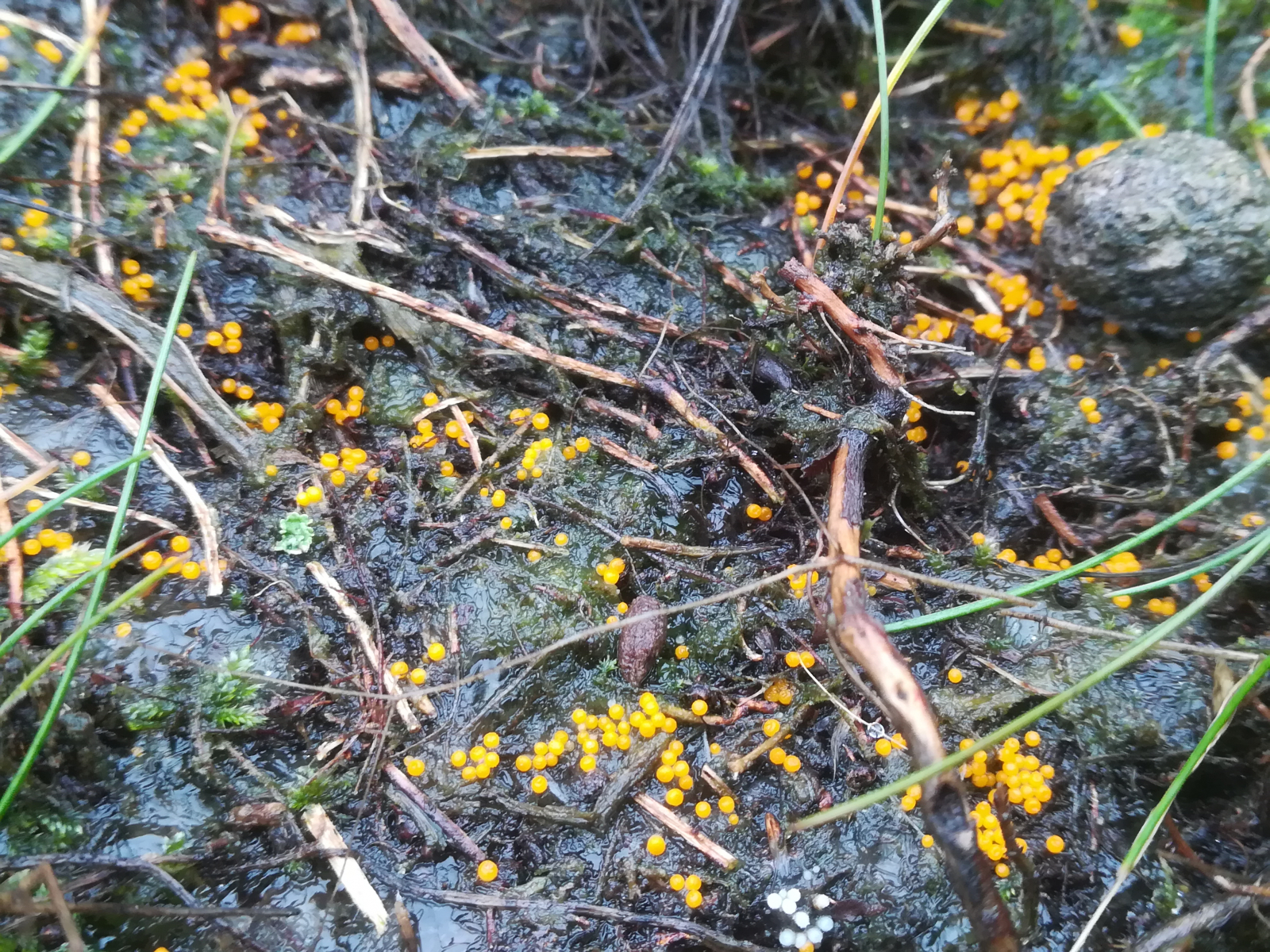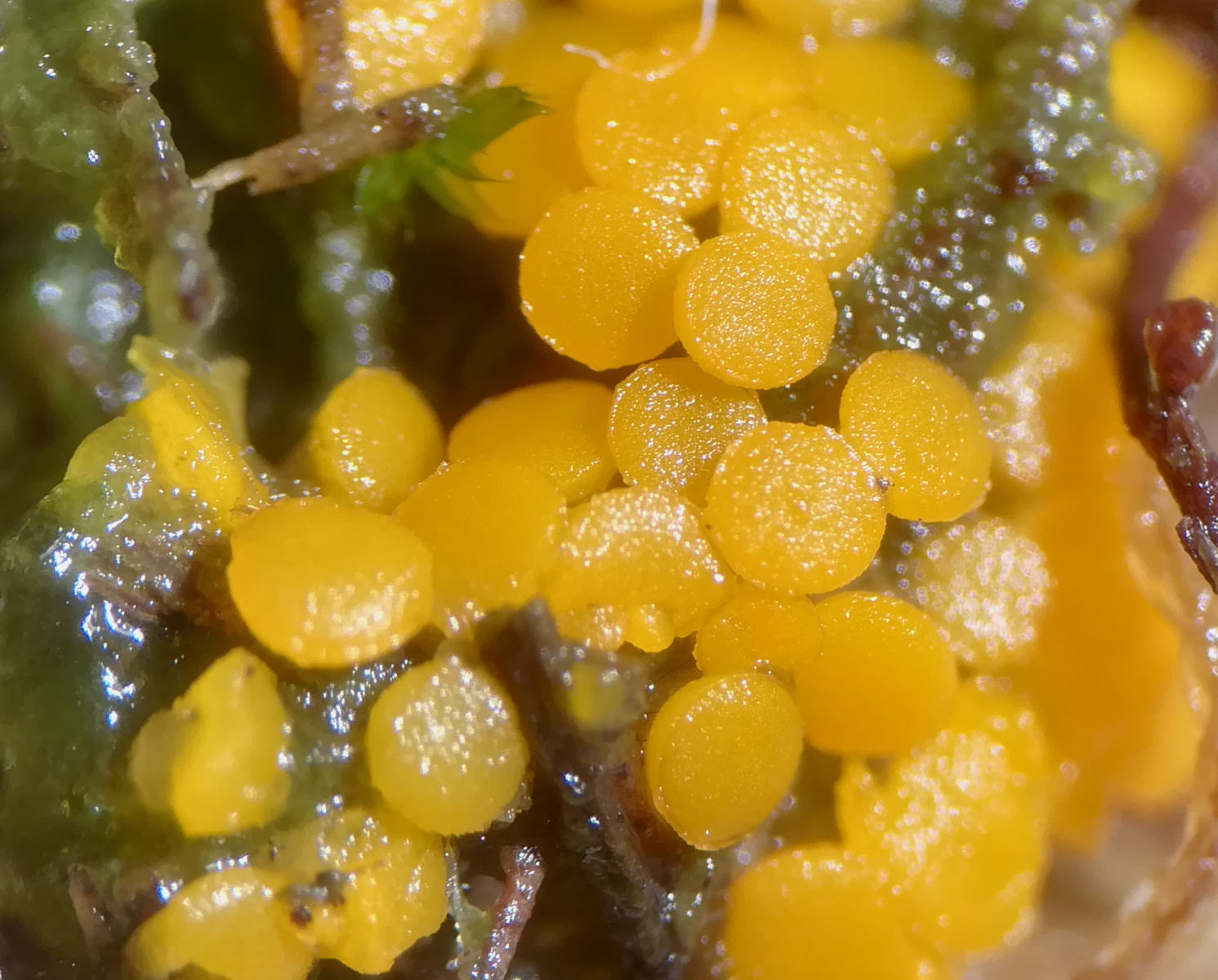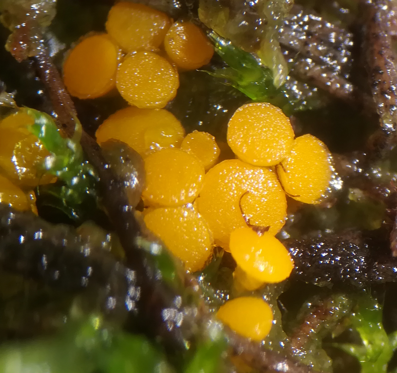 auf unserer Tour am letzten Wochenende in der Krelinger Heide fanden wir an mehreren Stellen kleine Becherchen im dicken Moos. Die Stellen werden sehr gut von Kaninchen, Hasen, Rehen und Heidschnucken frequentiert, daher ist ein Kontakt mit Urin nicht unwahrscheinlich. Eigentlich weist dieser Umstand, sowie die apikal gekrümmten Paraphysen auf Byssonectria terrestris hin. Was mich allerdings irritiert ist das fehlende Subikulum, sowie die Sporengröße (schwankt kaum um 25 x 8 µm). Daher die Frage: Darf B. terrestris das?![]()
