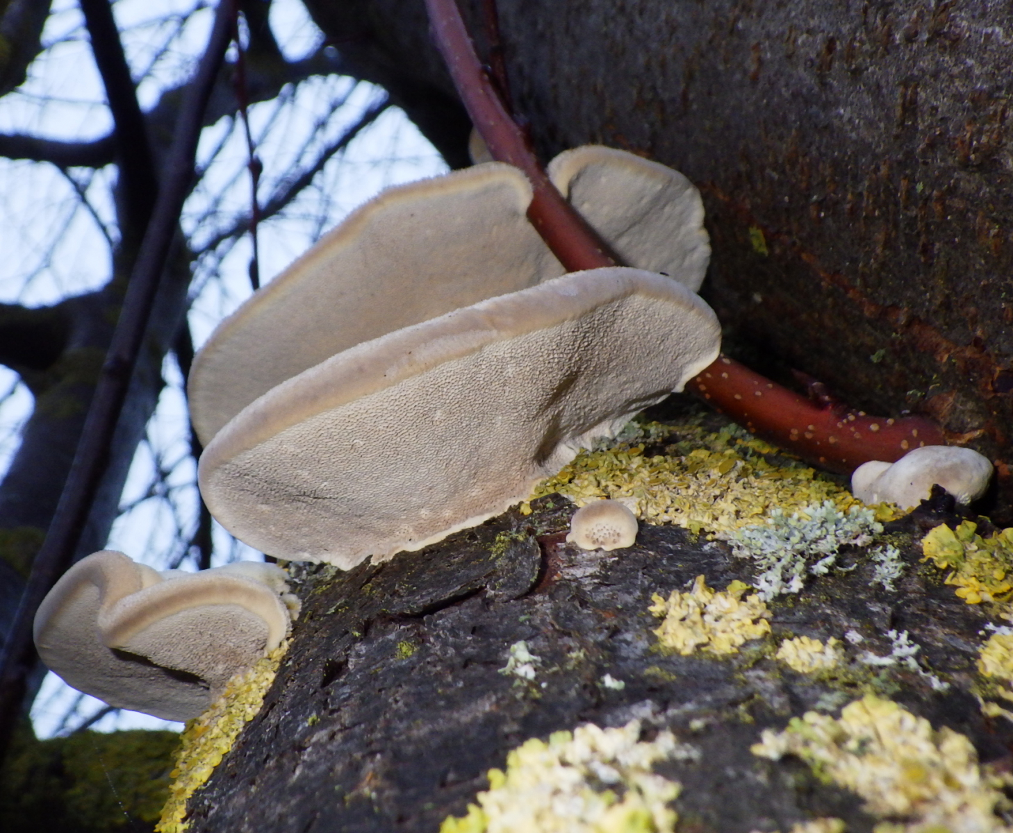Hier habe ich noch ein Bild der rötenden Tramete von unten