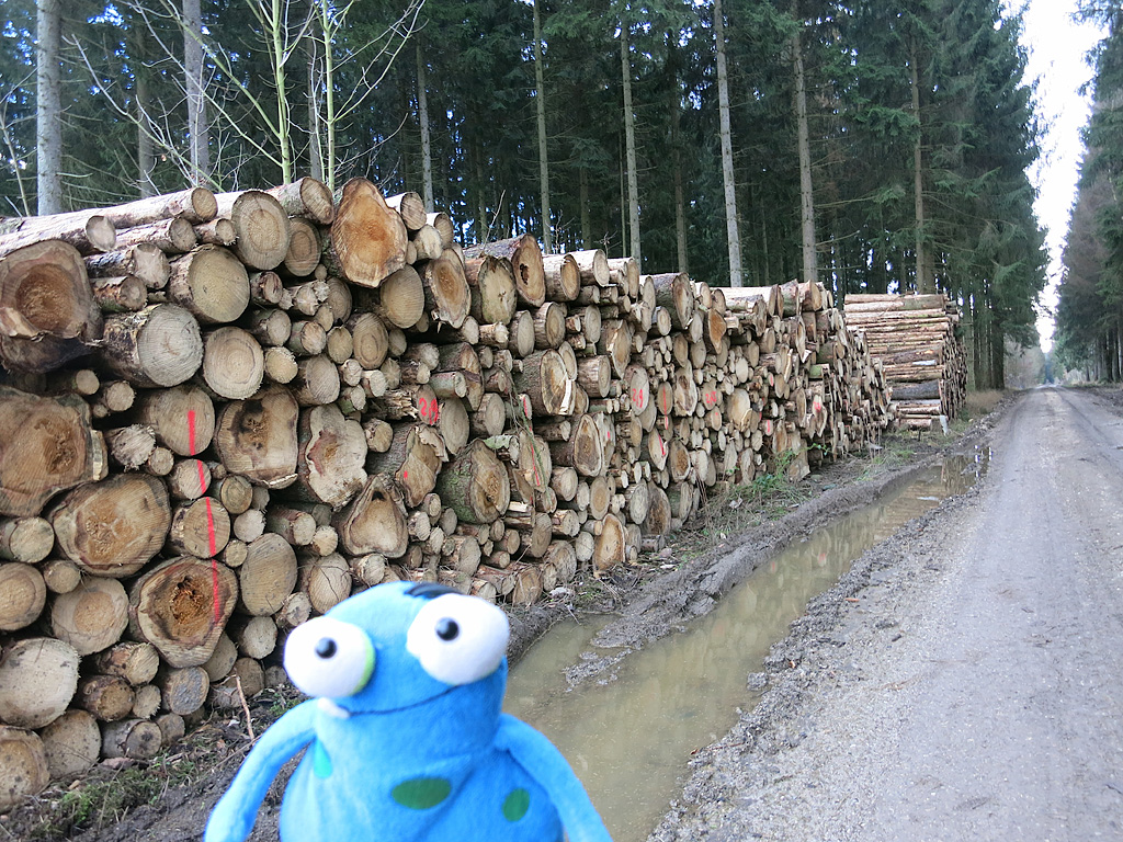 Ich weiß, dass die Fichten bei mir nicht natürlich vorkommen. Außerdem haben sie hier die letzten 2 Jahre sehr unter der Dürre gelitten. Die Förster räumen diesen Wald scheinbar richtig auf.