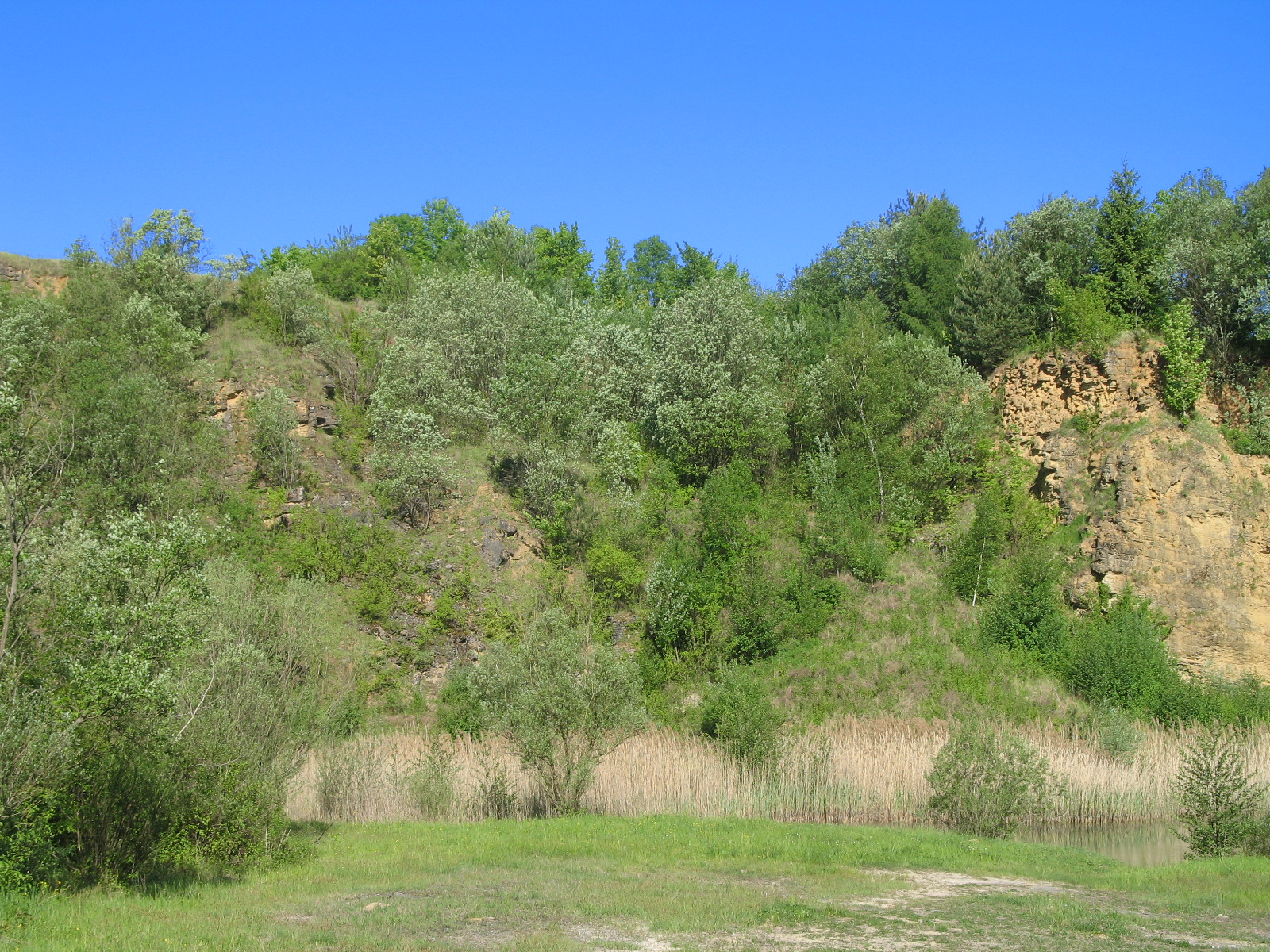 im Steinbruch selbst stehen hauptsächlich Weiden, Erlen, Birken, Kiefern.