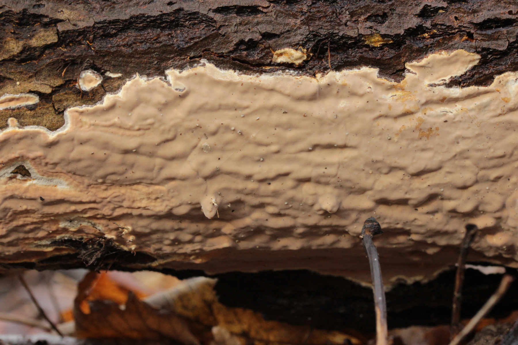 das"seltsame pelzige Teil" an der Unterseite des Ganoderma applanatum- Fruchtkörpers ist Sporophagomyces chrysostomus, die nur an am Flachen Lackporling vorkommt, und sich, wenn man dem Namen glauben mag, wohl von dessen Sporen ernährt.