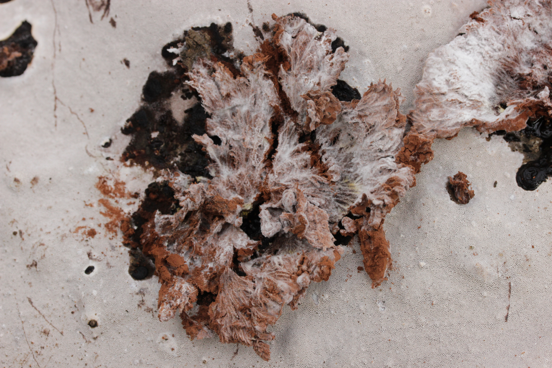 3. Auf der Unterseite von Ganoderma applanatum wuchs dieses seltsame Gebilde. Mit dem Mikroskop habe ich noch nicht reingeschaut, das kommt aber noch.