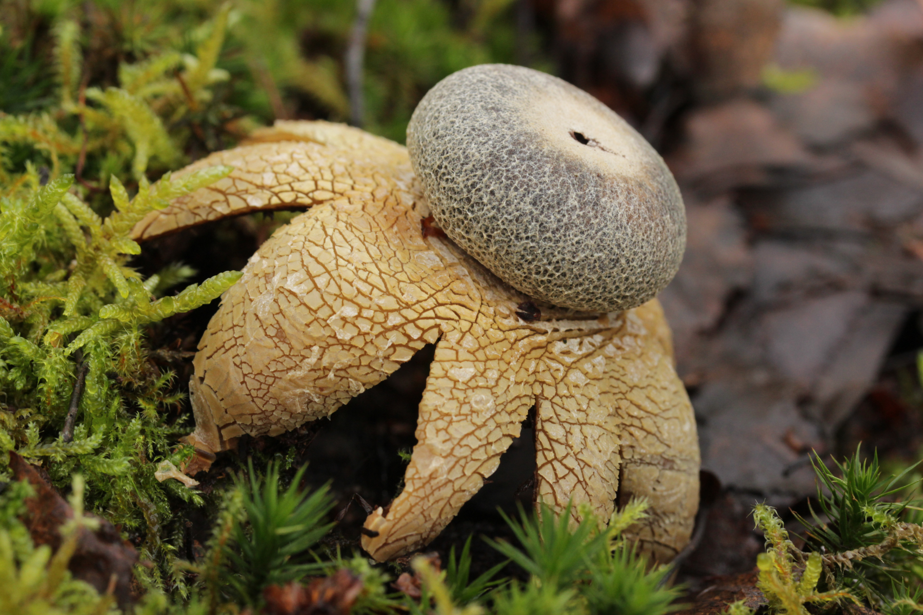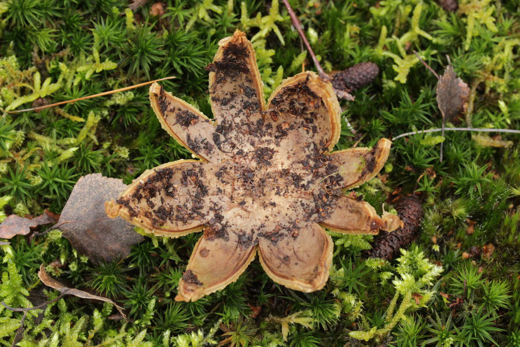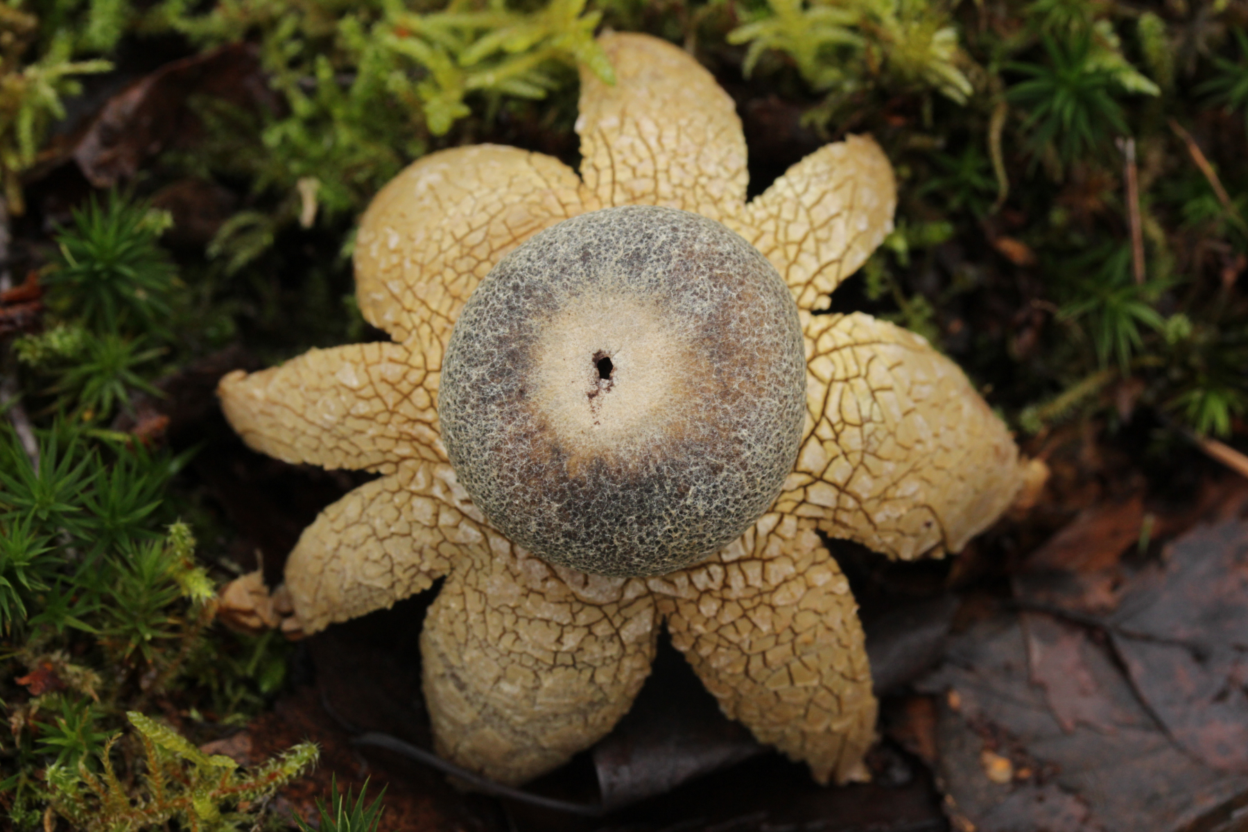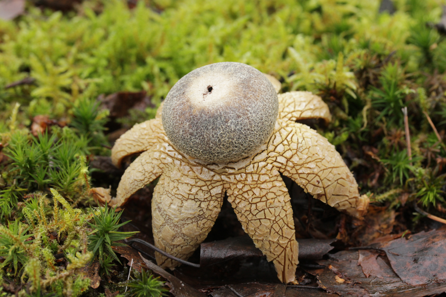 10. Normalerweise macht der APR am Ende des Hespertals immer kehrt und es geht zurück zum Ausgangspunkt. Da ich mit Bus und Bahn unterwegs bin, habe ich diese Einschränkung natürlich nicht und so bin ich dann am Baldeneysee weiter Richtung Essen-Kupferdreh. Dabei fiel mir dann dieser hübsche Zeitgenosse aus: Astraeus hygrometricus. Interessanterweise scheint der nur bei Feuchtigkeit aufzuklappen. Jetzt wo er zu Hause trocknet, biegen sich die Arme langsam nach oben.