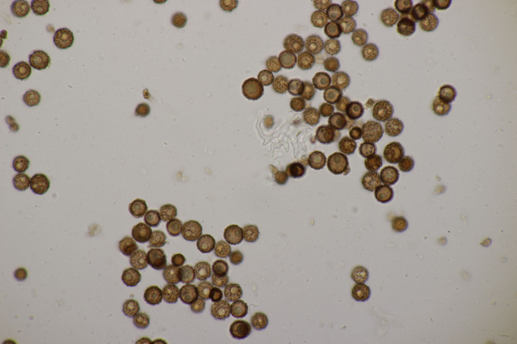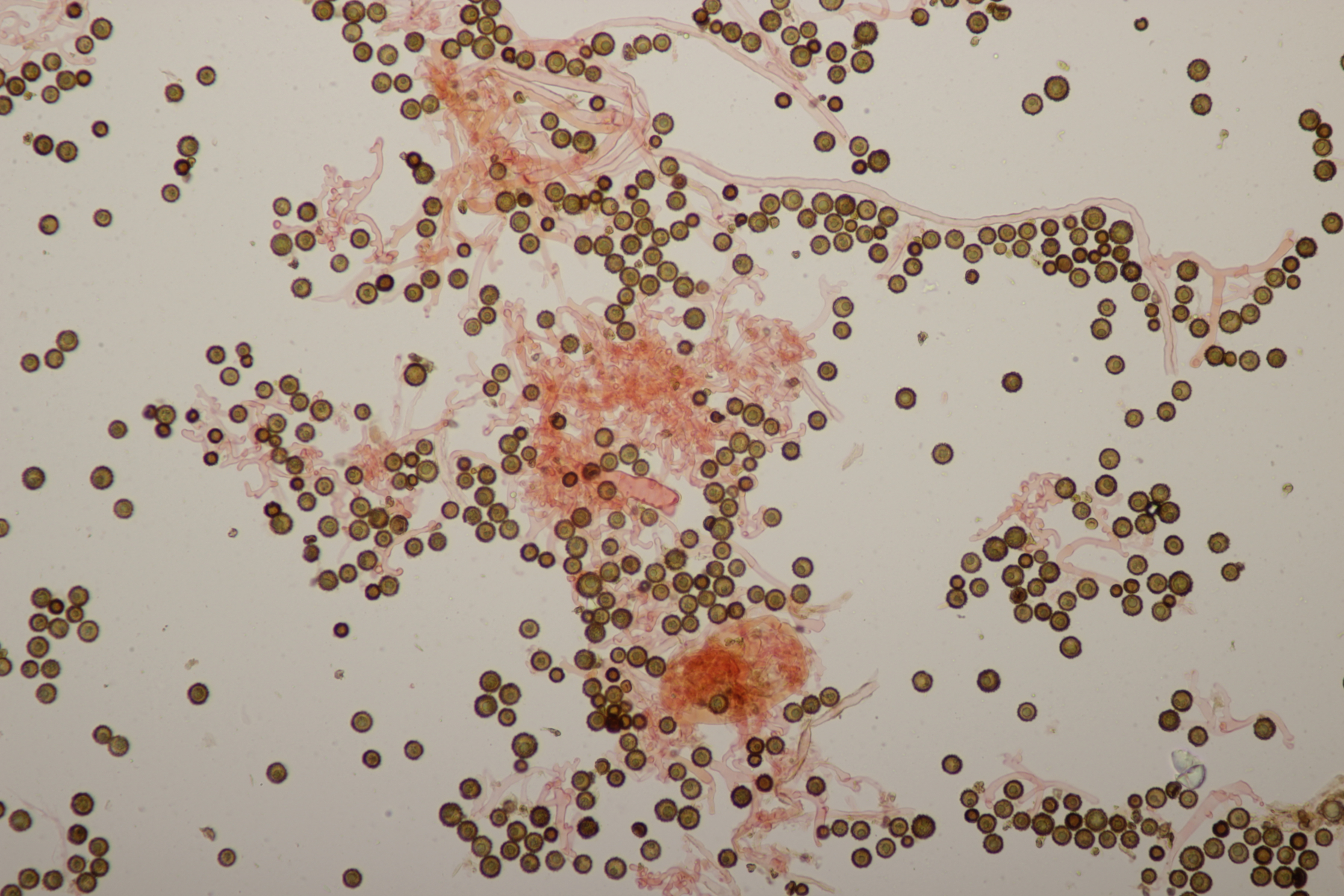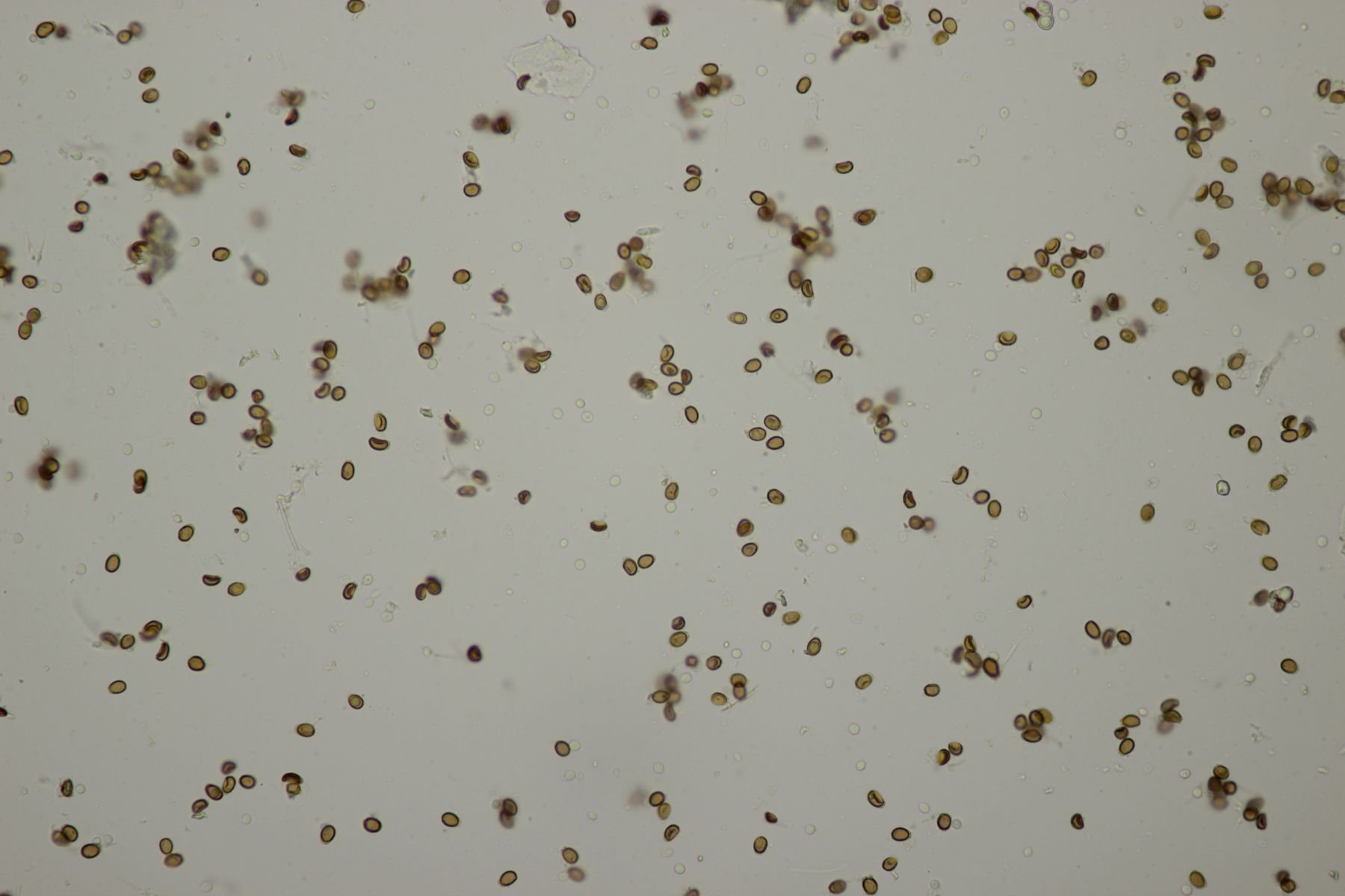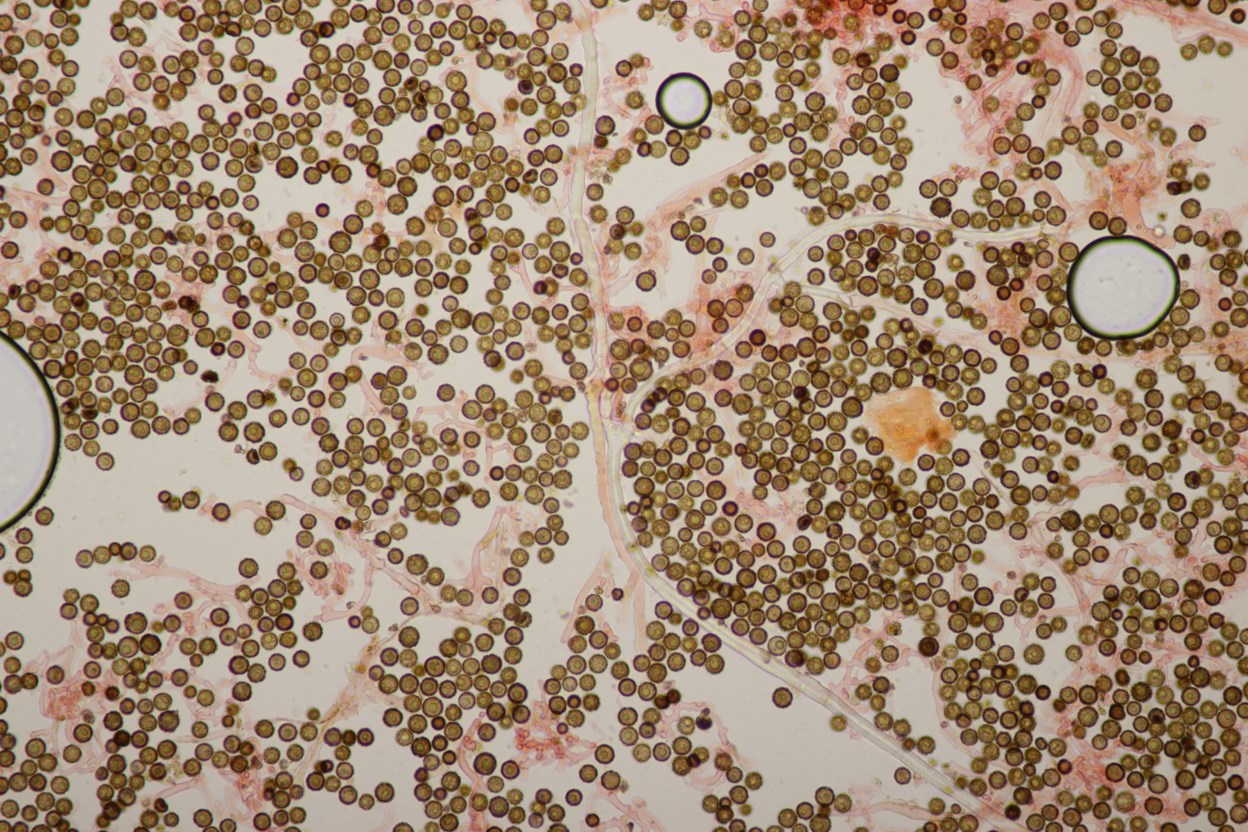 Der Sporophagomyces chrysostomus scheint ja ein echter Wernerpilz zu sein, wenn man sich mal die Verbreitungskarte anschaut. Im Mikroskop waren dann auch in erster Linie nur Ganoderma-Sporen zu sehen: