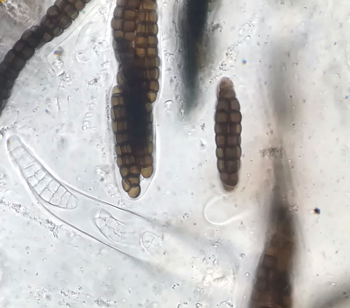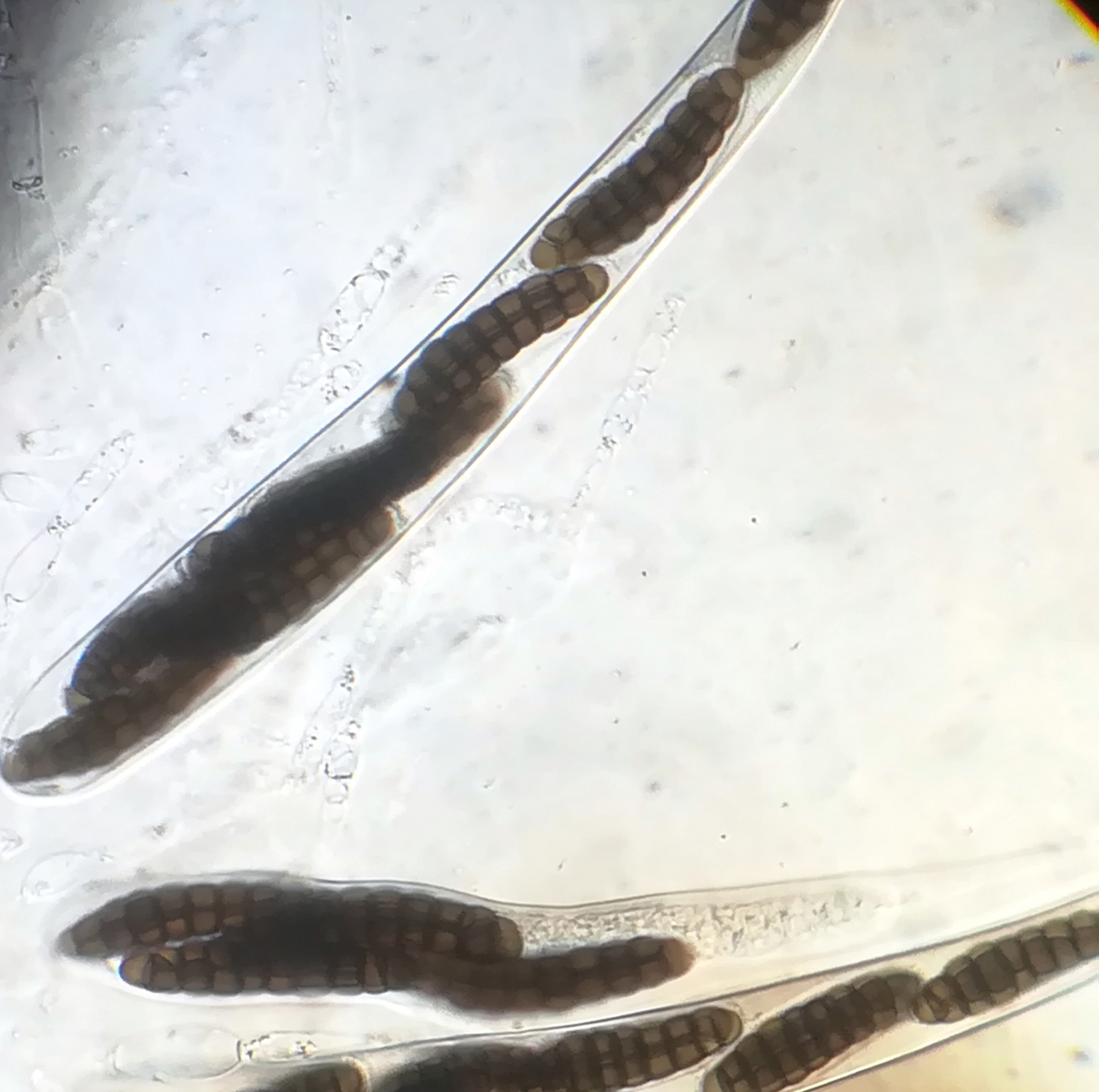 Mit 9 transversalen Septen und Sporenmaßen von 44 - 50 x 9,4 - 11 µm gut gegen verwandte Arten abzugrenzen. Definitiv ein absolutes Highlight für mich, diesen Pilz unter dem Mikroskop gehabt zu haben!