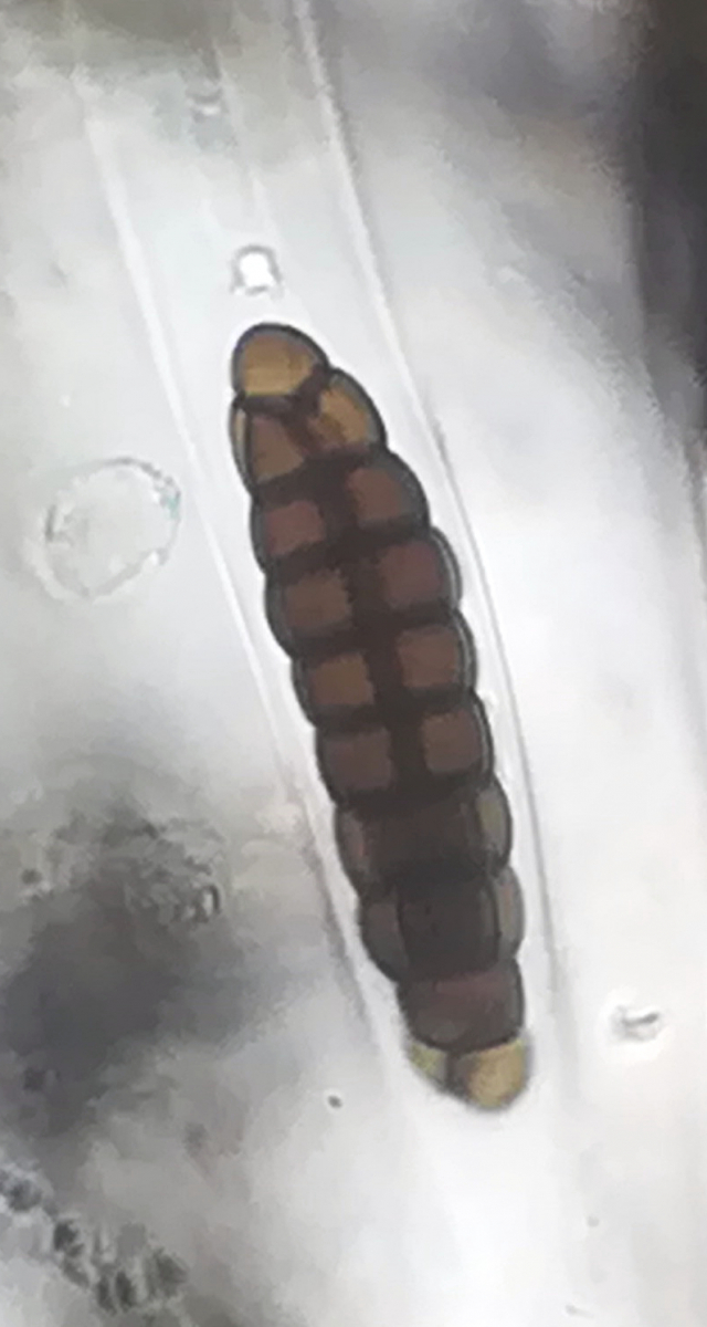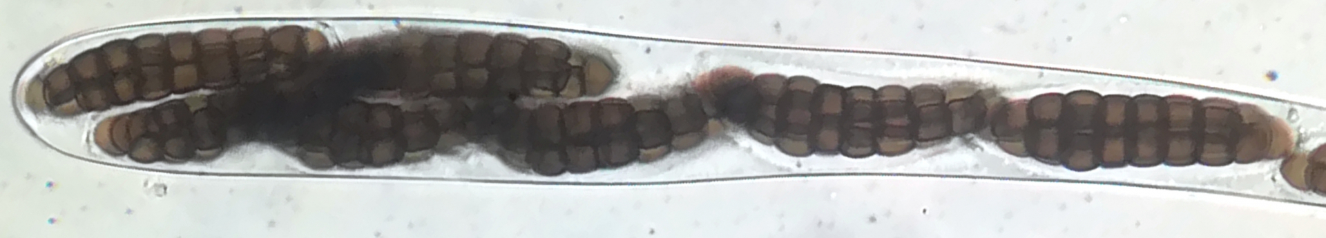 Mit 9 transversalen Septen und Sporenmaßen von 44 - 50 x 9,4 - 11 µm gut gegen verwandte Arten abzugrenzen. Definitiv ein absolutes Highlight für mich, diesen Pilz unter dem Mikroskop gehabt zu haben!