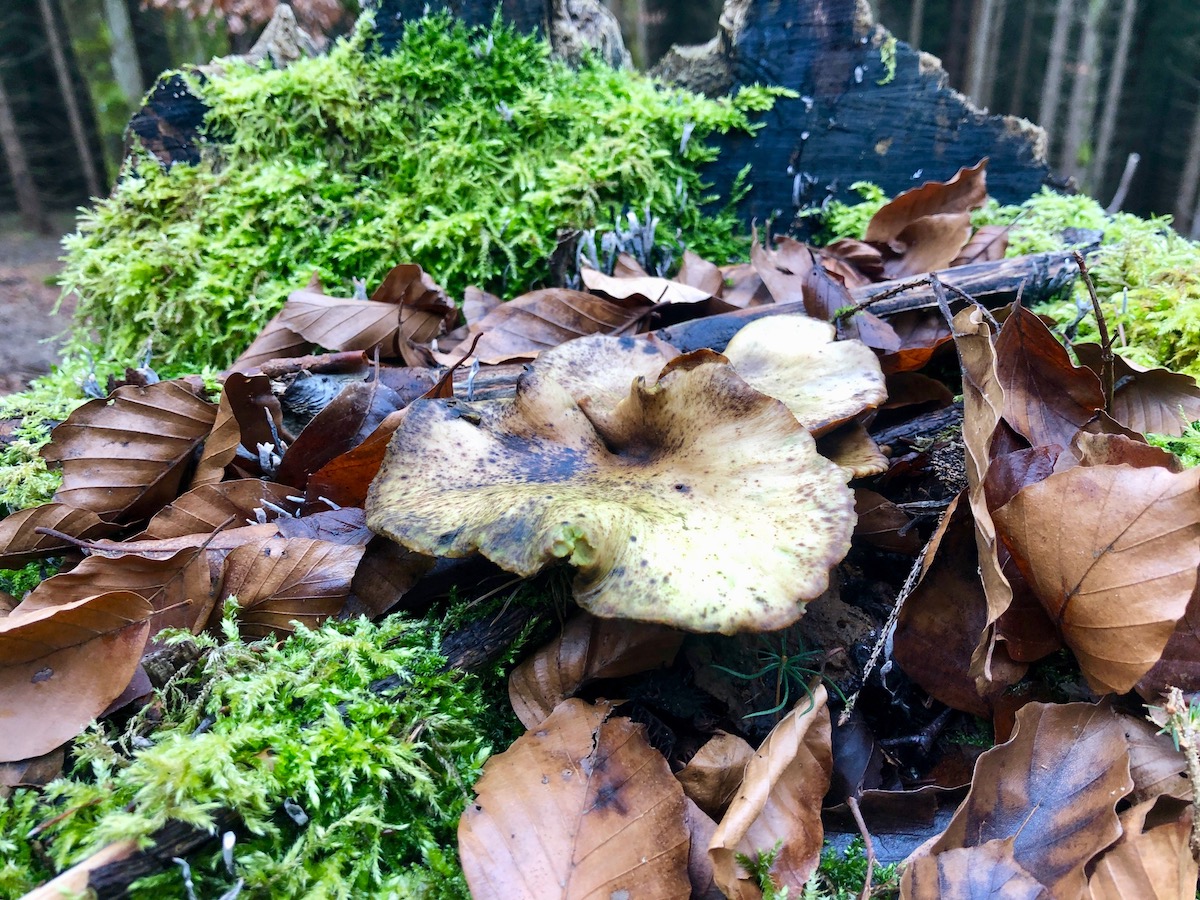 Zuerst stand da dieser Zitterzahn. eigentlich der hübscheste, der mir bis jetzt begegnet ist. Nach solchen Funden denke ich immer, dass es eigentlich nicht besser werden kann mit den Pilzen, die noch zu finden sein werden.