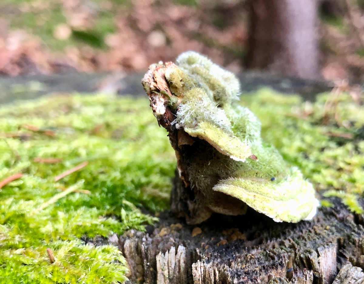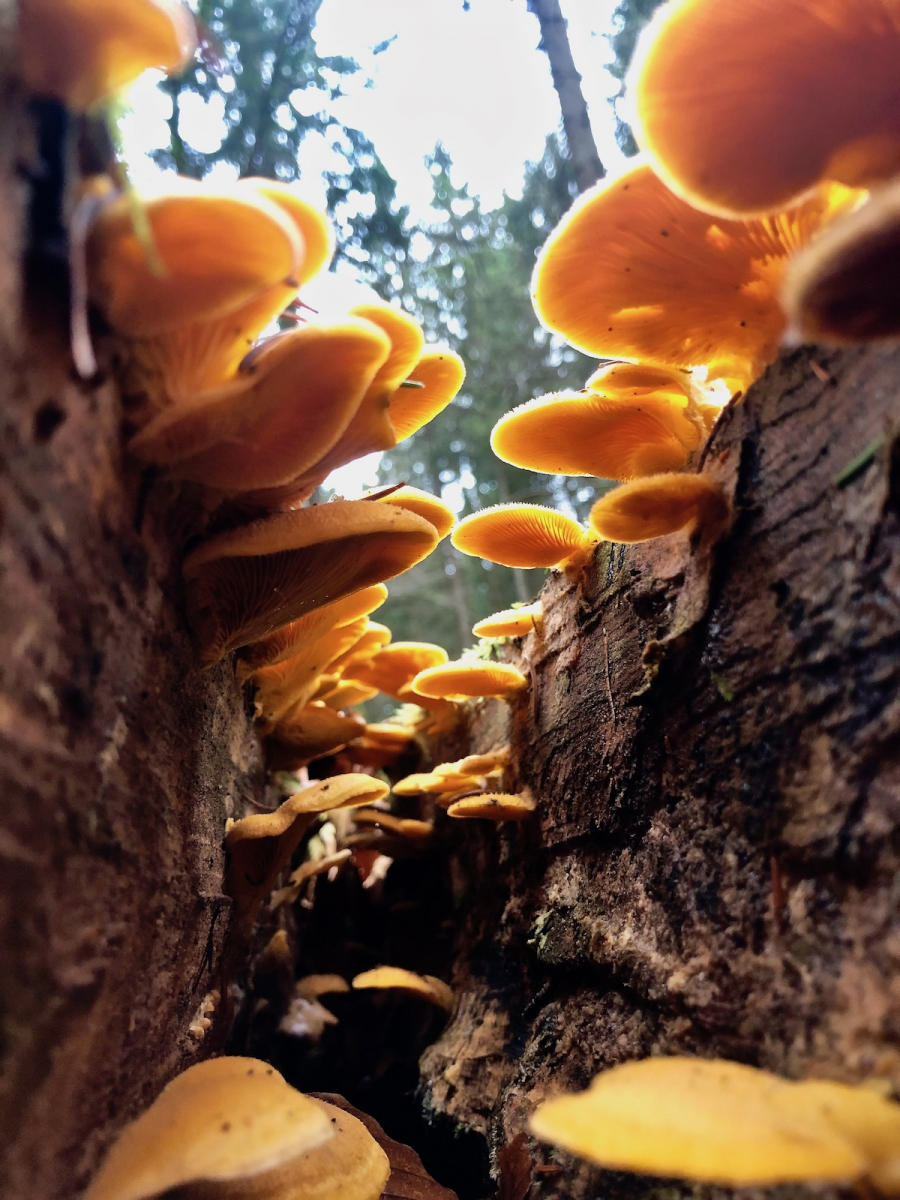 6 Die Pilze wachsen übereal an diesem Stamm, drüber, drunter und