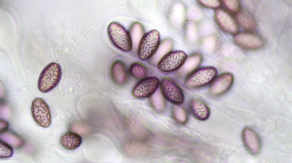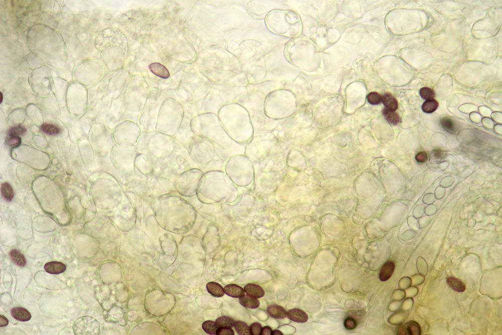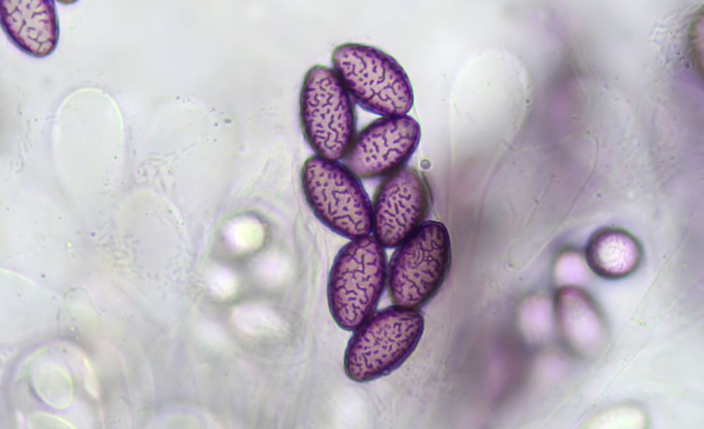 Nunn ist die Art ja kaum zu verwechseln, allerdings fiel zunächst Torsten auf und mir dann auch, dass die Sporenornamente in Van Brummelen irgendwie anders gezeichnet sind, so fast wolkenförmig-verklumpt. Nun hat die Art ja ein Epispor und das könnte vielleicht wenn es etwas verschrumpelt so aussehen, aber auf allen Fotos, die ich kenne sieht man das eher mit unregelmäßigen Linien wie hier auch. Weiß jemand vielleicht näheres dazu?