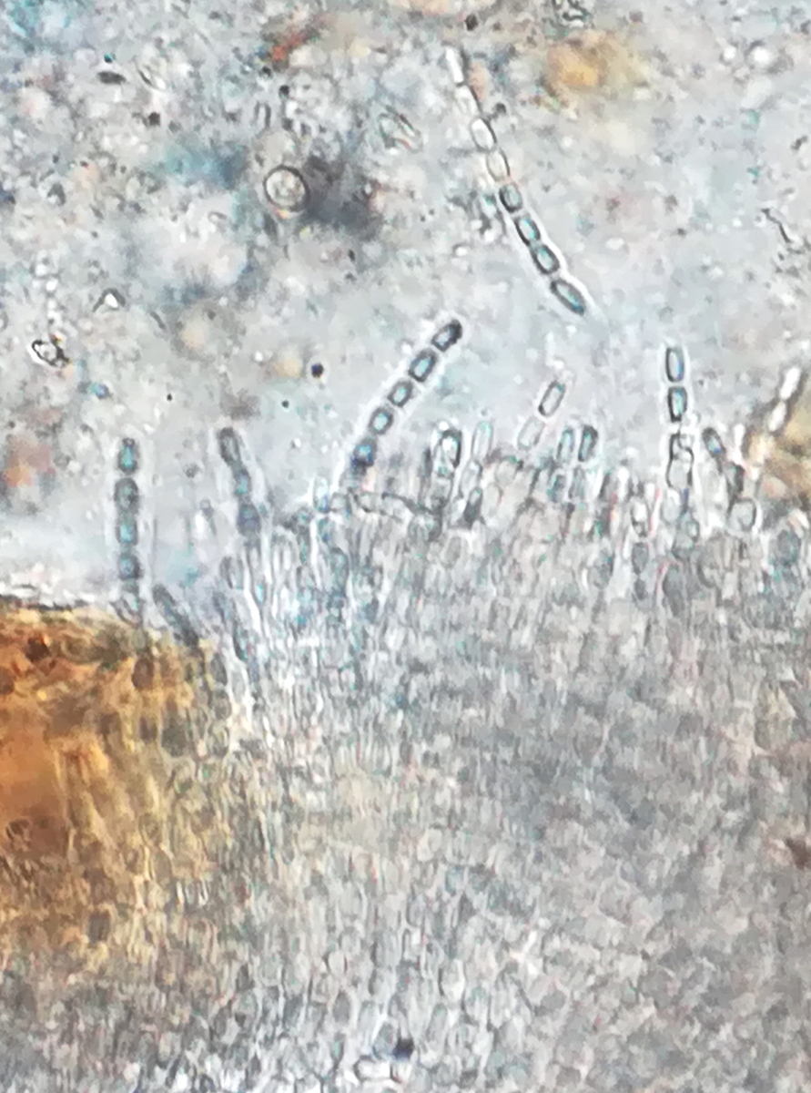 Die vermeintlichen Sporen sind uniseriate Asci mit Pol an Pol liegenden hyalinen Sporen.