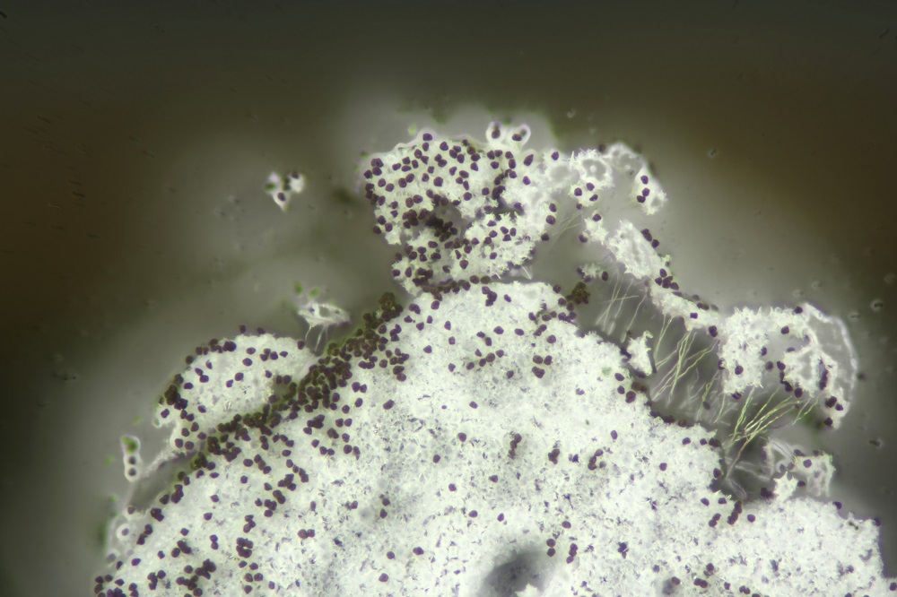 Die Kalkkristalle von der Peridie sind auf Deinem vorletzten Forto gut zu sehen. Das Vorhanden dieser unterscheiden Didymium von Physarum oder Diderma.