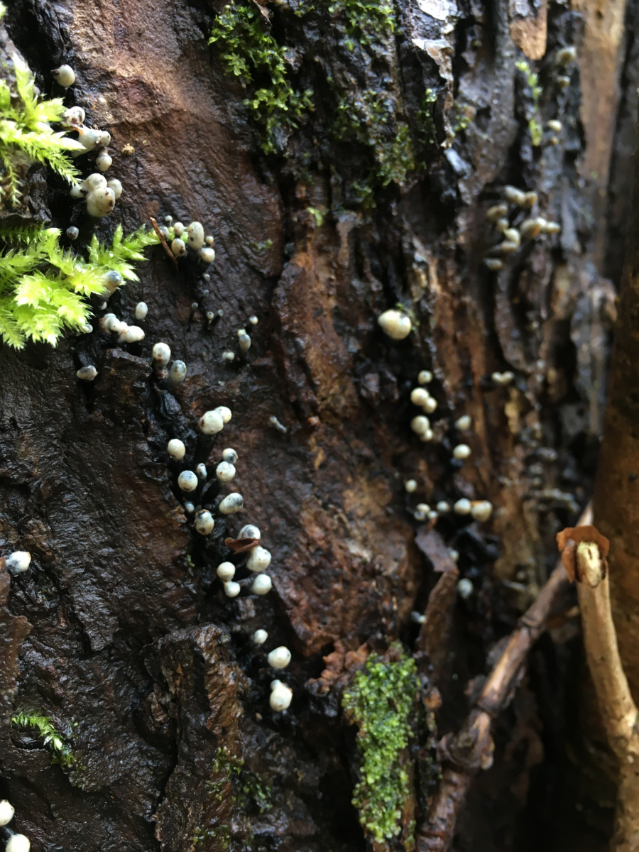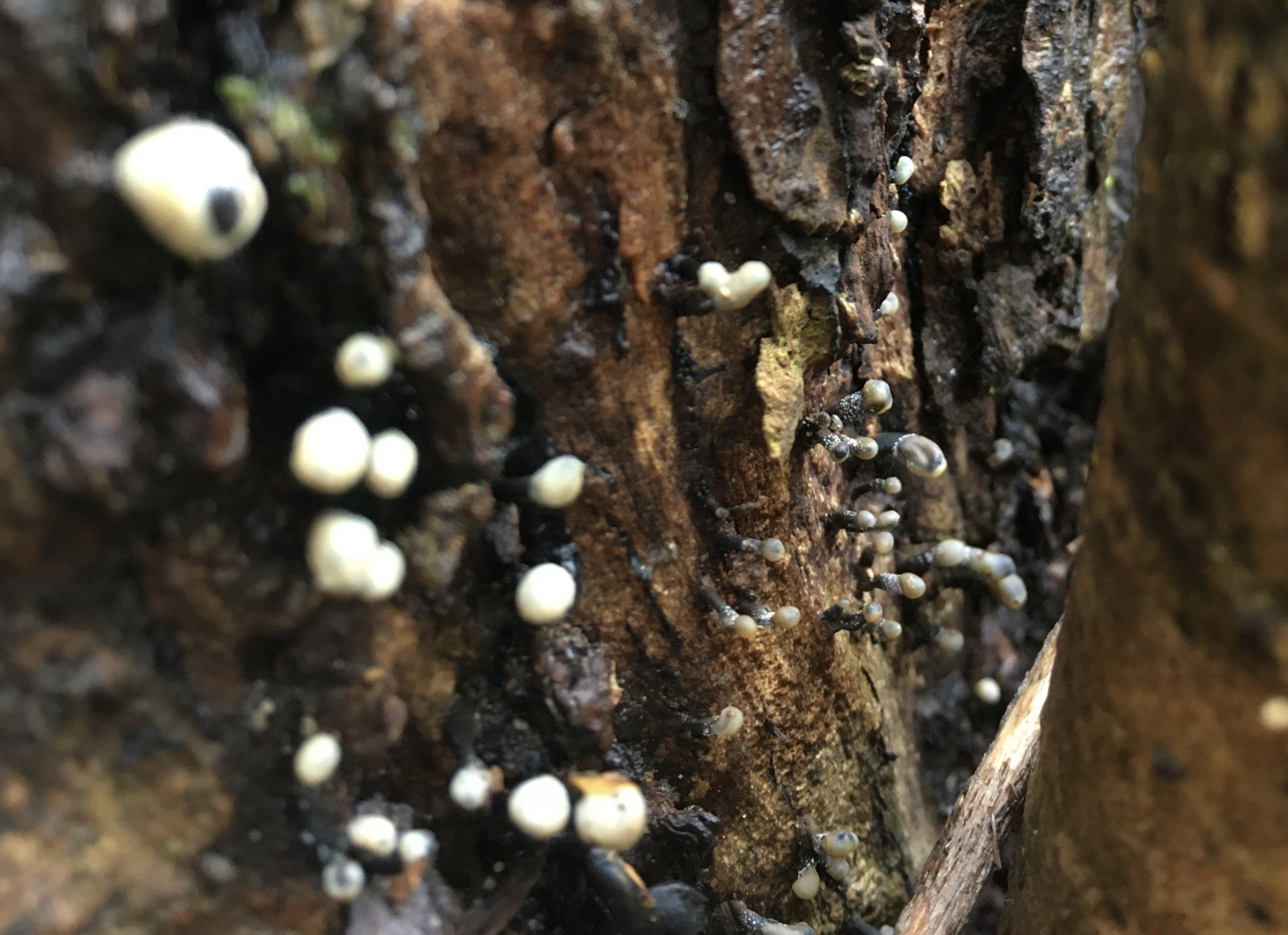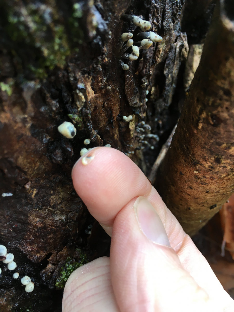 Ein kleiner Umweg zur Bushaltestelle hat mich heute an einen Pappel?strunk geführt. Von fern lockten mich ein paar Samtfußrüblinge und ich wollte mal überprüfen ob die evtl. was für die Nudeln heute abend wären. (Ich gebe ihnen nochmal bis Montag). Da entdeckte ich etwas Spannendes zu meinen Füßen. Kleine Keulchen... mit witzigen weissen Sporenmützen.