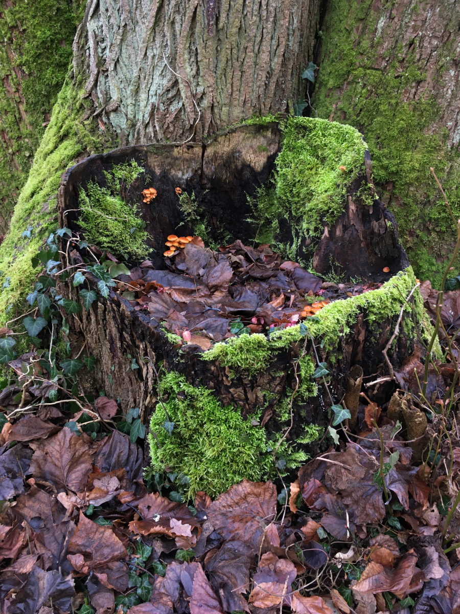 unten rechts beim Efeu leuchten kleine Tüpfel...