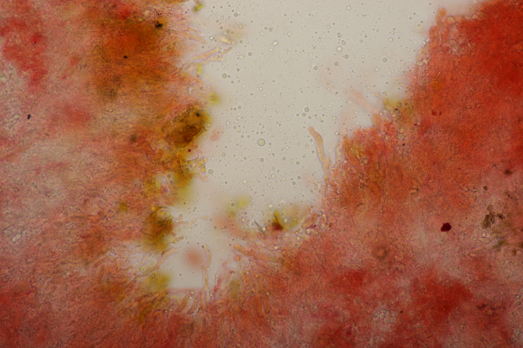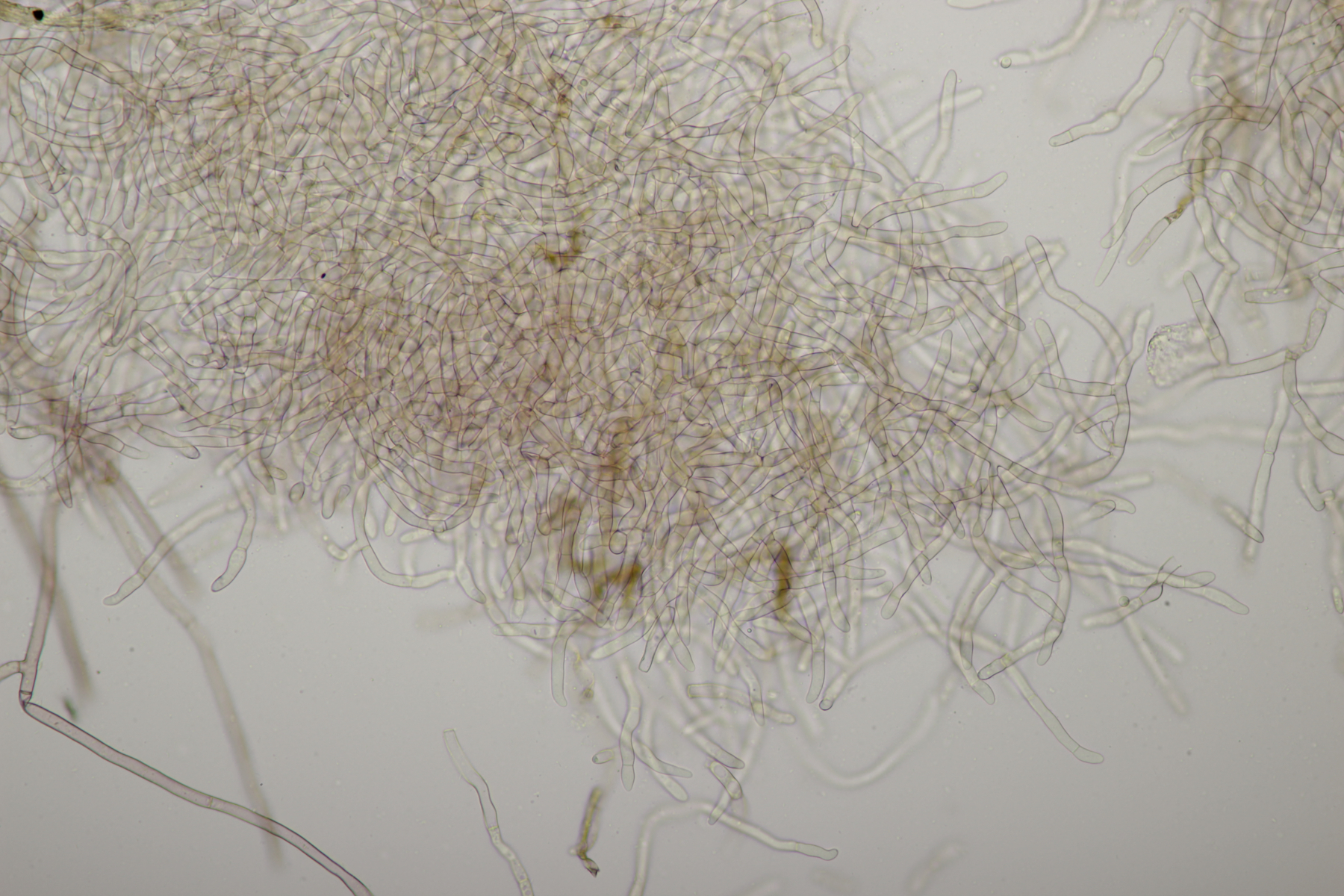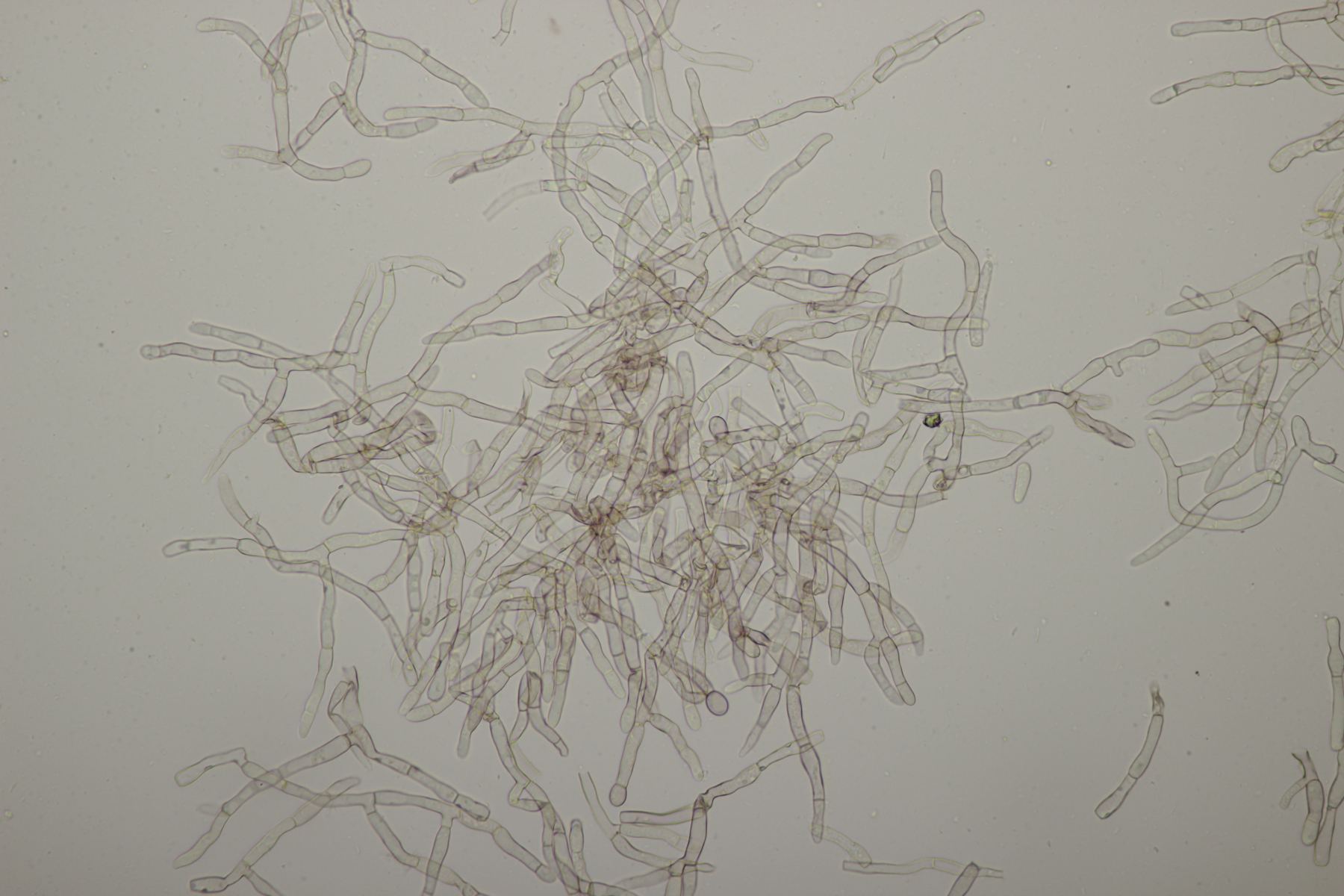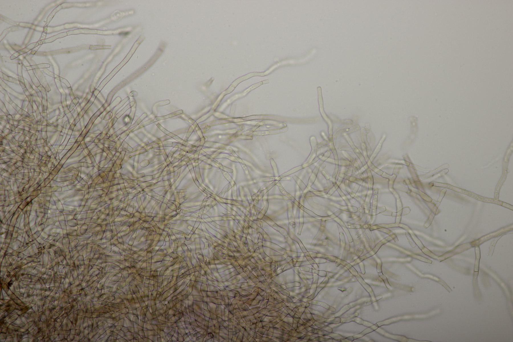 7. Vuilleminia auf Salix. Sporen (22.1+-1.7) µm x (6.1+-0.4) µm, Q=3.7+-0.3. Ich meine auch Zystiden zu sehen, die ich am ehesten als zylindrisch beschreiben würde. Mit der Sporengröße käme ich dann bei V. coryli aus, die wohl auch an Salix geht.