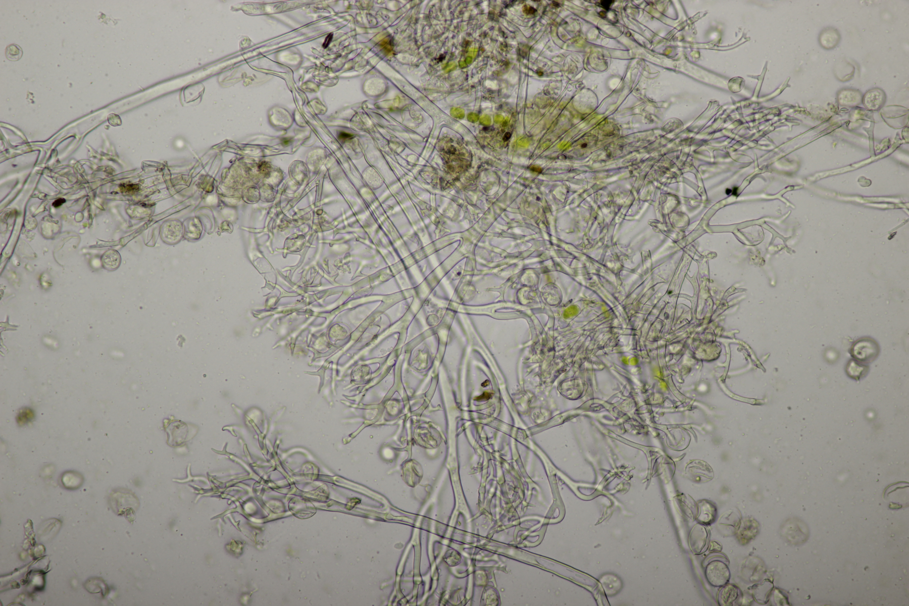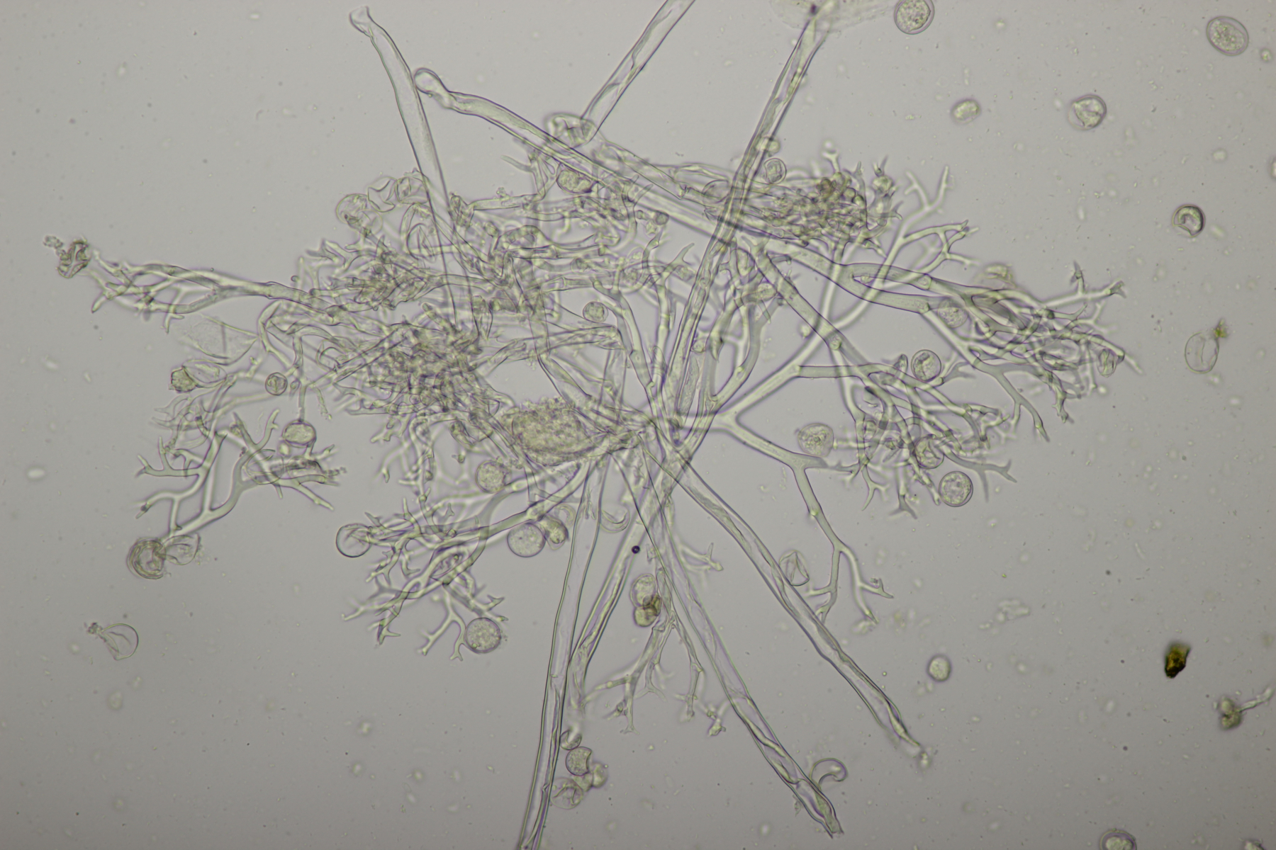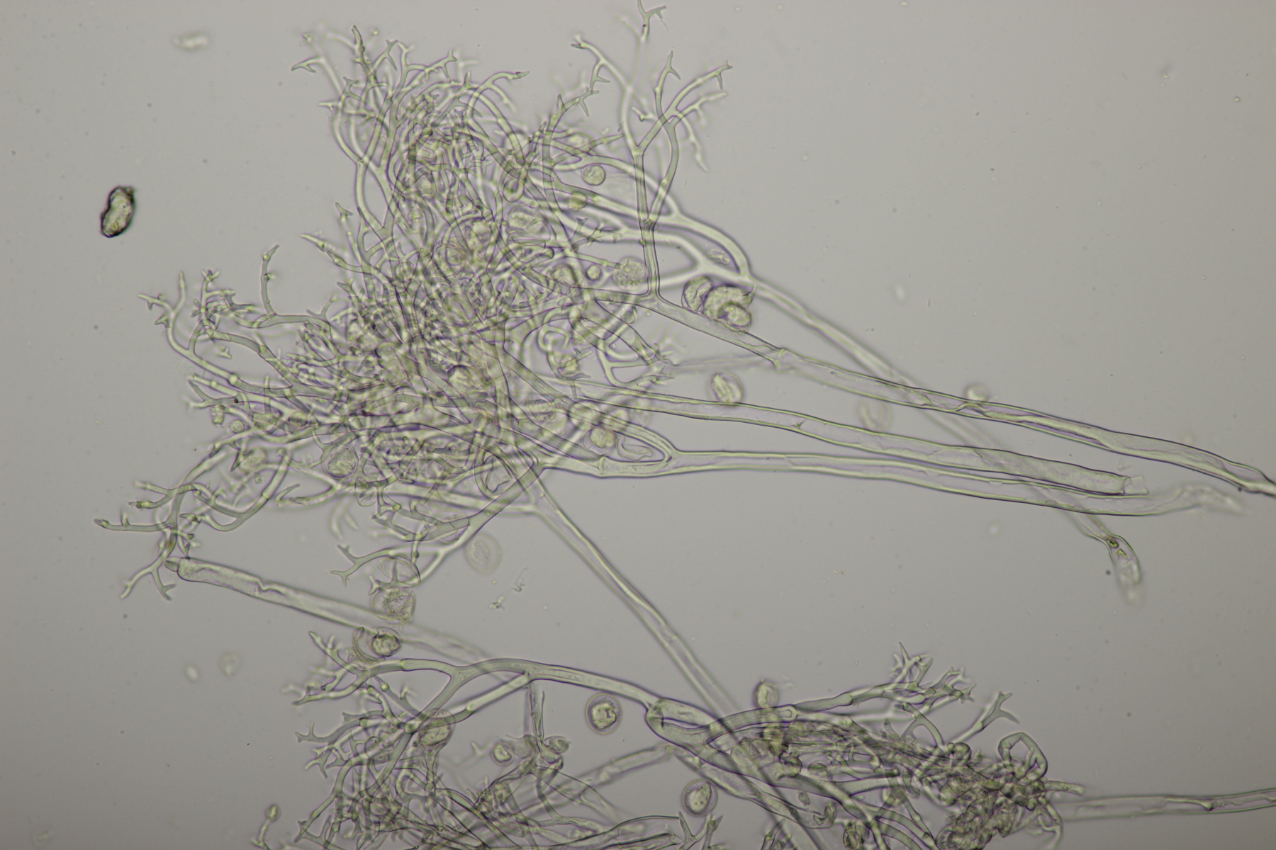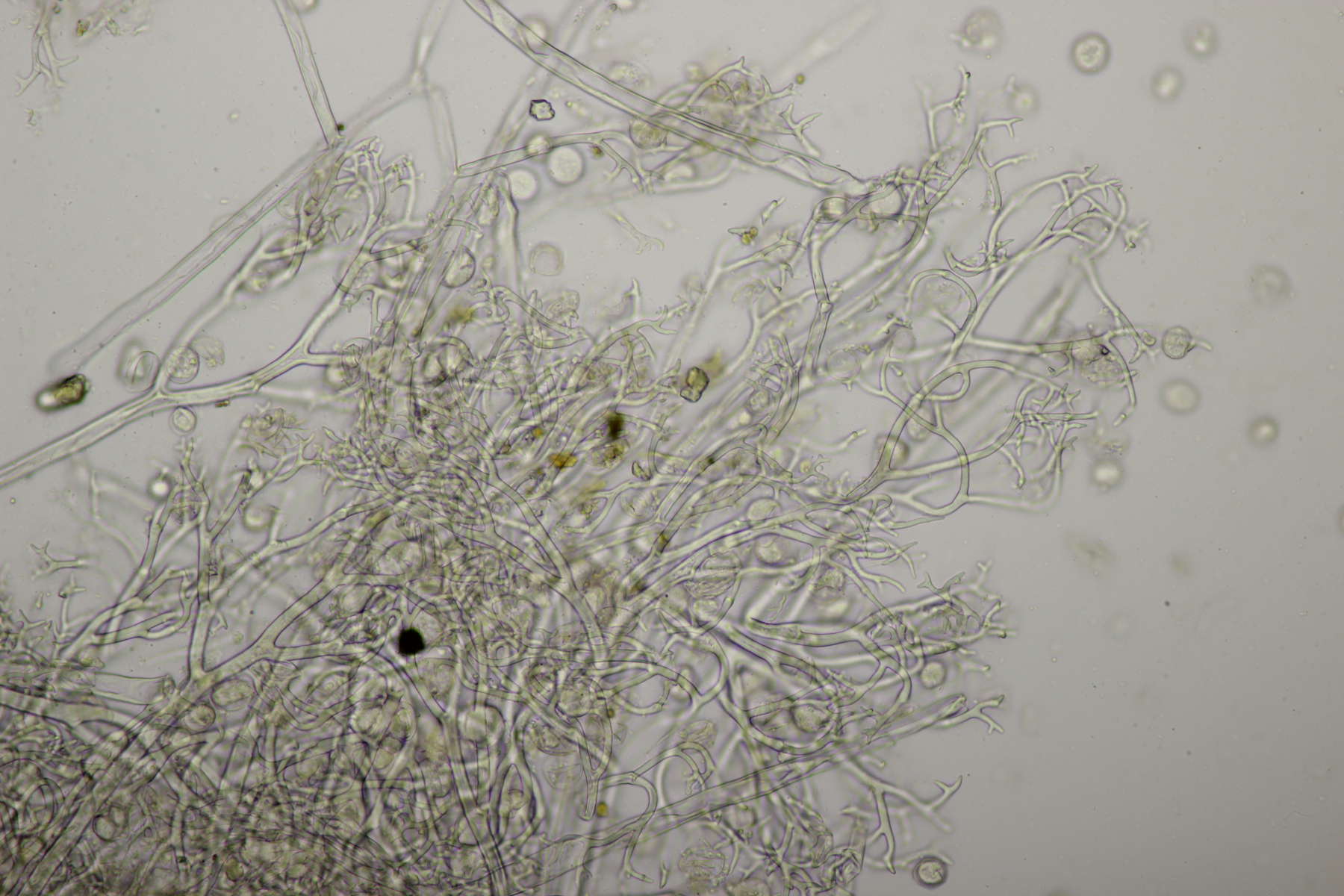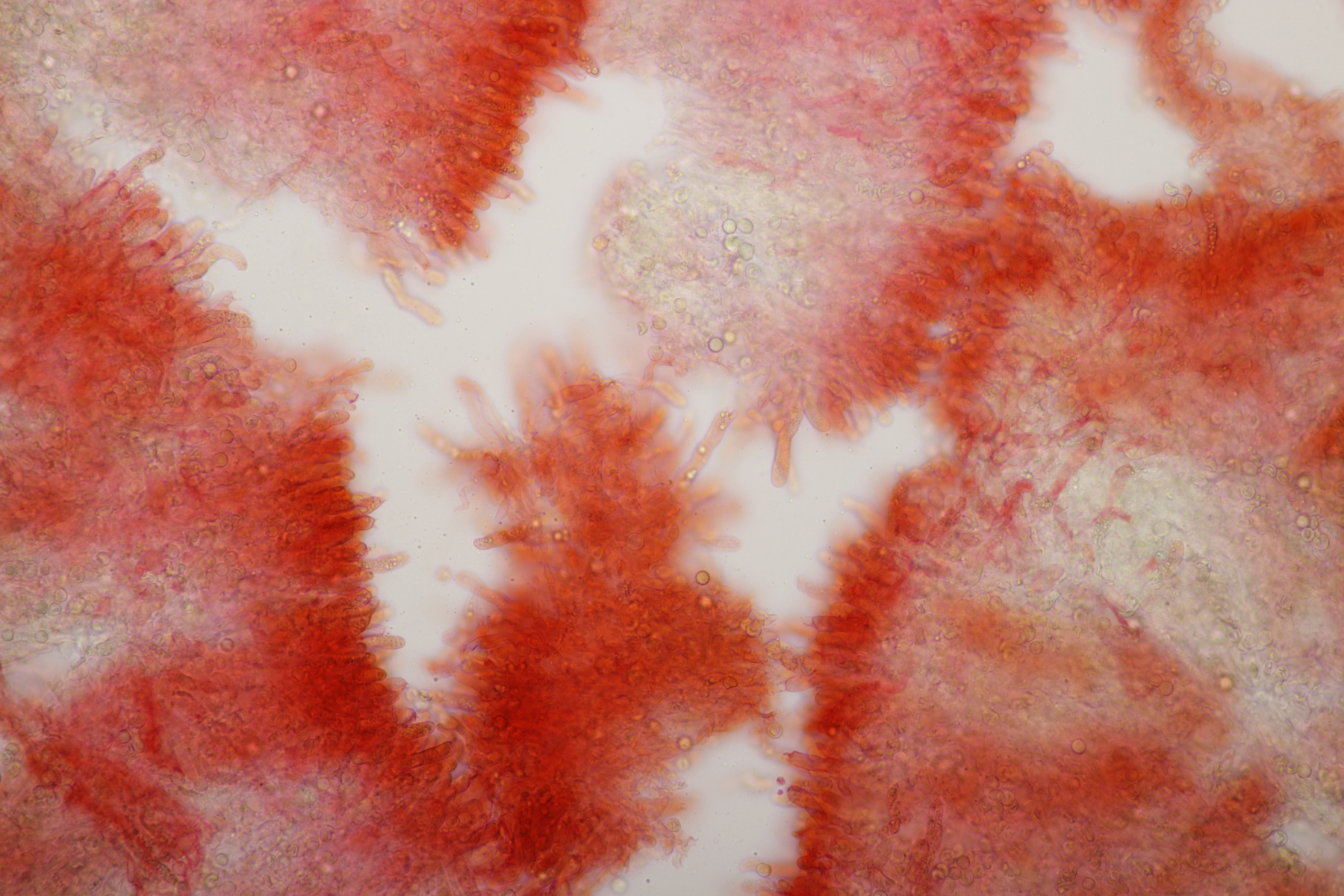7. Vuilleminia auf Salix. Sporen (22.1+-1.7) µm x (6.1+-0.4) µm, Q=3.7+-0.3. Ich meine auch Zystiden zu sehen, die ich am ehesten als zylindrisch beschreiben würde. Mit der Sporengröße käme ich dann bei V. coryli aus, die wohl auch an Salix geht.