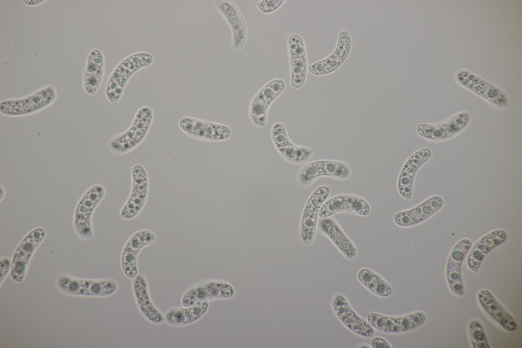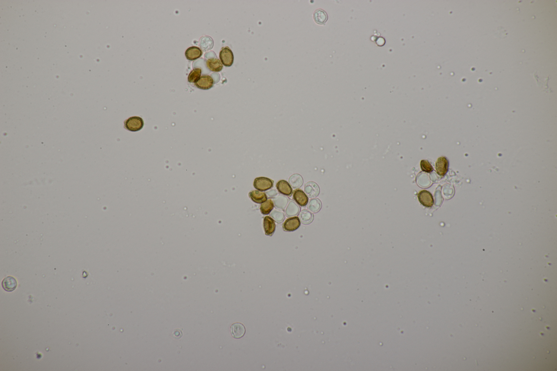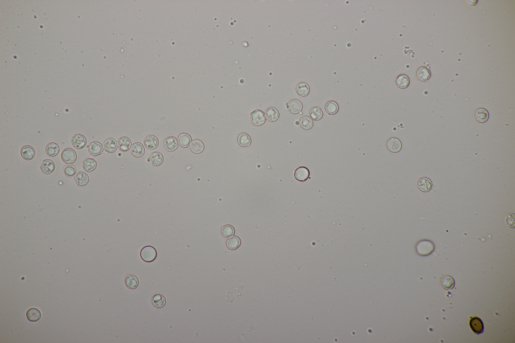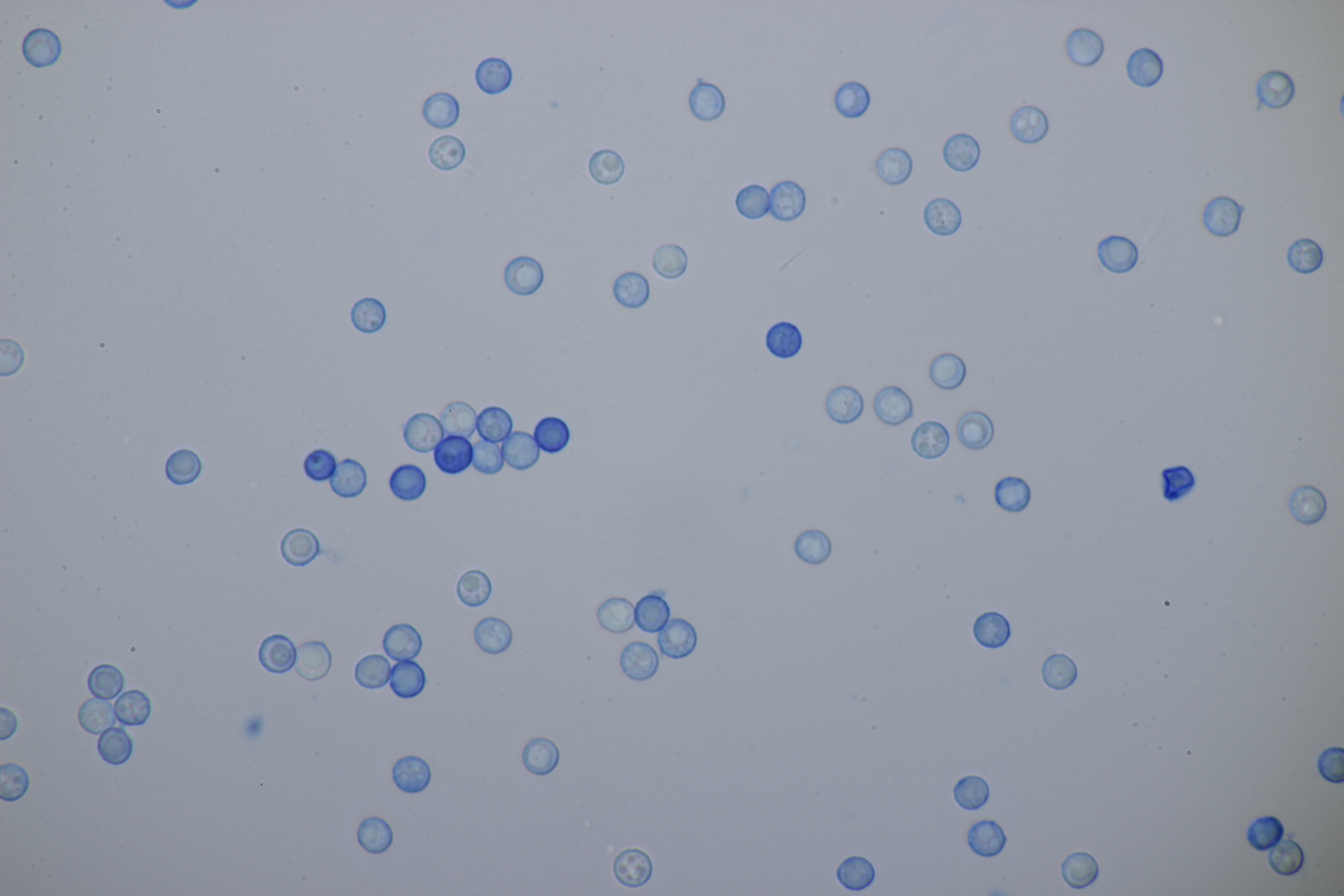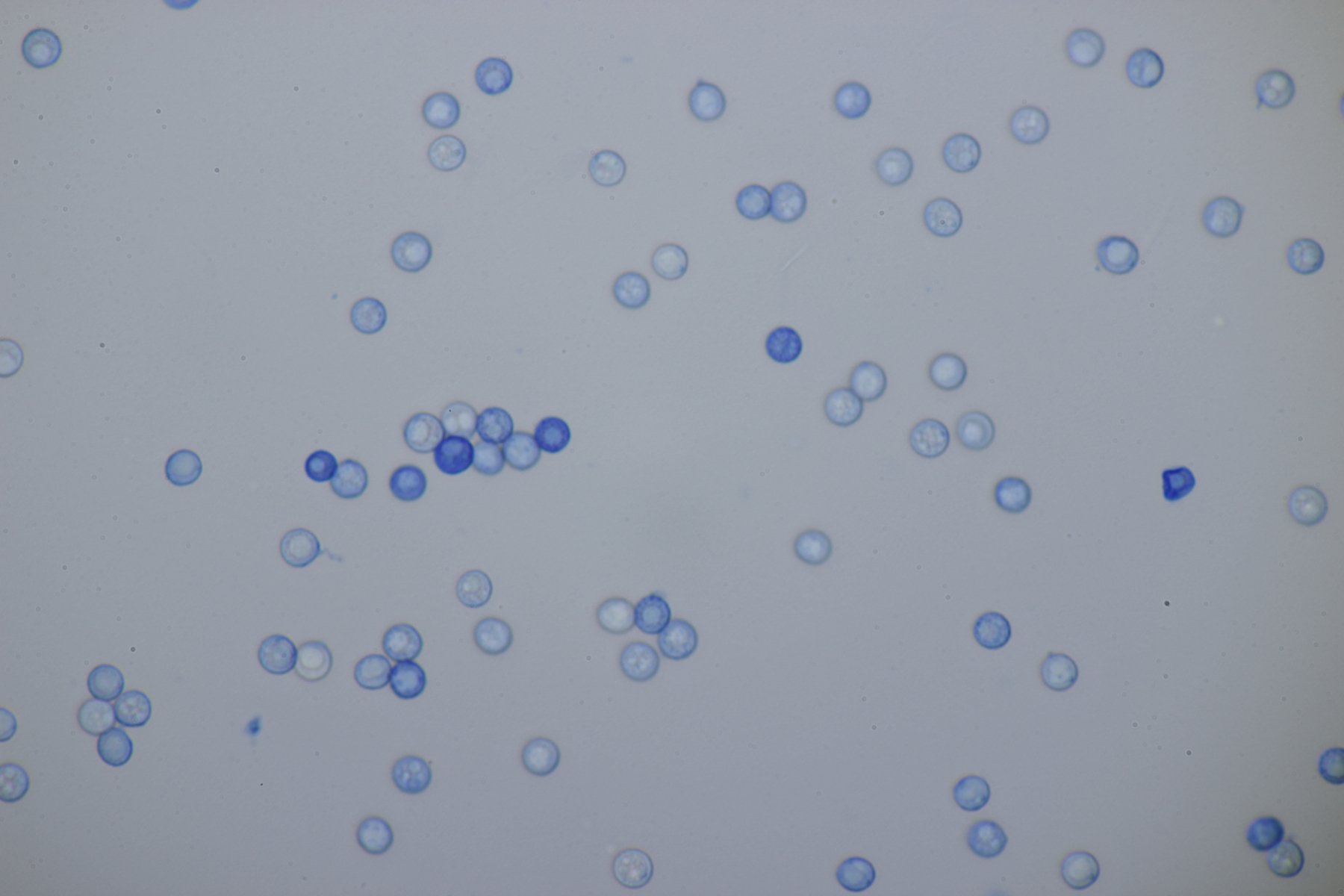1. Hier würde ich zu Granulobasidium vellereum tendieren. Sporen (6.1+-0.3) µm, dickwandig, Basidien 4-sporig, Schnallen vorhanden.