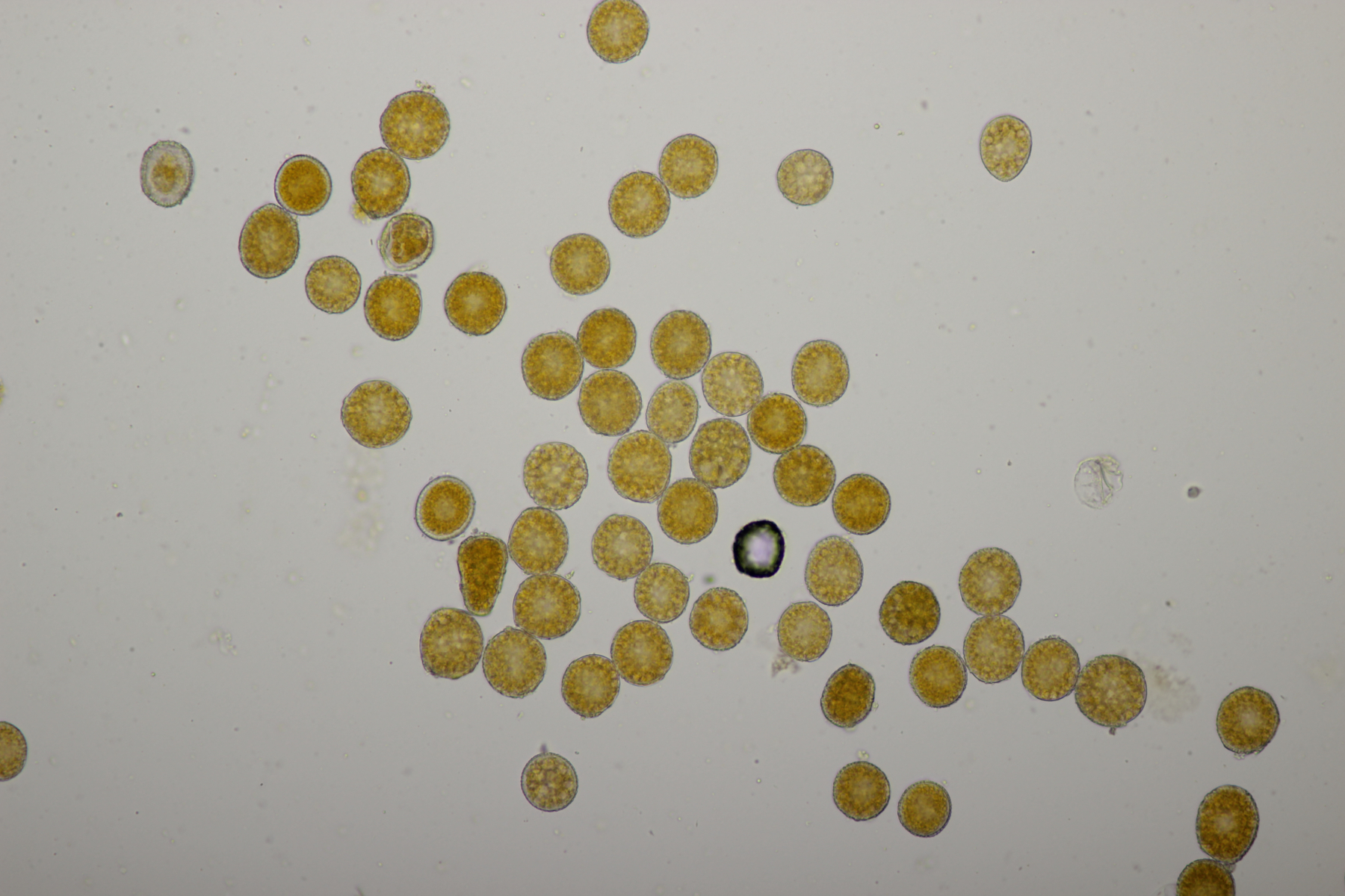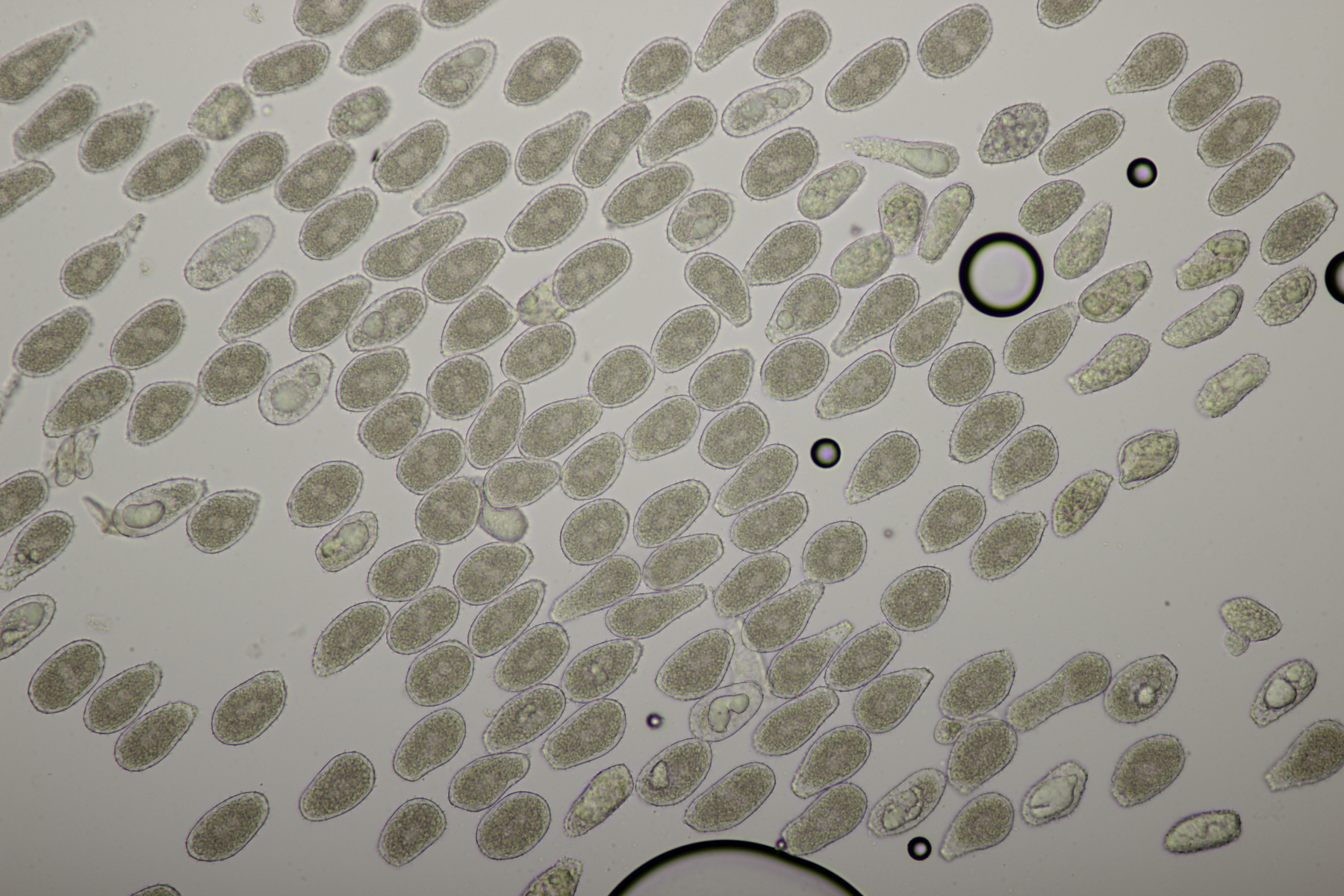 3. Im Wald dann ein gezielter Griff an den Farn und ein Wedel voller Rost: Milesina kriegeriana ex Dryopteris dilatata. Sporen zwischen 35 und 40 µm.