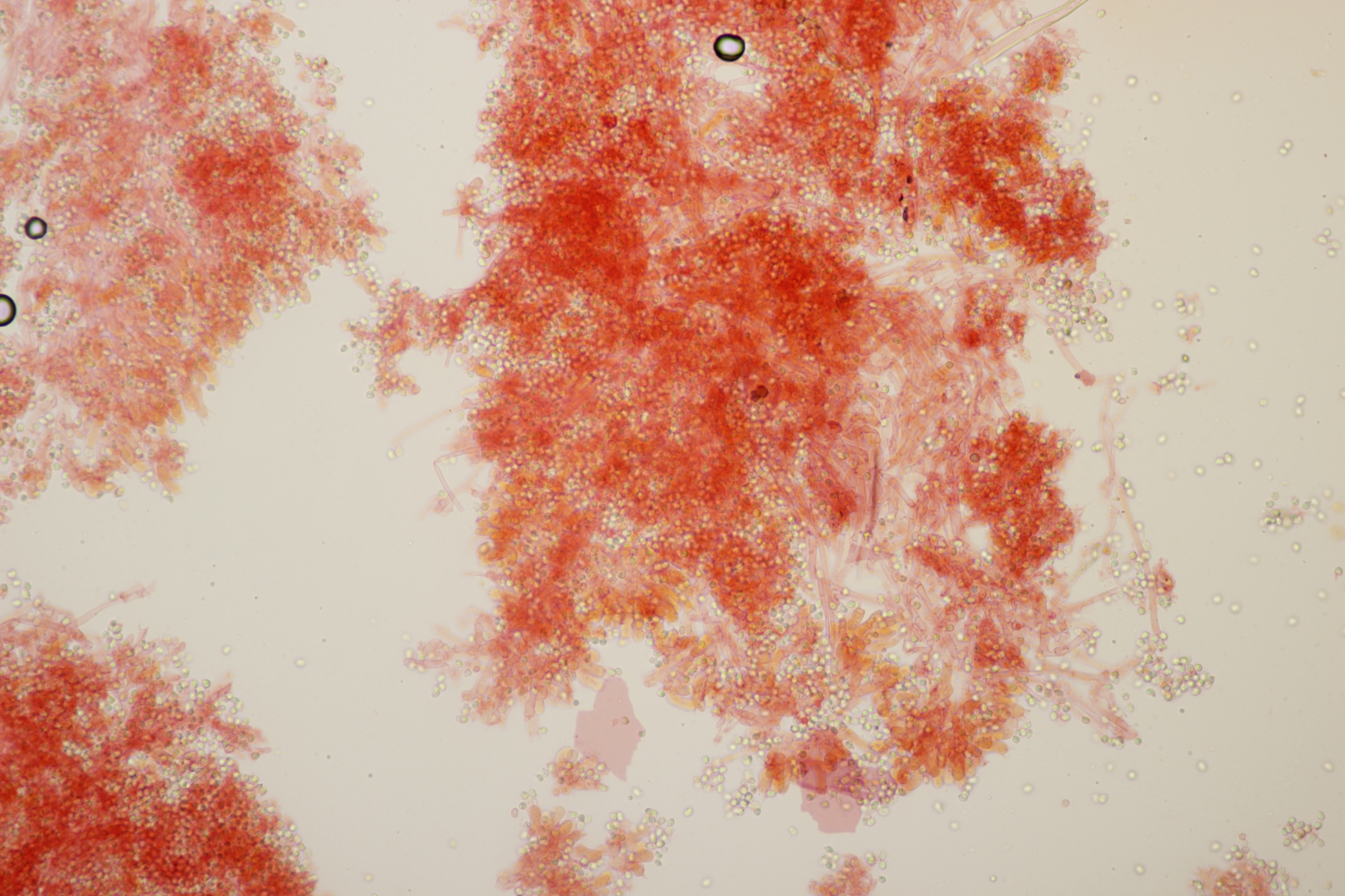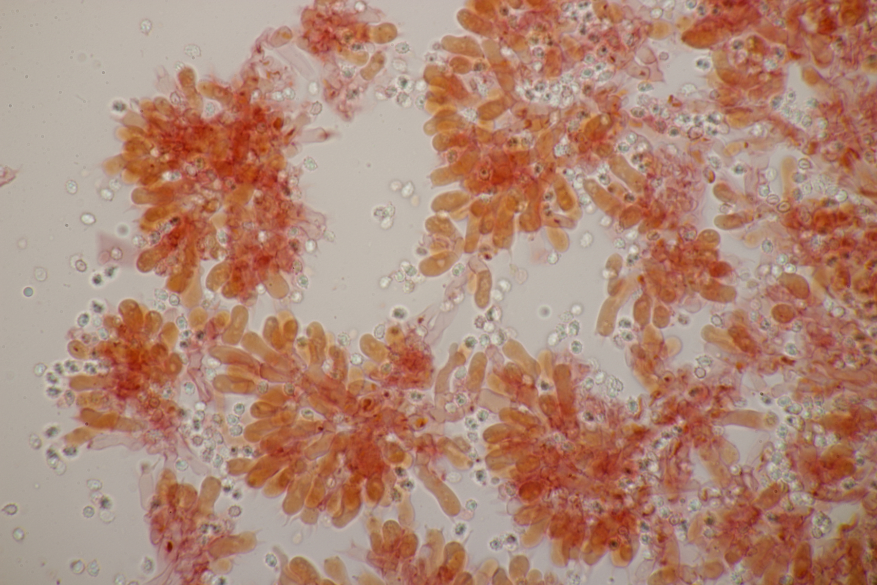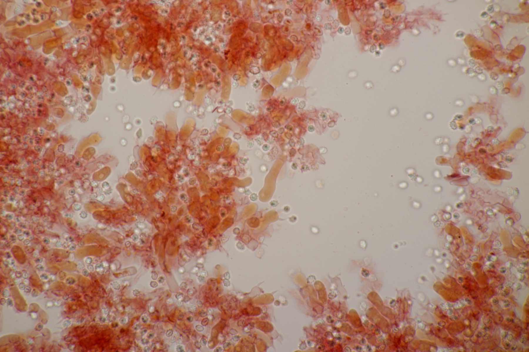 ich habe nach deinem Hinweise gestern Abend noch mal in die Trechispora reingeschaut. So richtig gut ließen sich die Hyphen in den Zähnchen leider nicht erkennen, und gescheite Fotos zu machen, auf denen man auch nur ansatzweise erkennnt, ist mir leider nicht gelungen. Dennoch bin ich der Meinung, daß die Hyphen schon eher normal aus isodiametrisch sind, womit der Fund dann wohl Trechispora nivea ist.