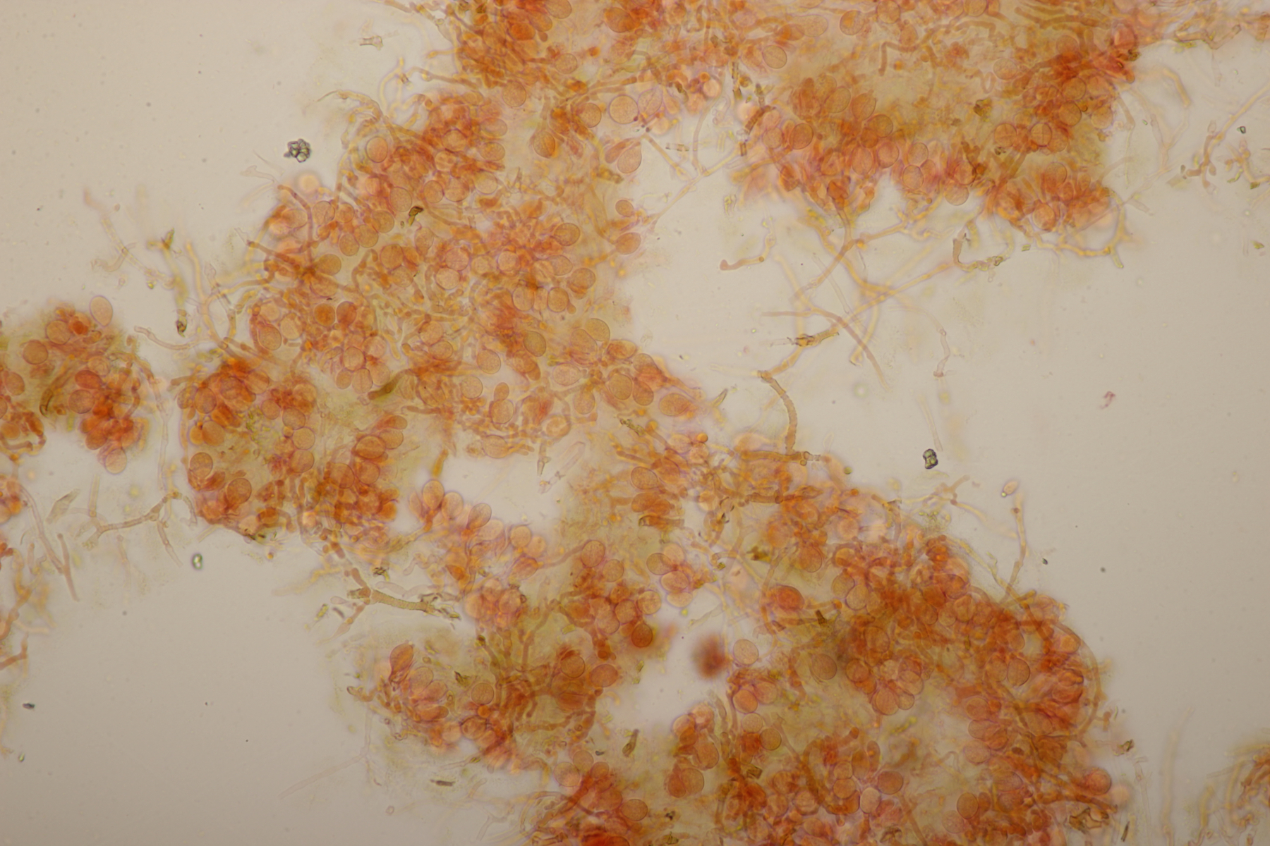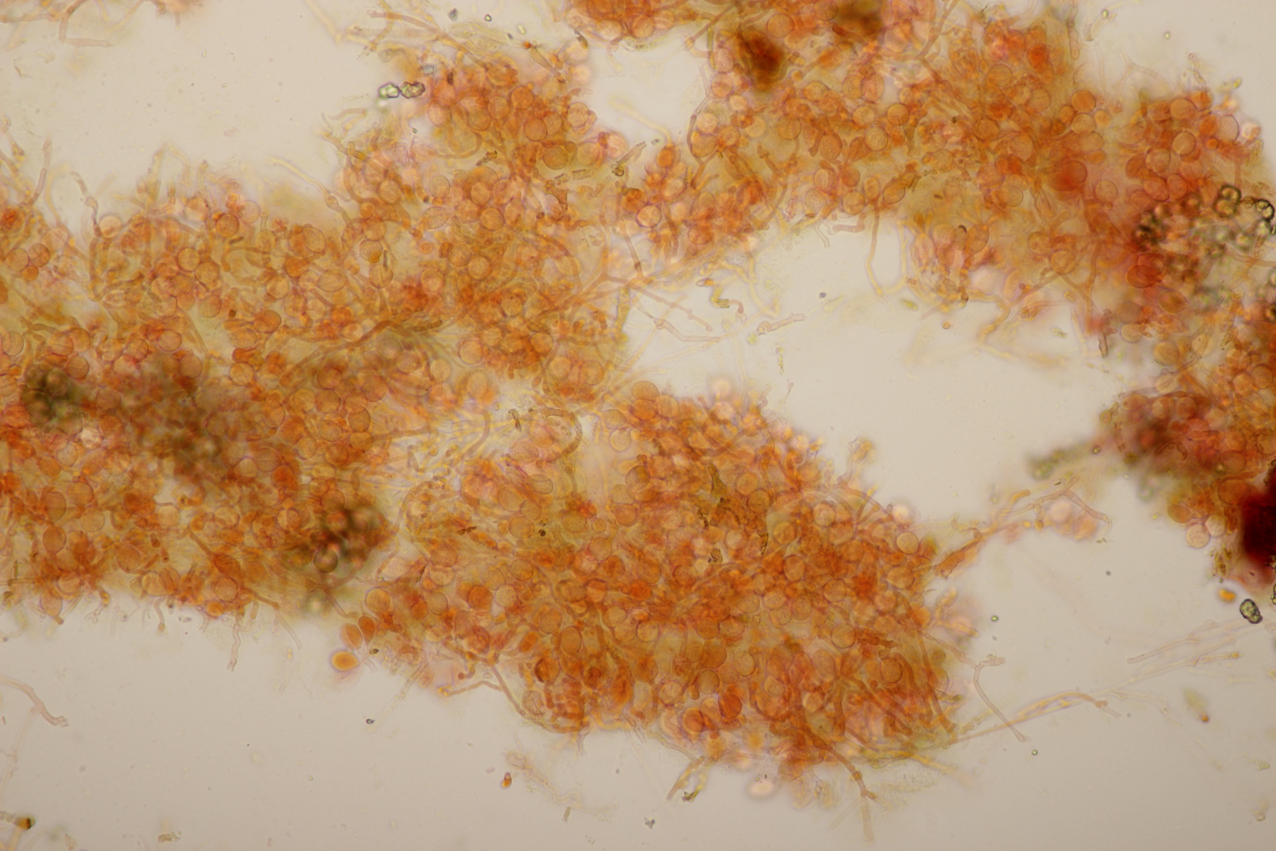 3. Im Wald dann ein gezielter Griff an den Farn und ein Wedel voller Rost: Milesina kriegeriana ex Dryopteris dilatata. Sporen zwischen 35 und 40 µm.