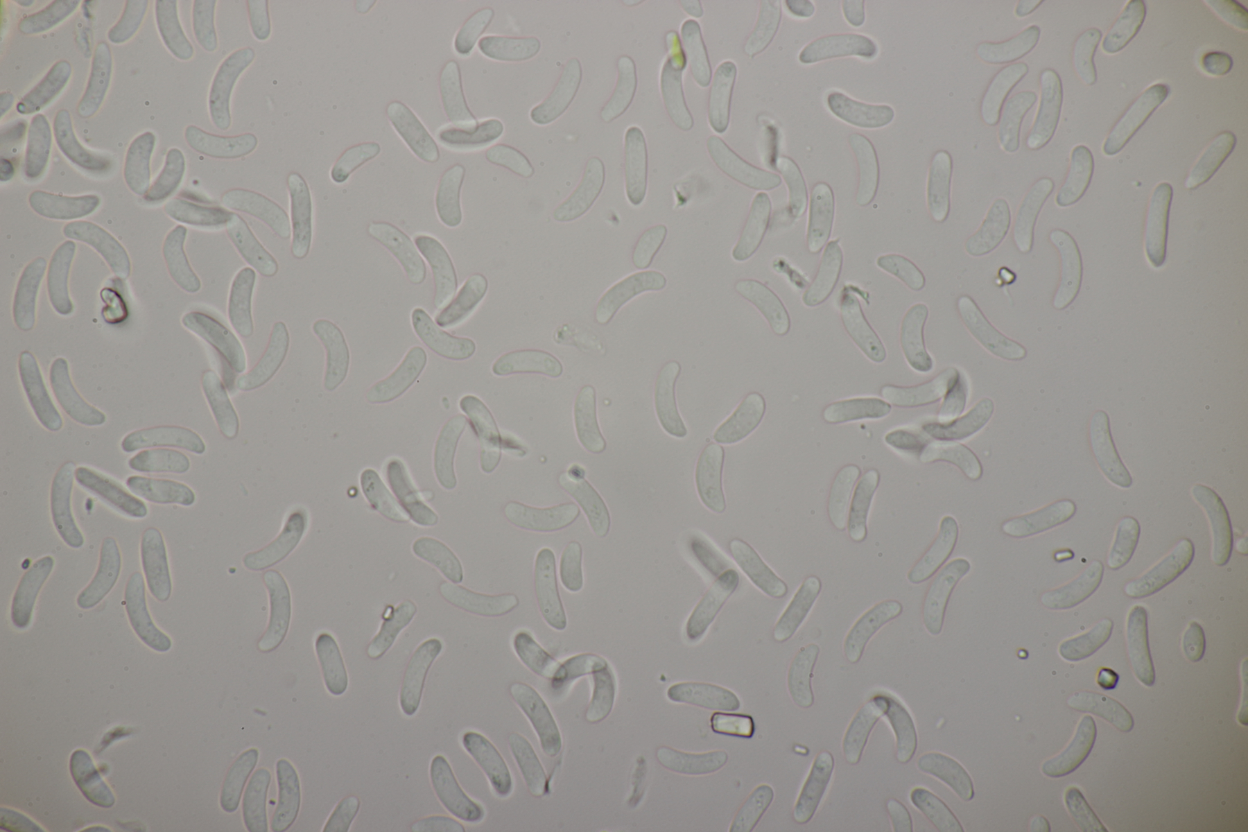 4. Eine Exidia an Laubholz. Ob es Weide war oder nicht, konnten wir leider nicht klären, aber kommt hier etwas anderes als E. recisa in Frage? Sporengröße (13.6+-0.7) µm x (3.6+-0.2) µm, Q=3.9+-0.4.