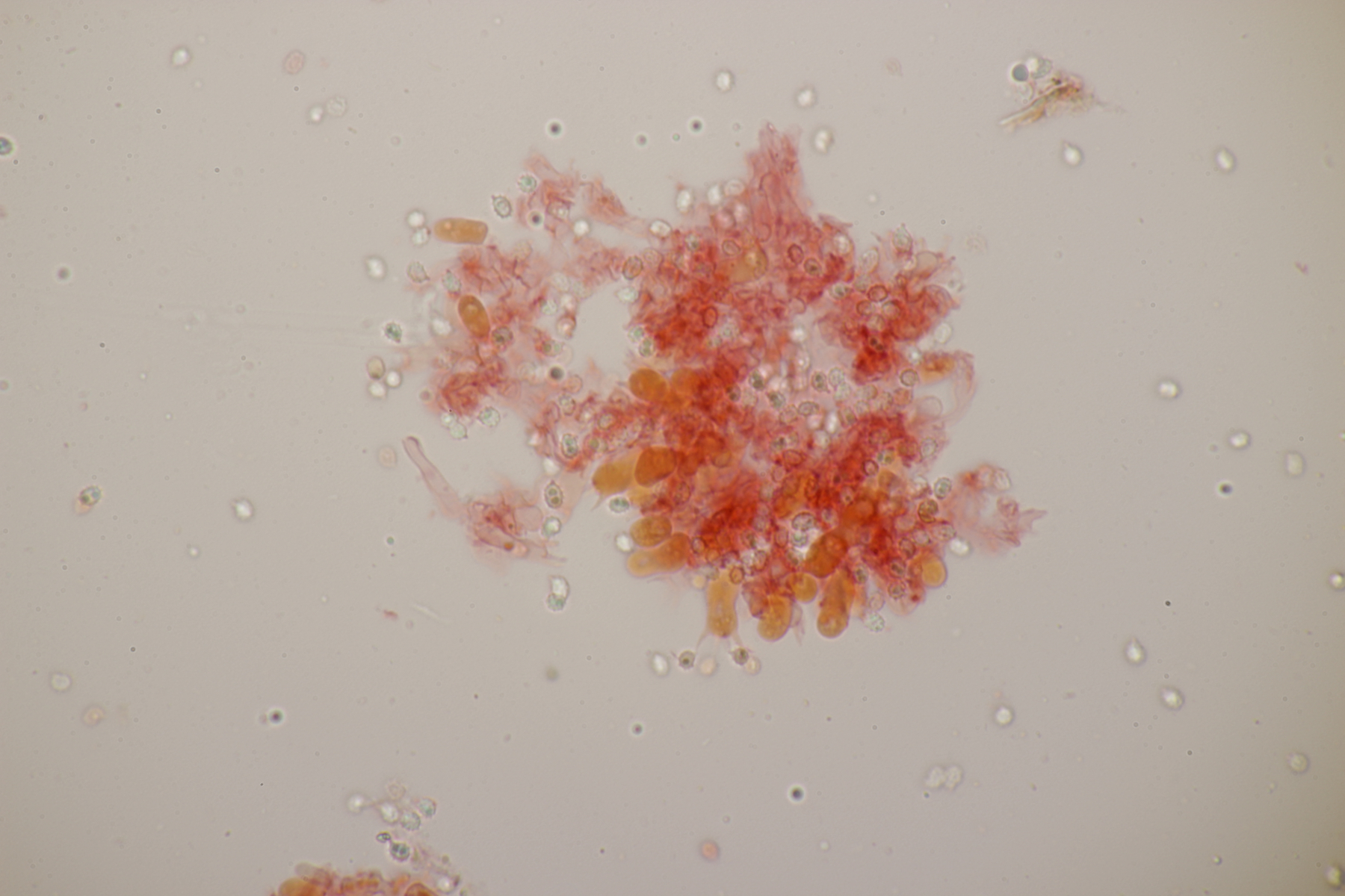 ich habe nach deinem Hinweise gestern Abend noch mal in die Trechispora reingeschaut. So richtig gut ließen sich die Hyphen in den Zähnchen leider nicht erkennen, und gescheite Fotos zu machen, auf denen man auch nur ansatzweise erkennnt, ist mir leider nicht gelungen. Dennoch bin ich der Meinung, daß die Hyphen schon eher normal aus isodiametrisch sind, womit der Fund dann wohl Trechispora nivea ist.