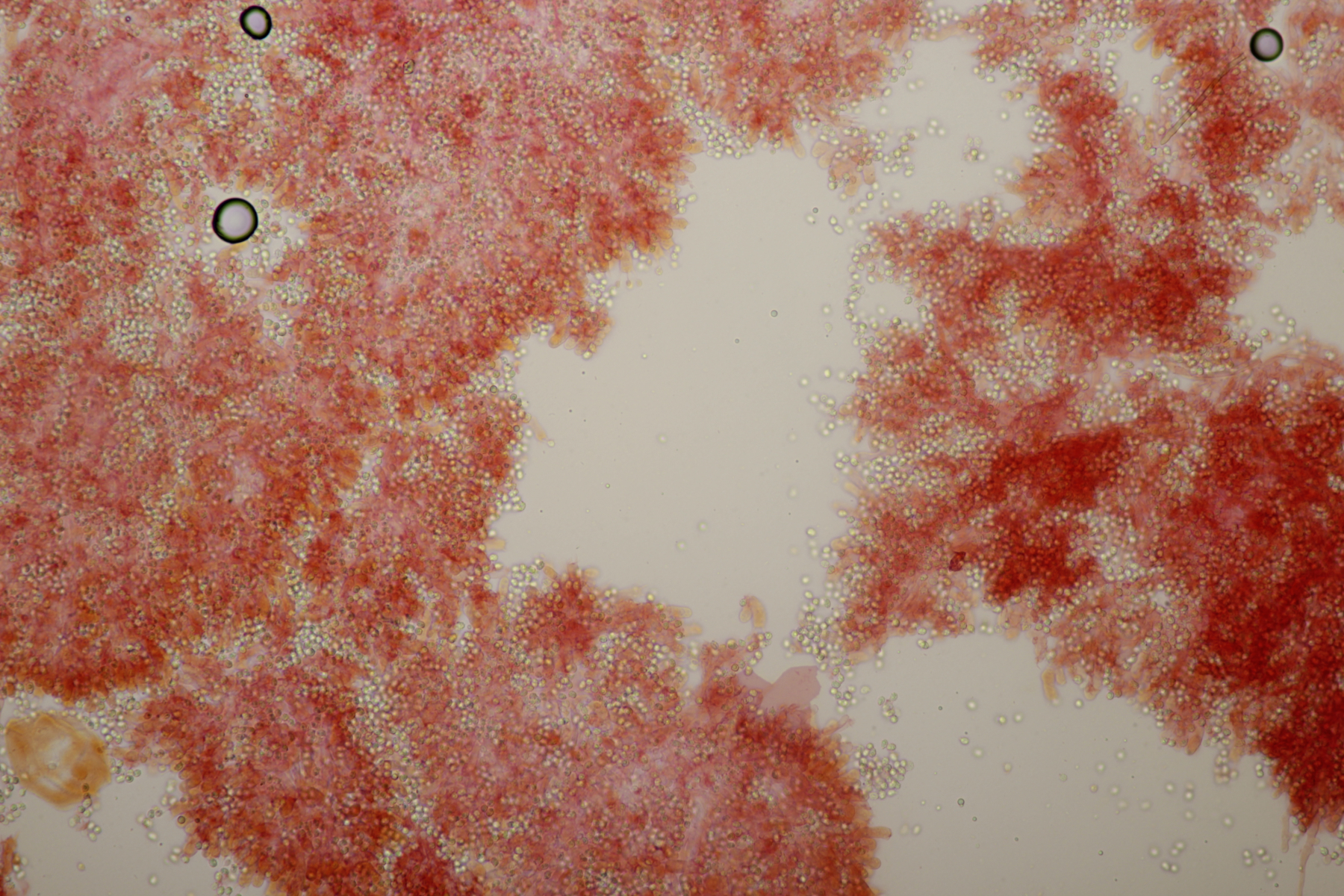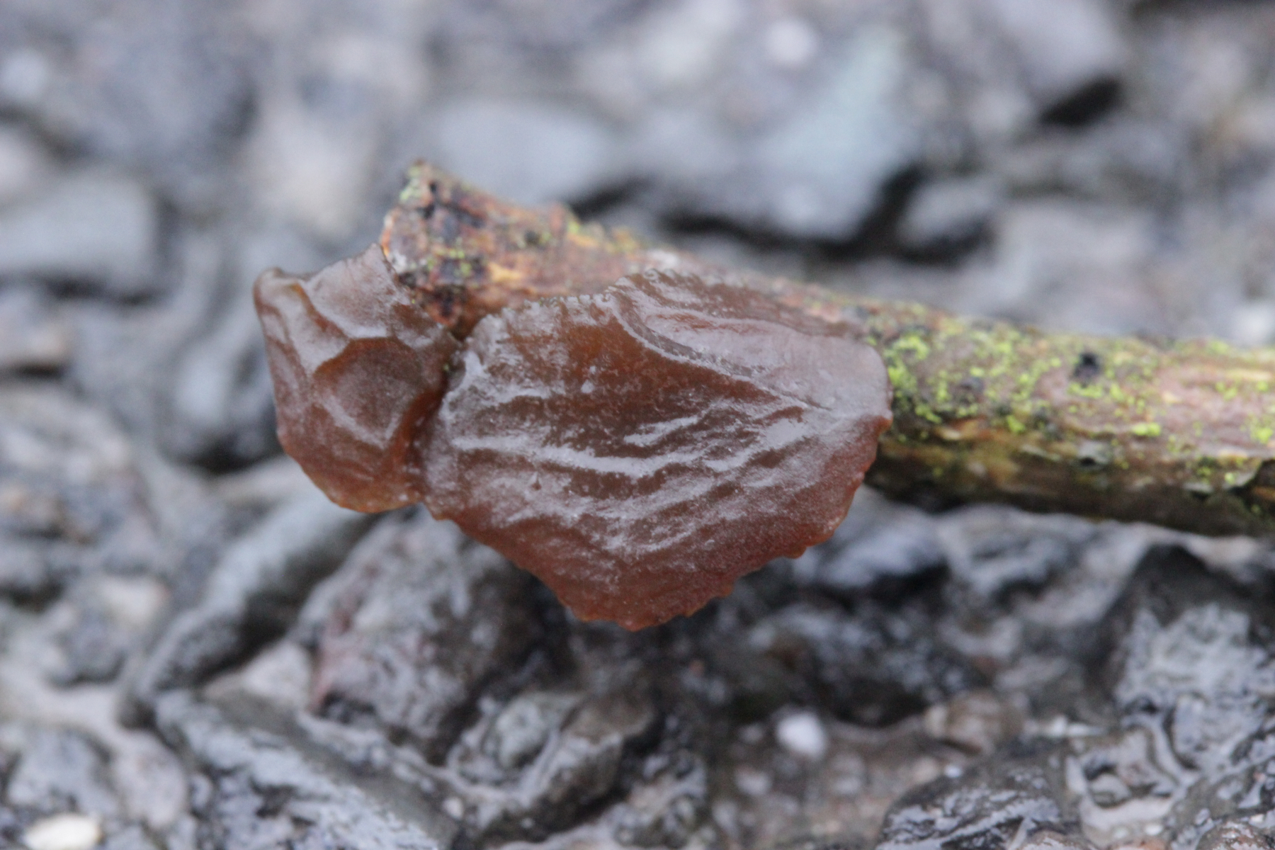 4. Eine Exidia an Laubholz. Ob es Weide war oder nicht, konnten wir leider nicht klären, aber kommt hier etwas anderes als E. recisa in Frage? Sporengröße (13.6+-0.7) µm x (3.6+-0.2) µm, Q=3.9+-0.4.