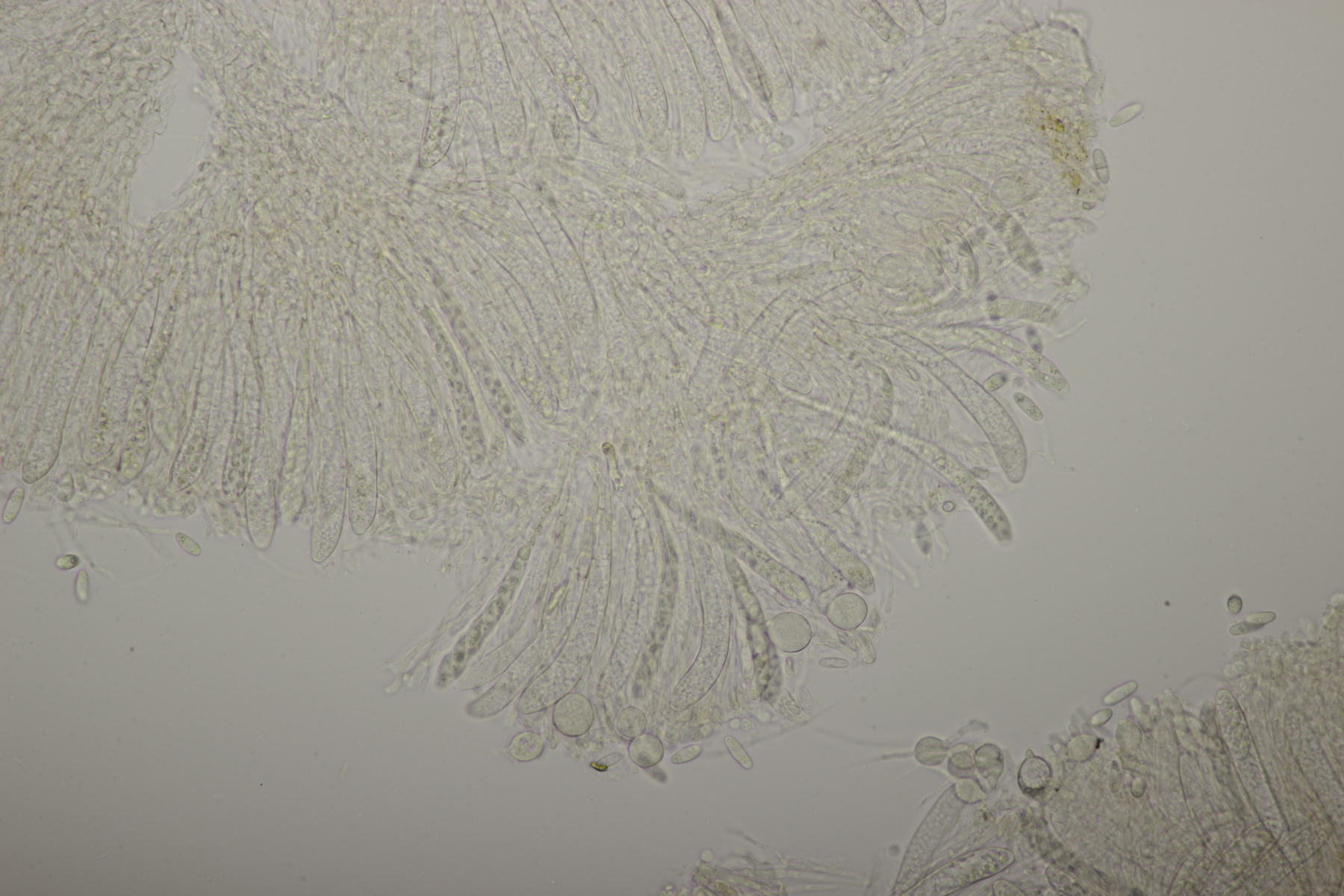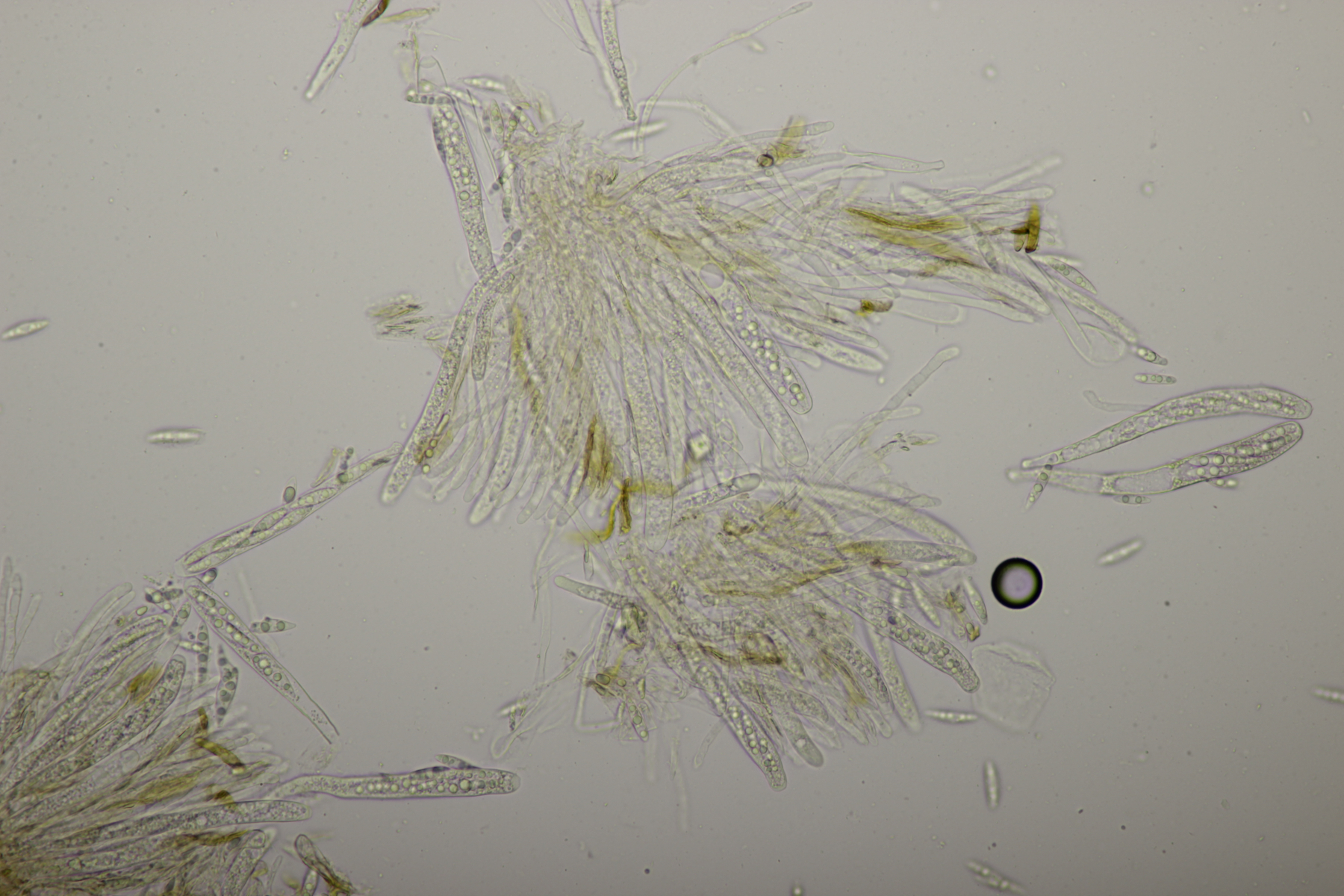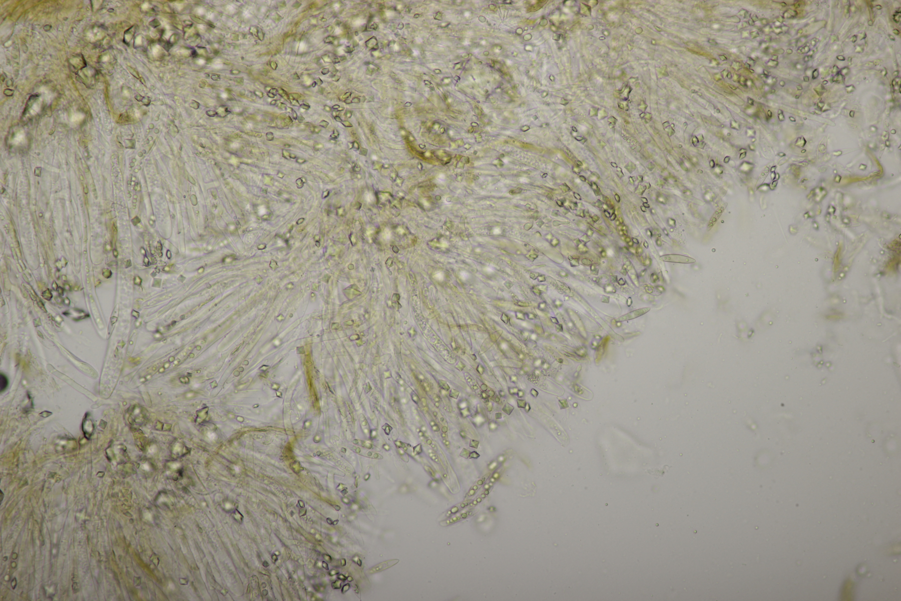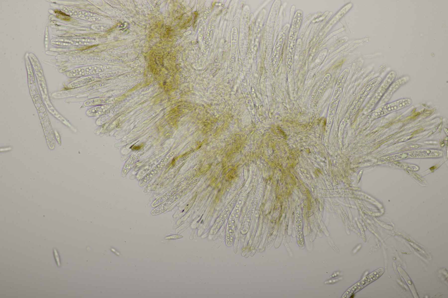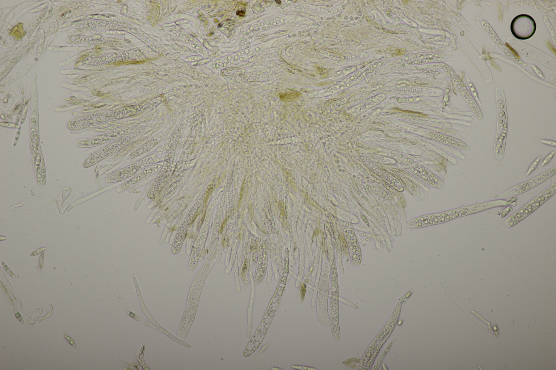 2. Hier hatte Jan-Arne nicht mal eine Idee, ob Asco- oder Basidiomycet. Ich hatte zwar auch etwas mitgenommen und reingelinst, aber es war weder erhellend, noch sah es hübsch aus.