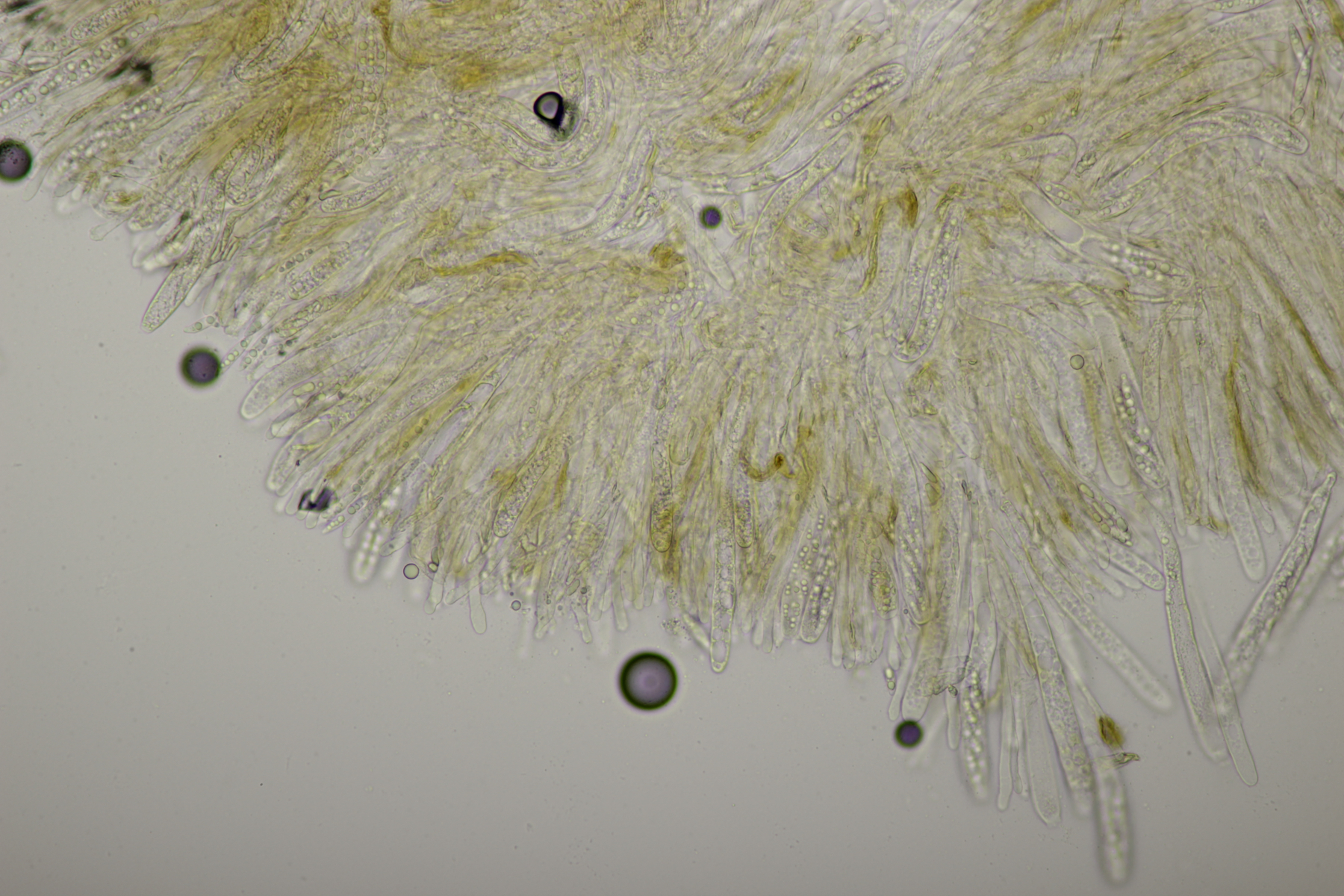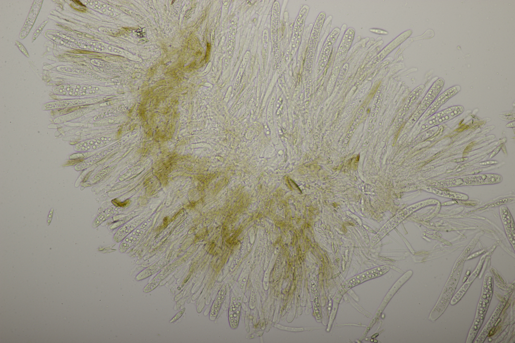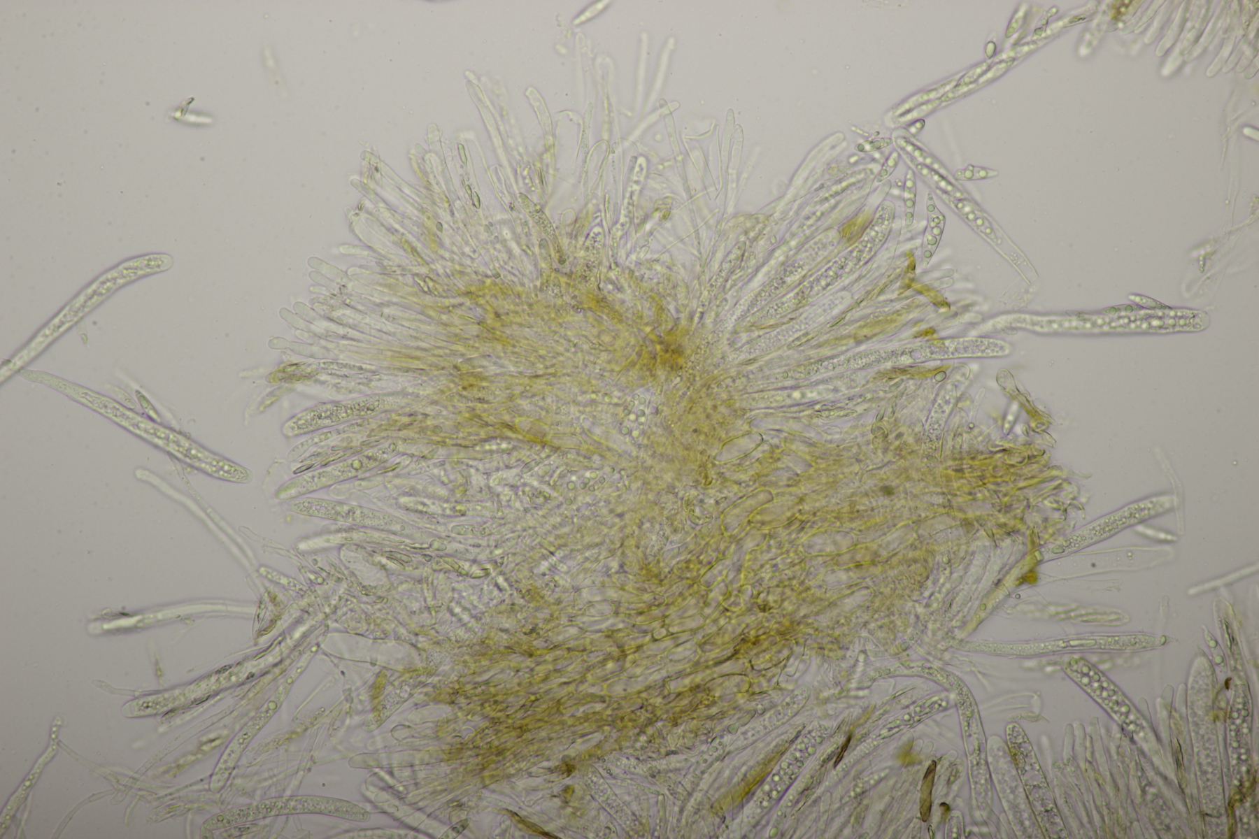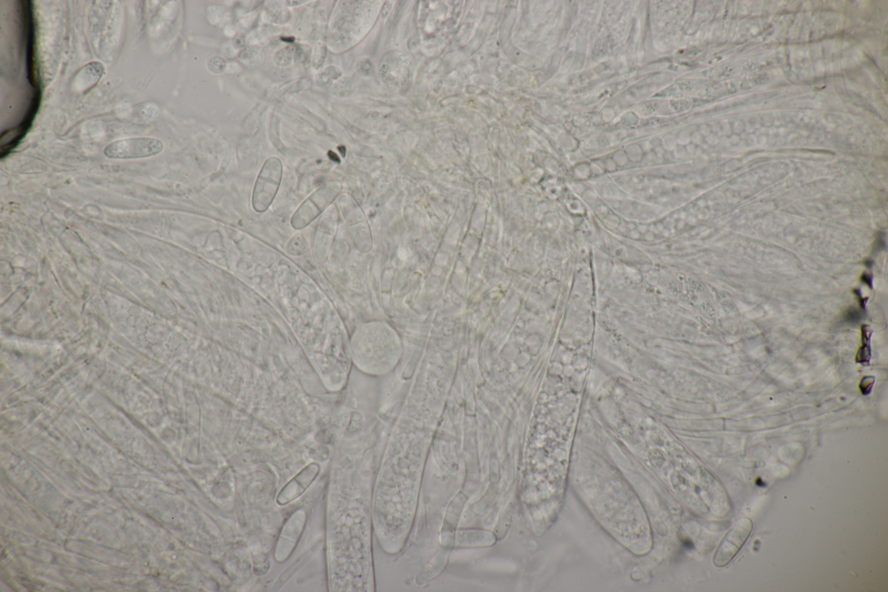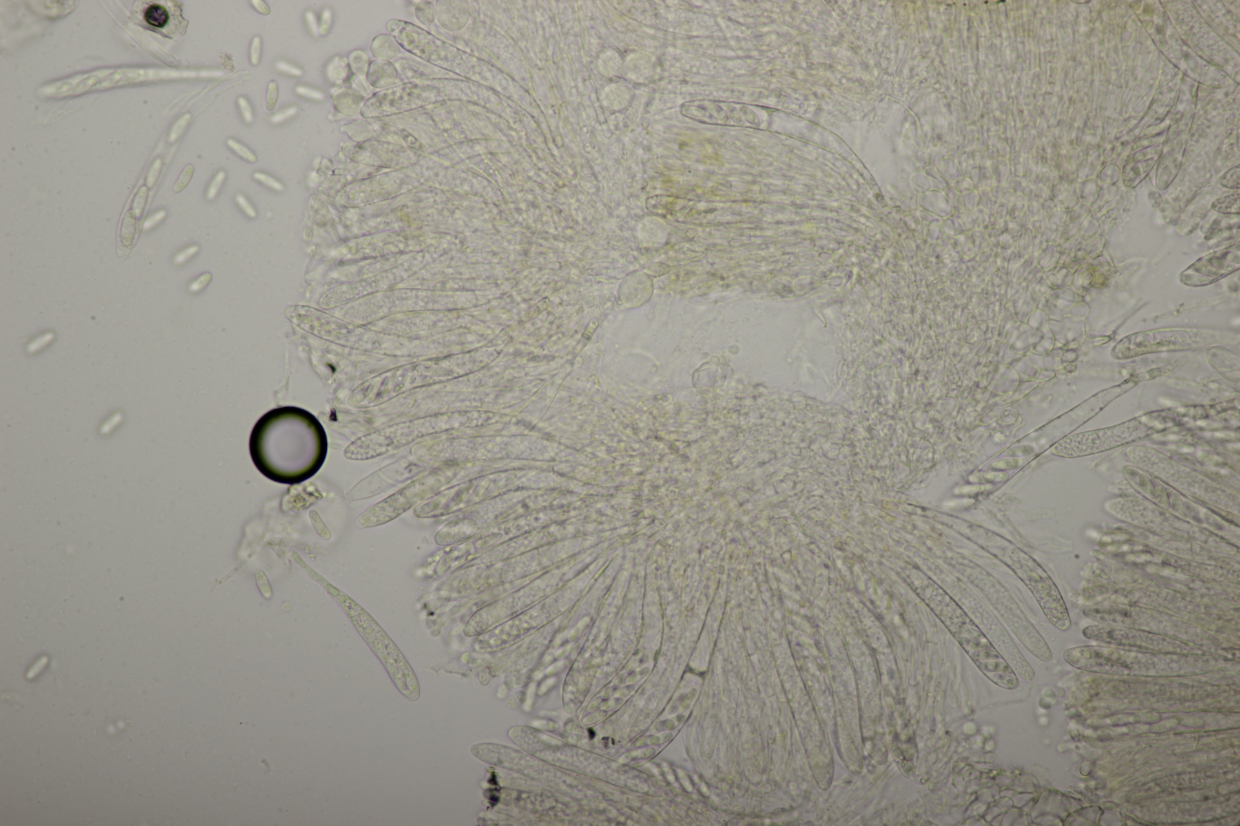 2. Hier hatte Jan-Arne nicht mal eine Idee, ob Asco- oder Basidiomycet. Ich hatte zwar auch etwas mitgenommen und reingelinst, aber es war weder erhellend, noch sah es hübsch aus.