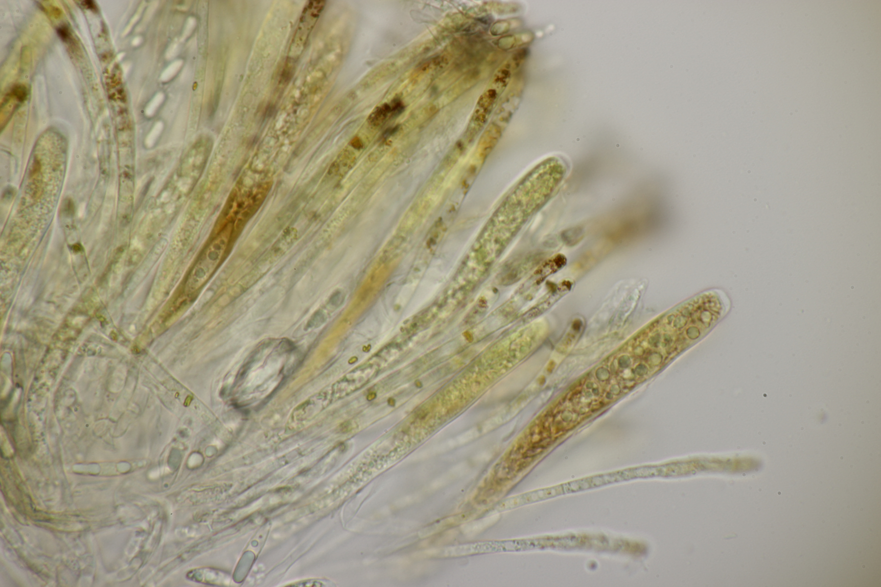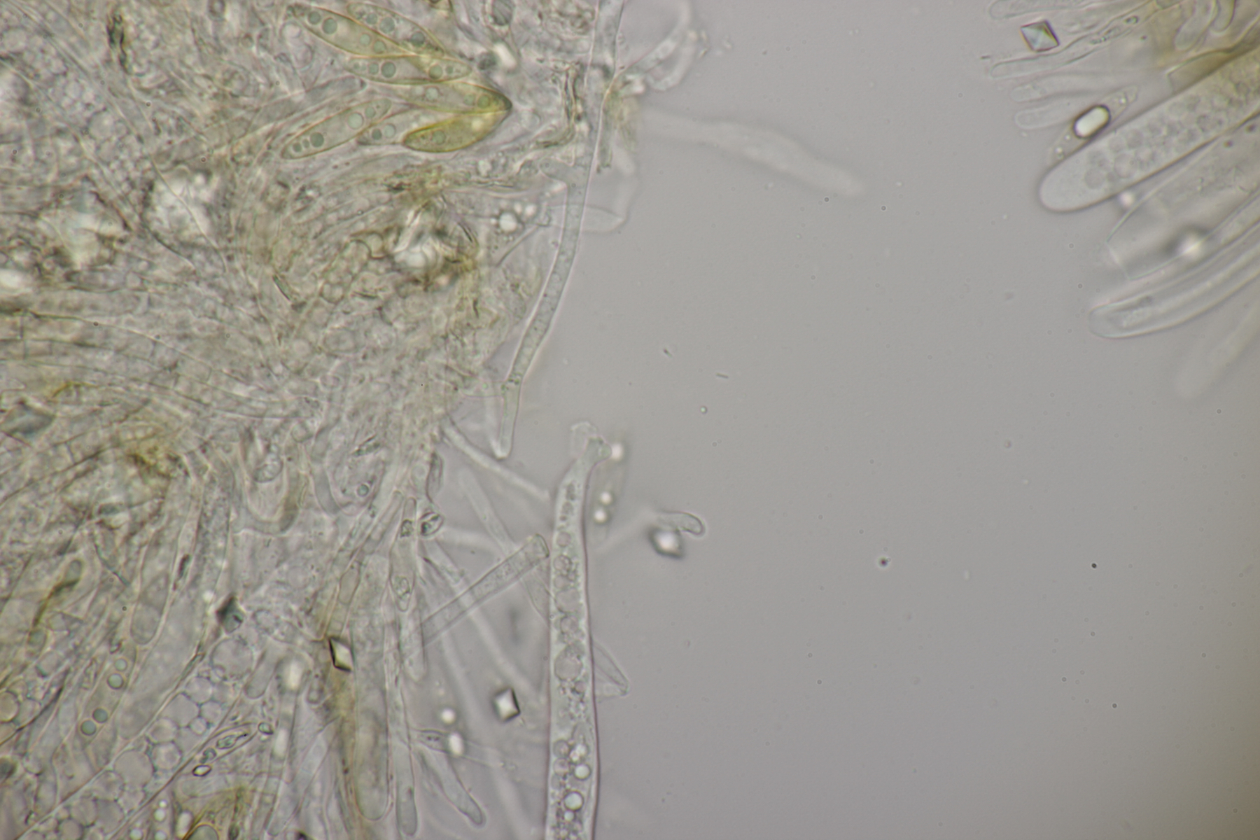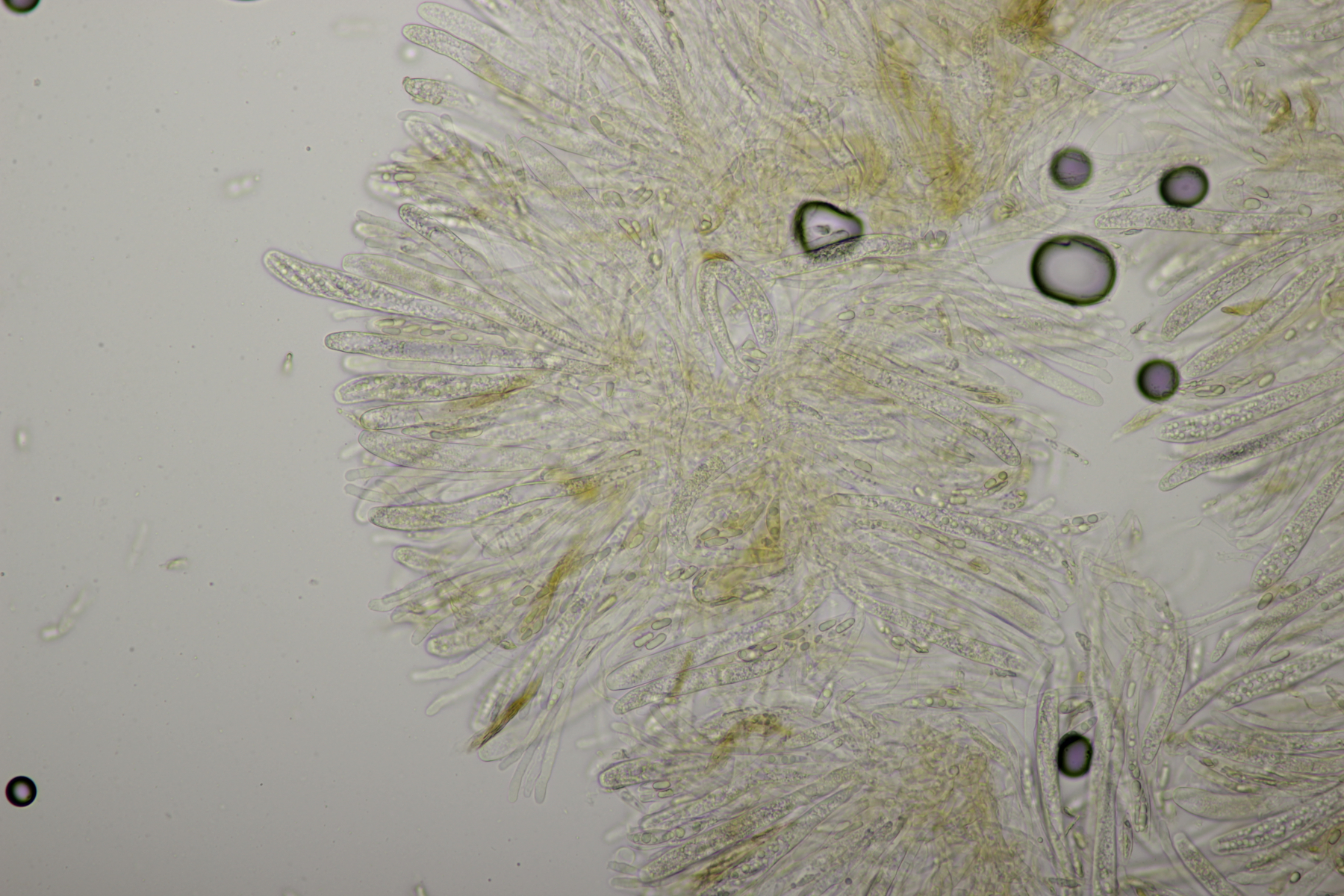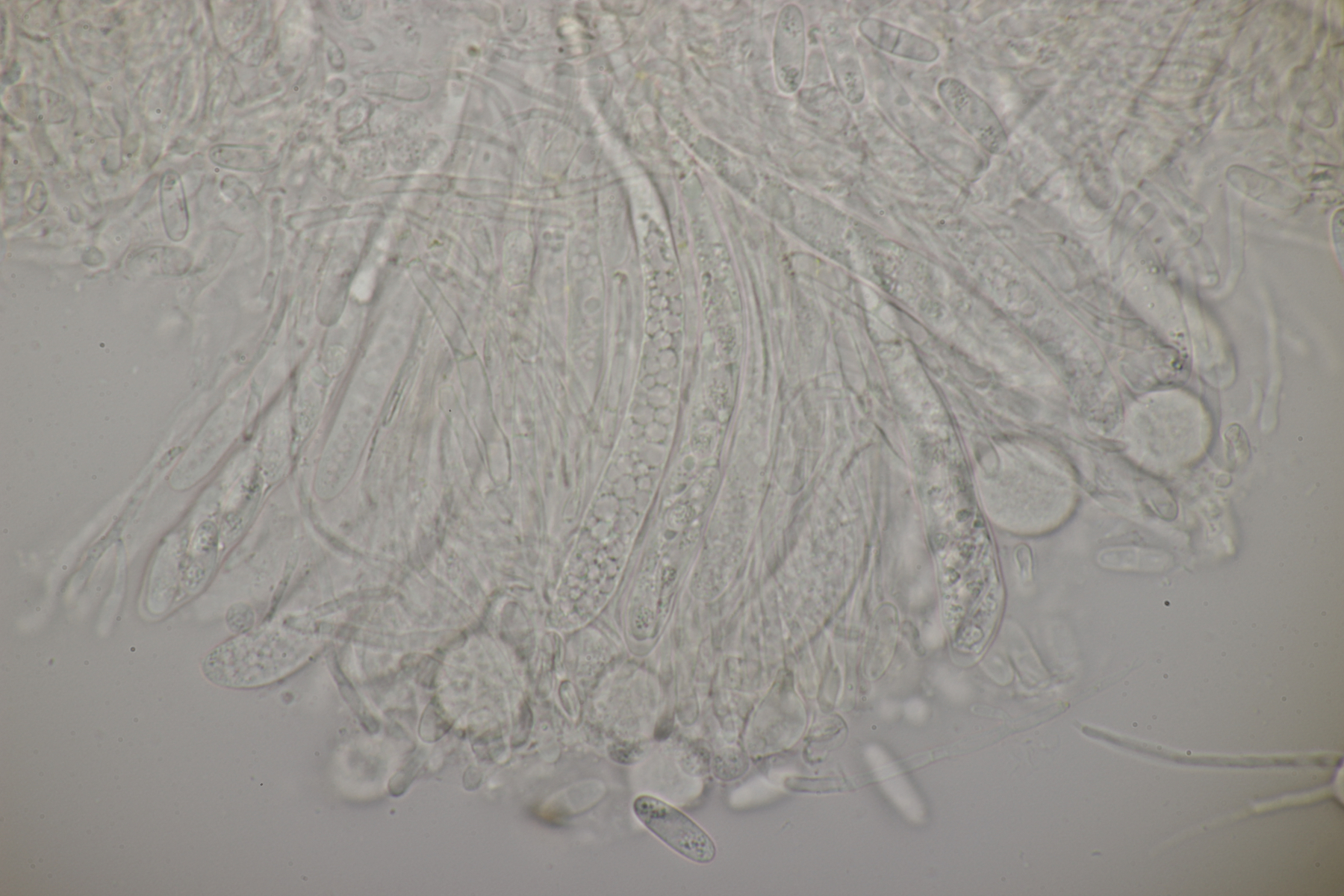 2. Hier hatte Jan-Arne nicht mal eine Idee, ob Asco- oder Basidiomycet. Ich hatte zwar auch etwas mitgenommen und reingelinst, aber es war weder erhellend, noch sah es hübsch aus.