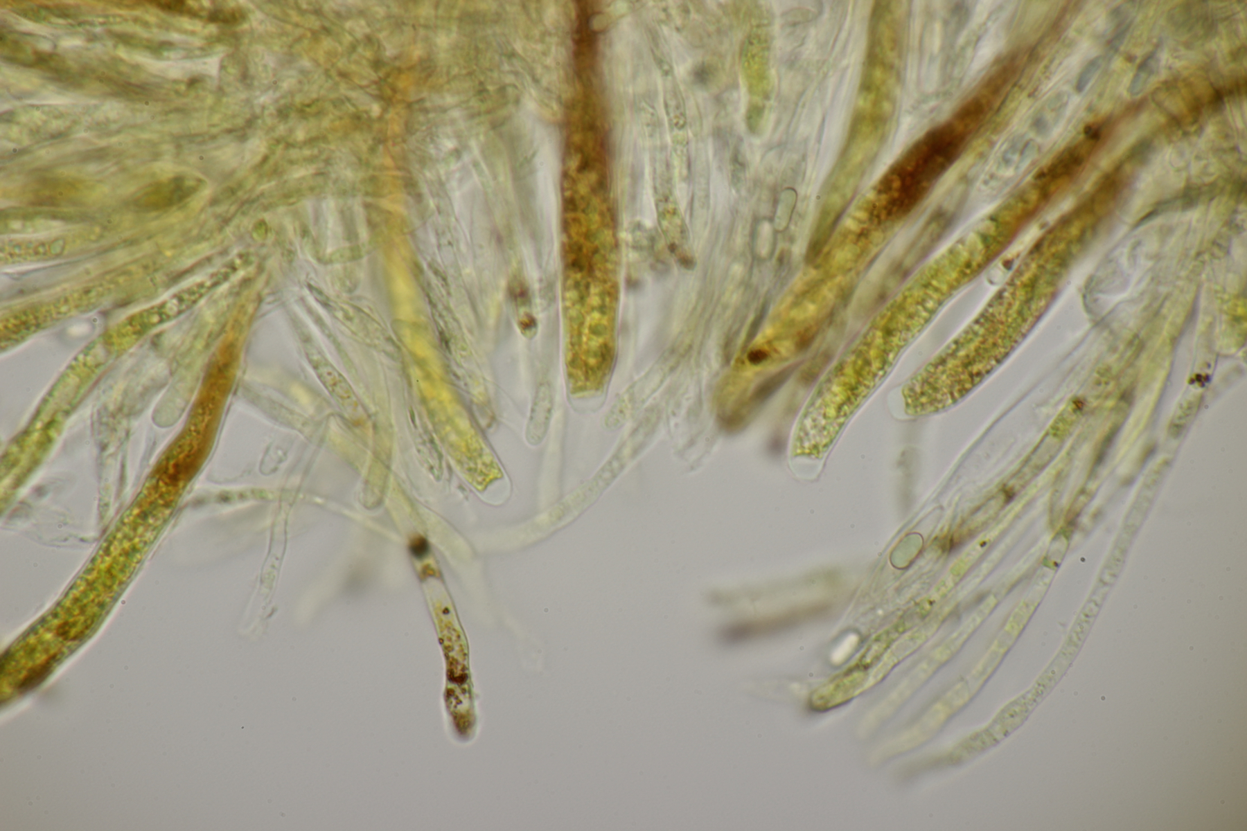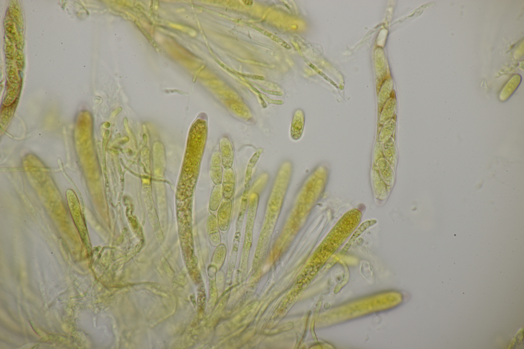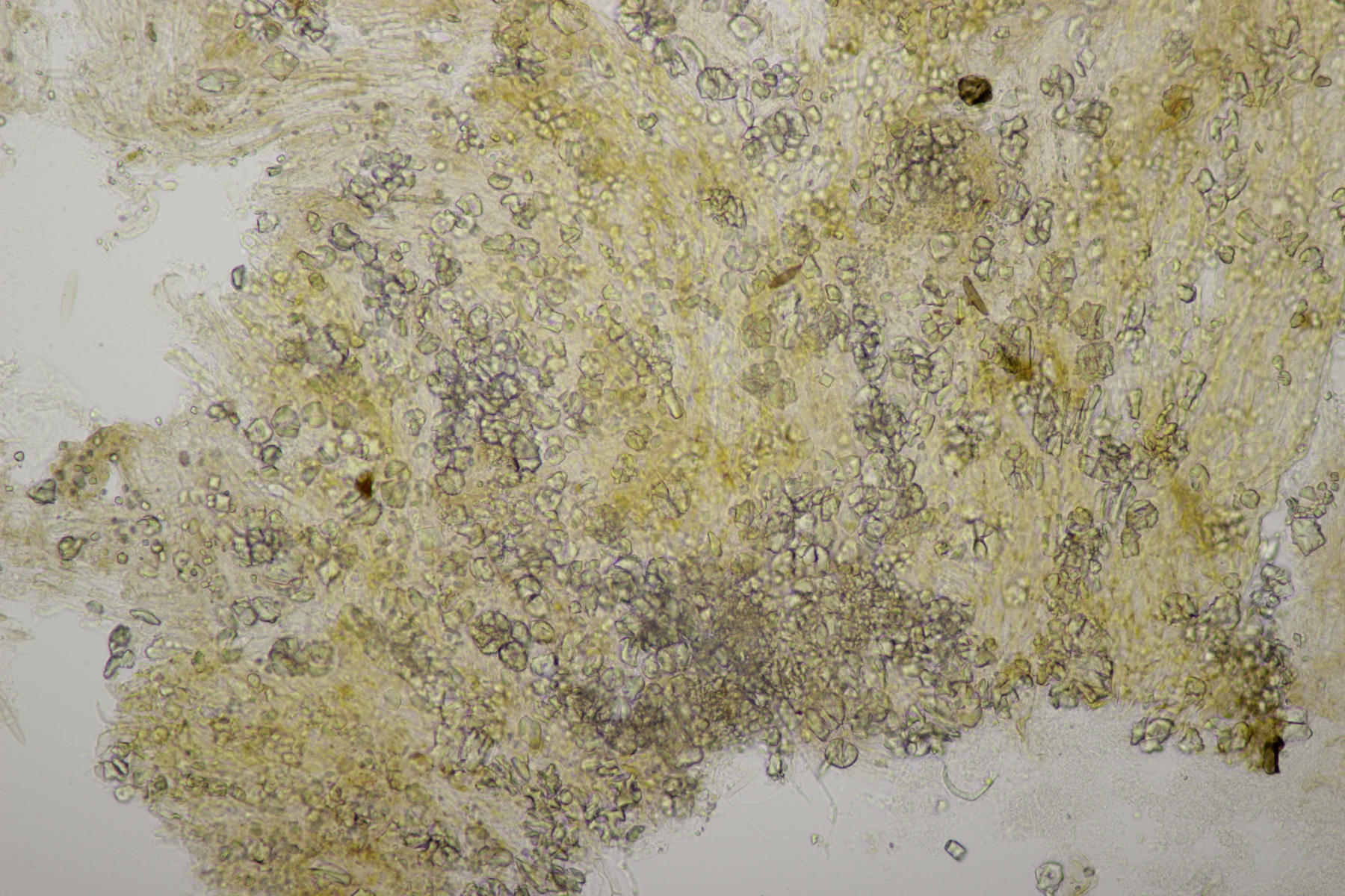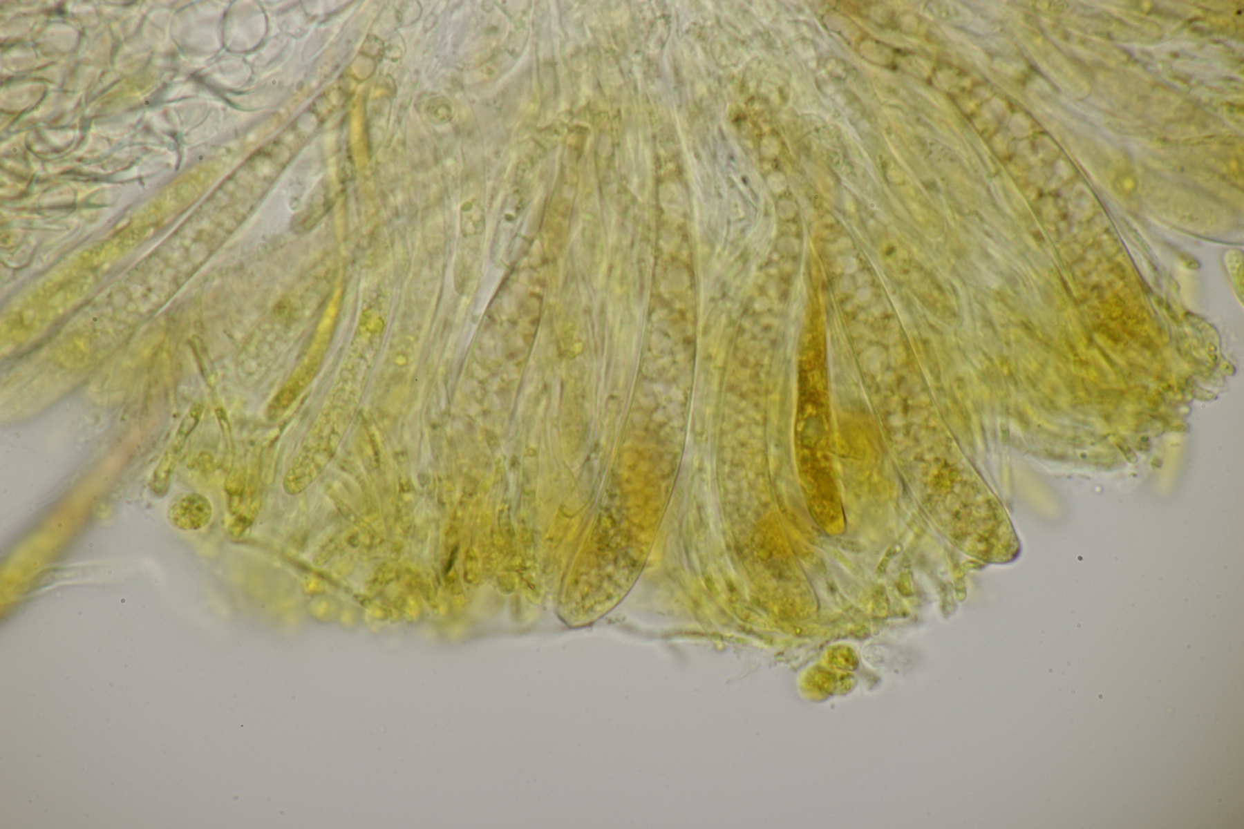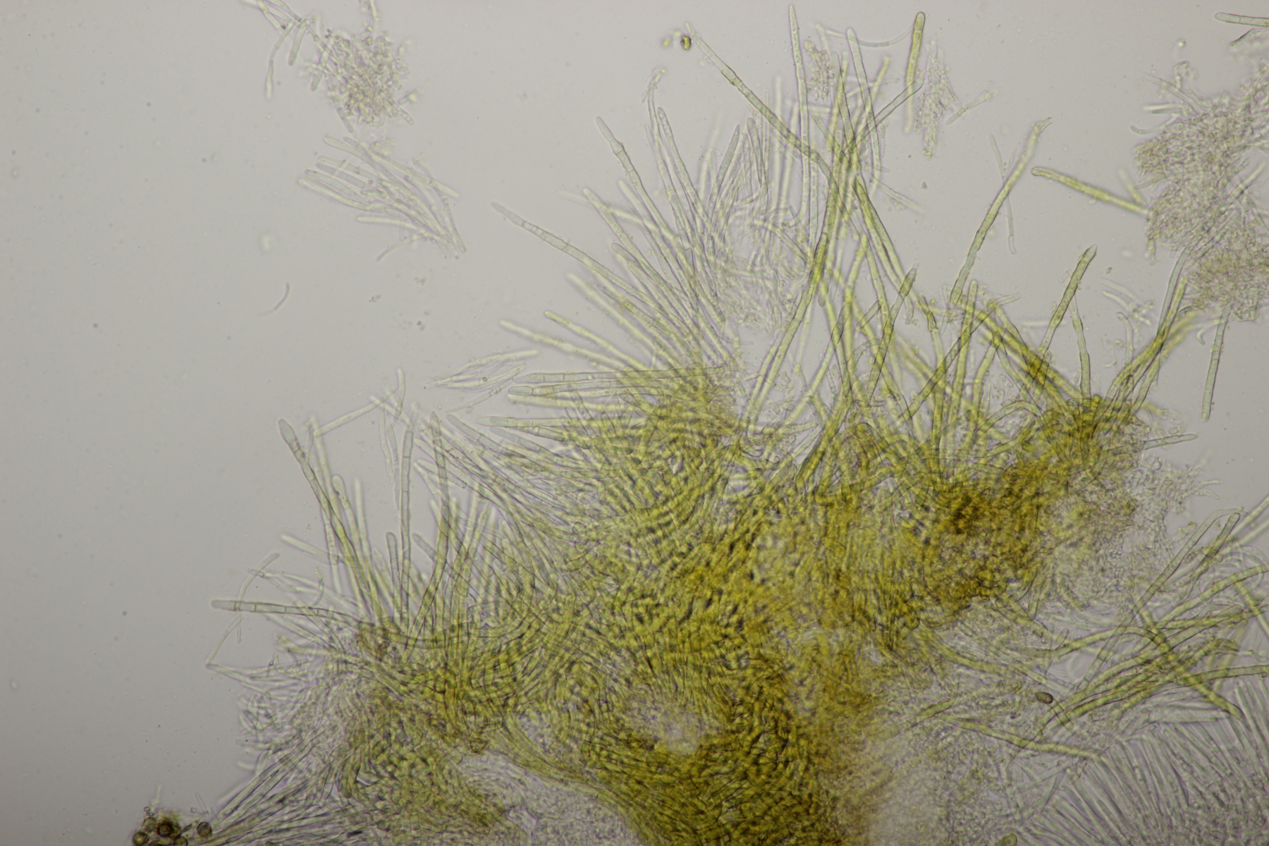 2. Hier hatte Jan-Arne nicht mal eine Idee, ob Asco- oder Basidiomycet. Ich hatte zwar auch etwas mitgenommen und reingelinst, aber es war weder erhellend, noch sah es hübsch aus.