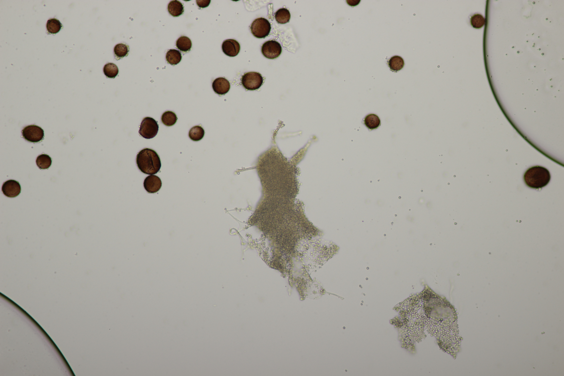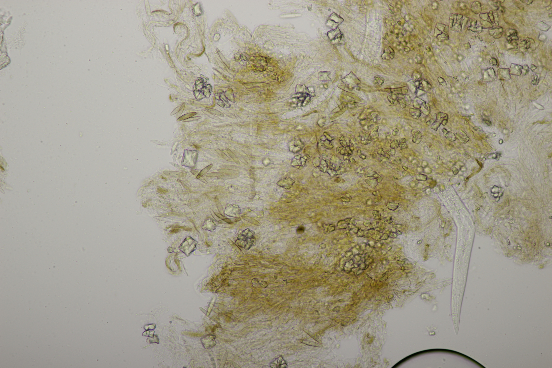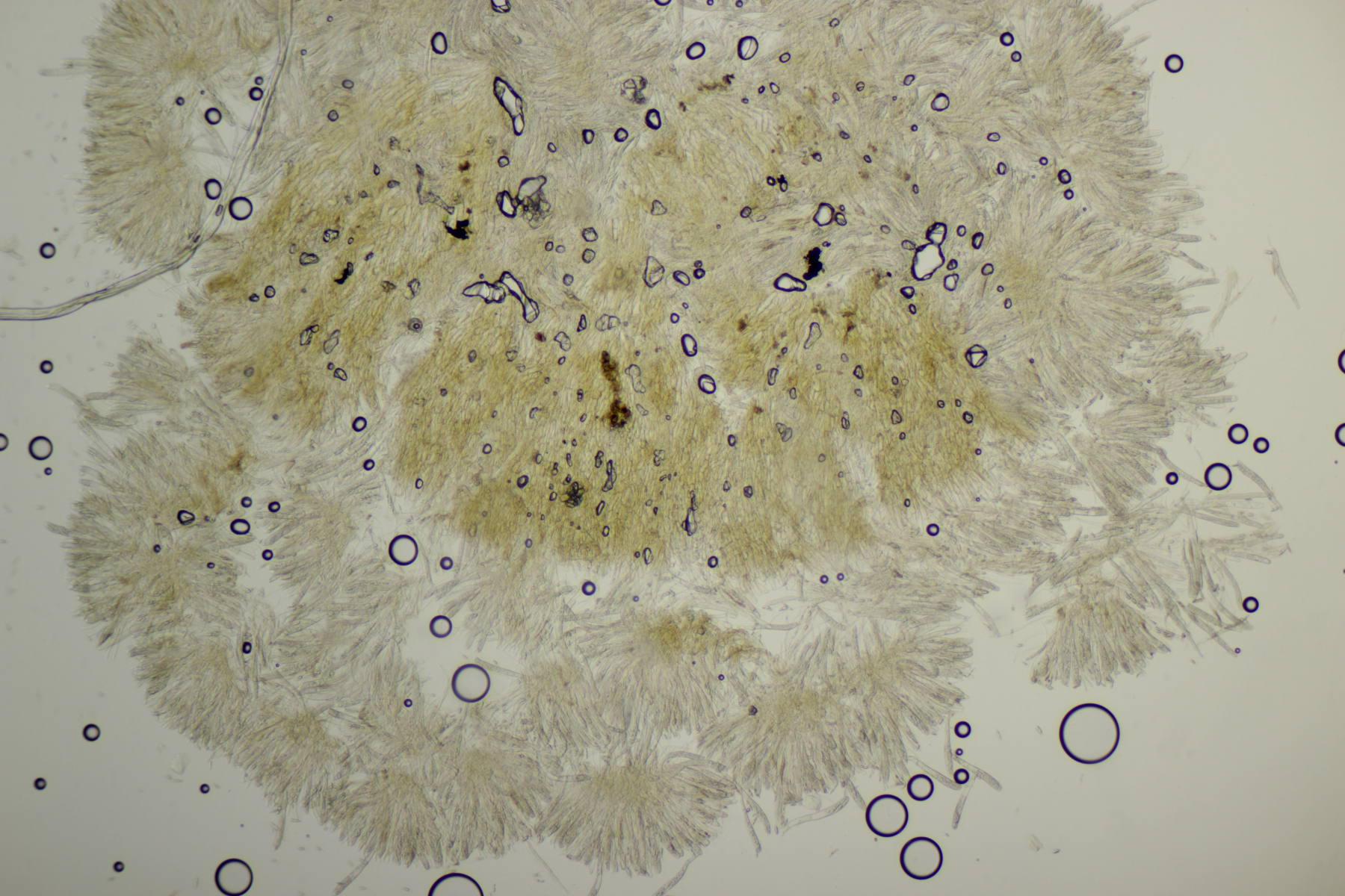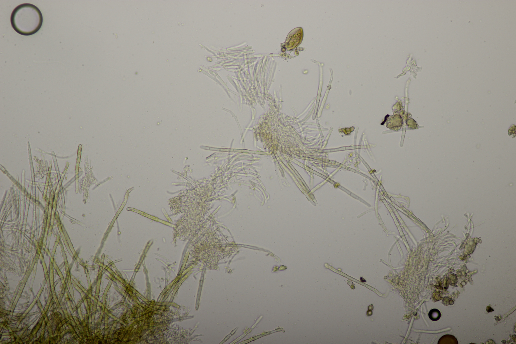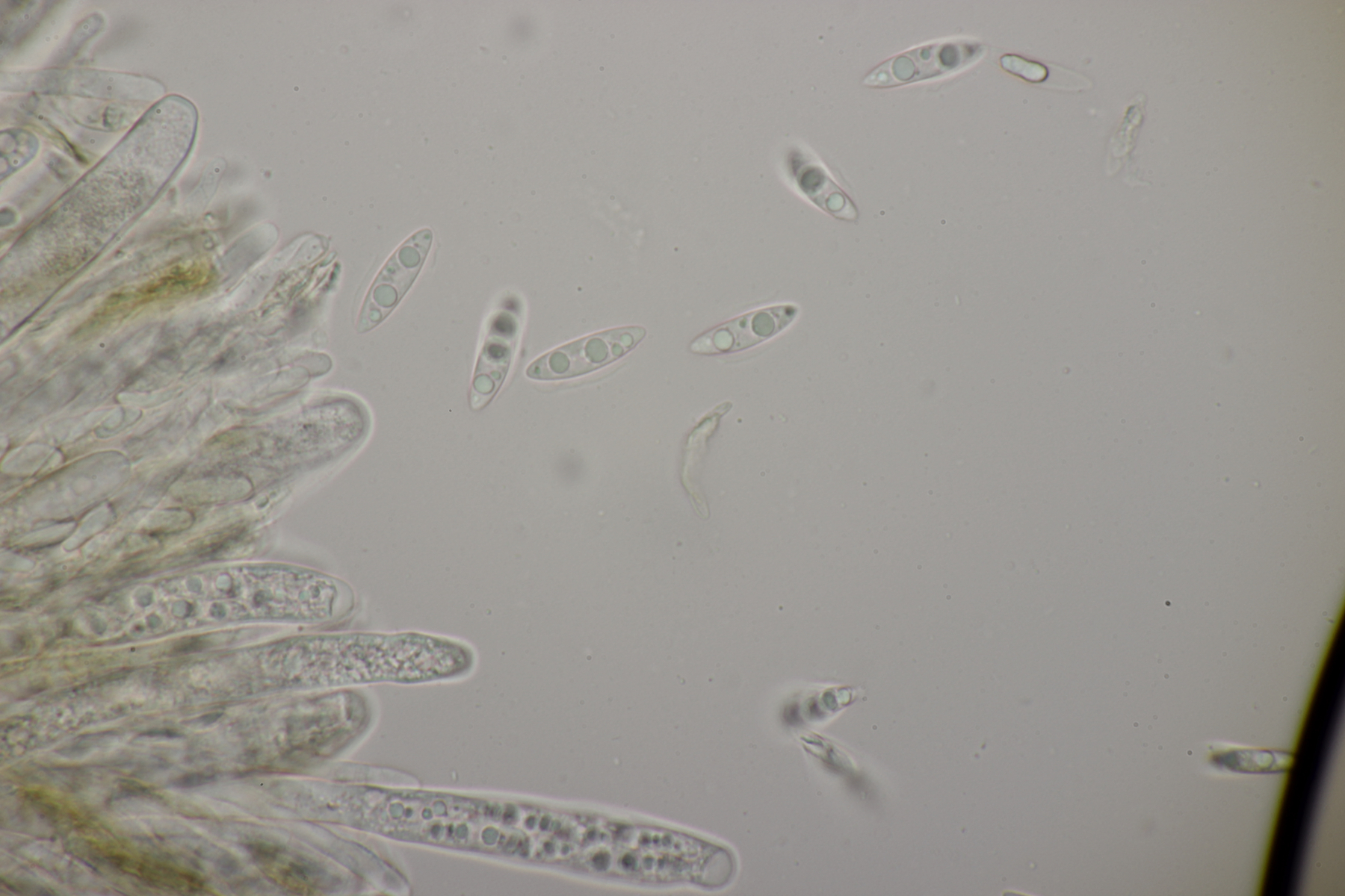 2. Hier hatte Jan-Arne nicht mal eine Idee, ob Asco- oder Basidiomycet. Ich hatte zwar auch etwas mitgenommen und reingelinst, aber es war weder erhellend, noch sah es hübsch aus.