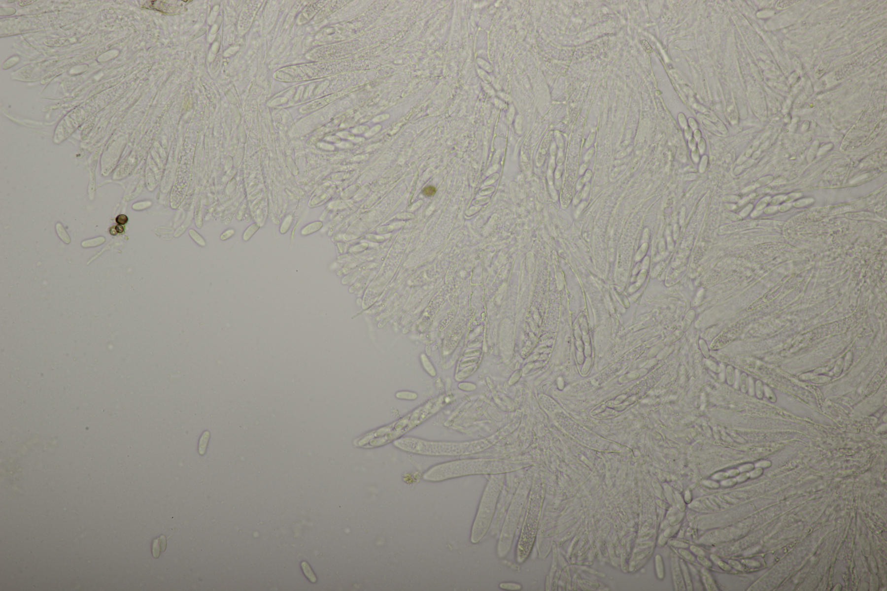 Ich habe in der Zwischenzeit noch mal die beiden Ascomyceten genauer unter die Lupe genommen. Zunächst einmal die Nr. 7 vom Riesenbärenklau. Ingo W hatte bei FB nachgefragt, ob die Fruchtkörper Stiele haben. Das fällt mir etwas schwer zu sagen. Jung sind scheinbar extrem kurze Stiele vorhanden, die dann aber im Alter unter dem Fruchtkörper komplett verschwinden. Ich habe auch insgesamt 2 Sporen finden können, die zweifach septiert sind. Es sieht so aus, als wäre die Spore erst in der Mitte septiert und dann noch mal eine der beiden Hälften in deren Mitte septiert. Die Asci hatten Haken. Ich habe auch noch Material im Kühlschrank.