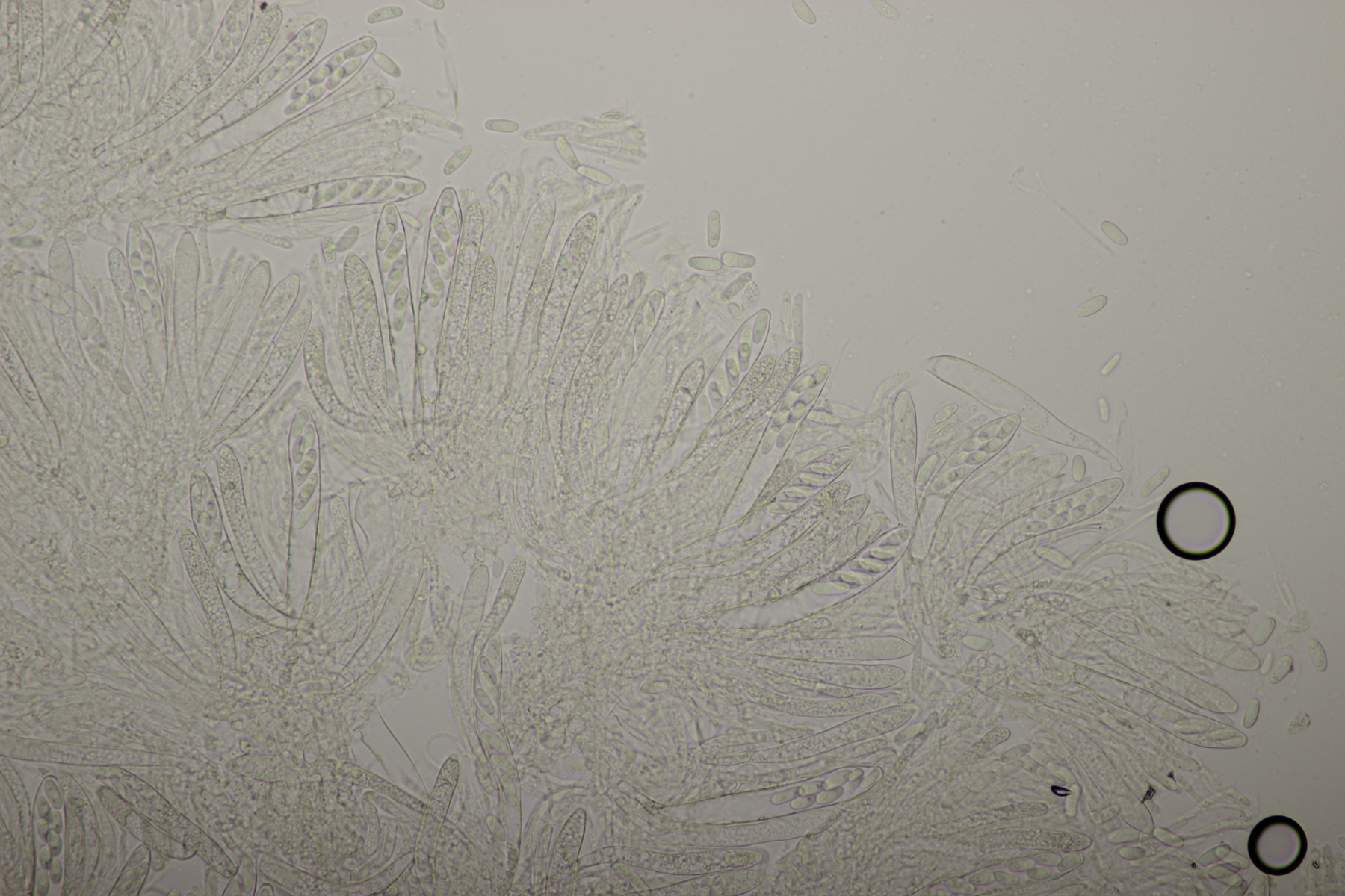 2. Hier hatte Jan-Arne nicht mal eine Idee, ob Asco- oder Basidiomycet. Ich hatte zwar auch etwas mitgenommen und reingelinst, aber es war weder erhellend, noch sah es hübsch aus.