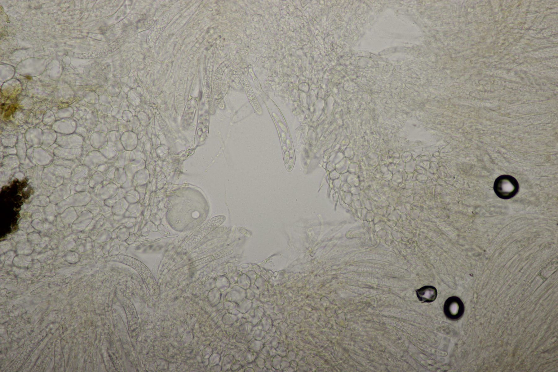 2. Hier hatte Jan-Arne nicht mal eine Idee, ob Asco- oder Basidiomycet. Ich hatte zwar auch etwas mitgenommen und reingelinst, aber es war weder erhellend, noch sah es hübsch aus.
