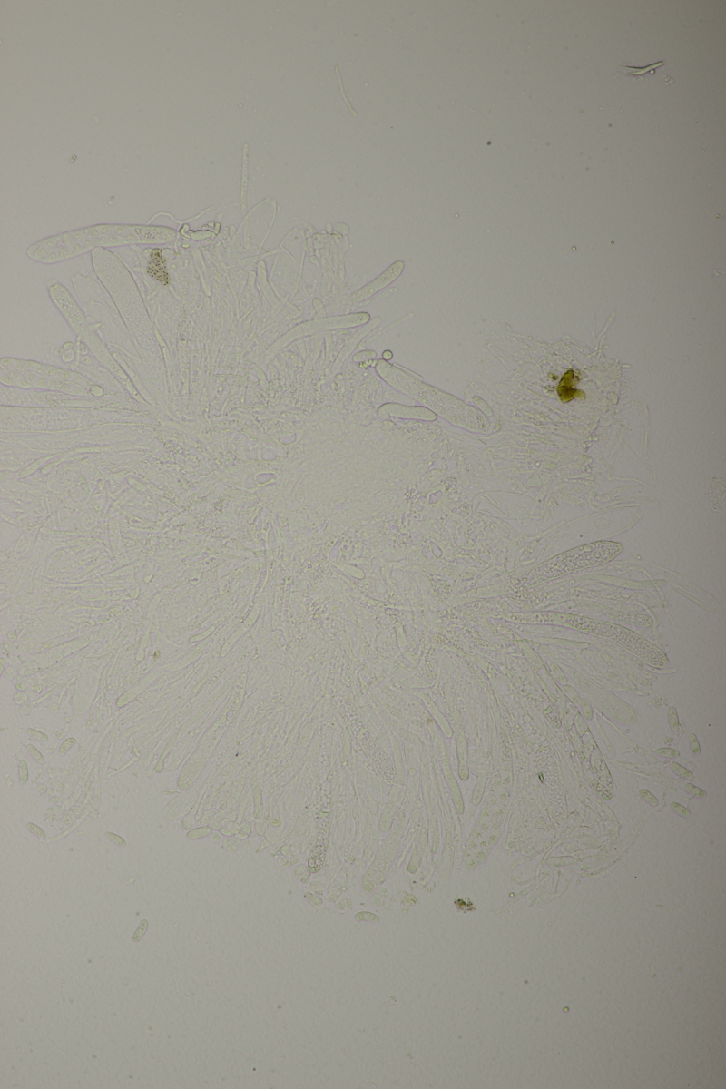 2. Hier hatte Jan-Arne nicht mal eine Idee, ob Asco- oder Basidiomycet. Ich hatte zwar auch etwas mitgenommen und reingelinst, aber es war weder erhellend, noch sah es hübsch aus.