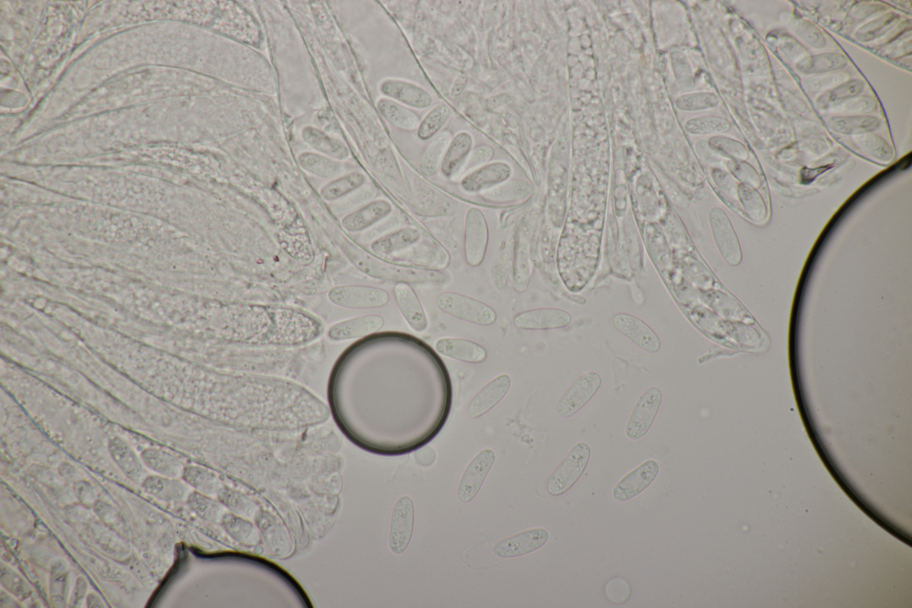 2. Hier hatte Jan-Arne nicht mal eine Idee, ob Asco- oder Basidiomycet. Ich hatte zwar auch etwas mitgenommen und reingelinst, aber es war weder erhellend, noch sah es hübsch aus.
