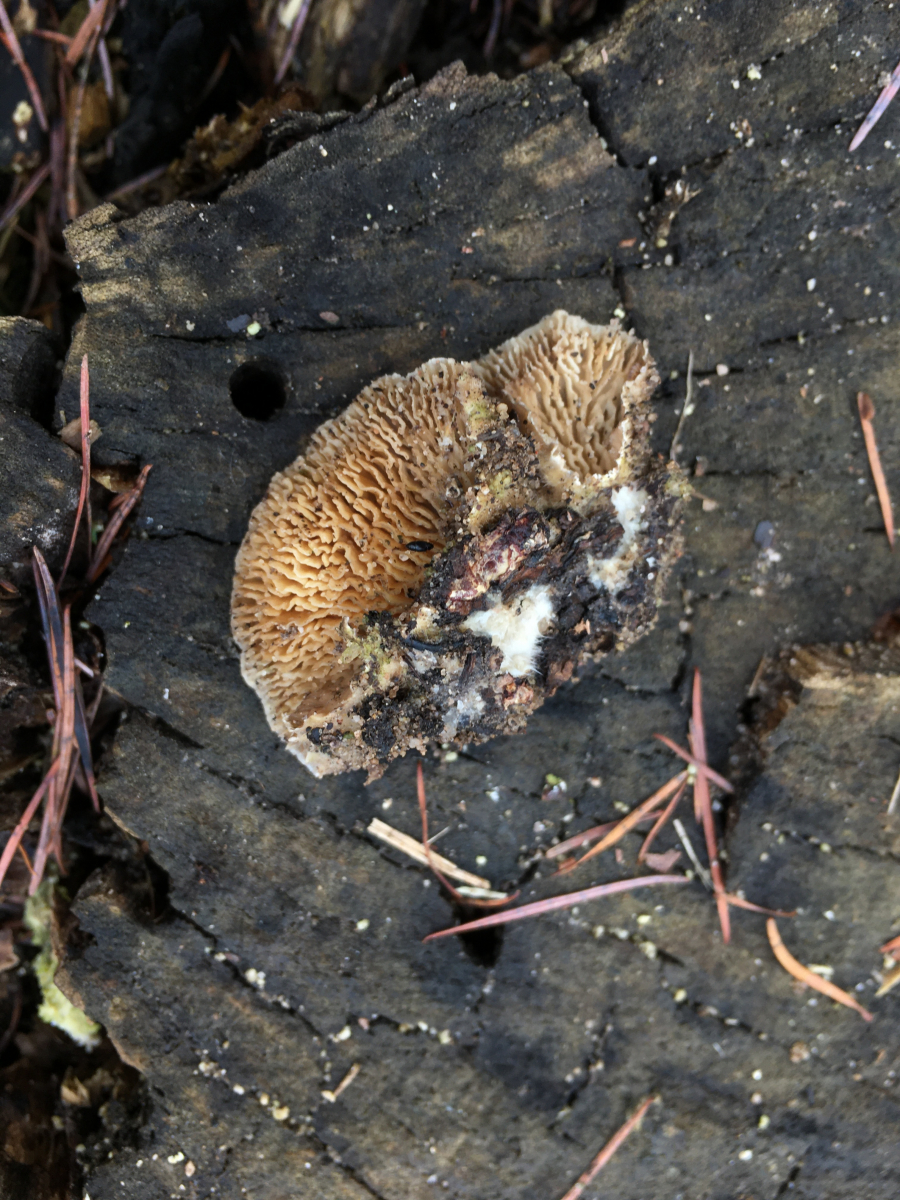 Den fand ich zwar bisher nur deutlich heller, aber Daedalea/Daedaleopsis möchte ich aufgrund des Erscheinungsbildes, zudem oberseitig behaart (hat Gleophyllum wohl auch nicht) und nicht rötend eigentlich ausschliessen.