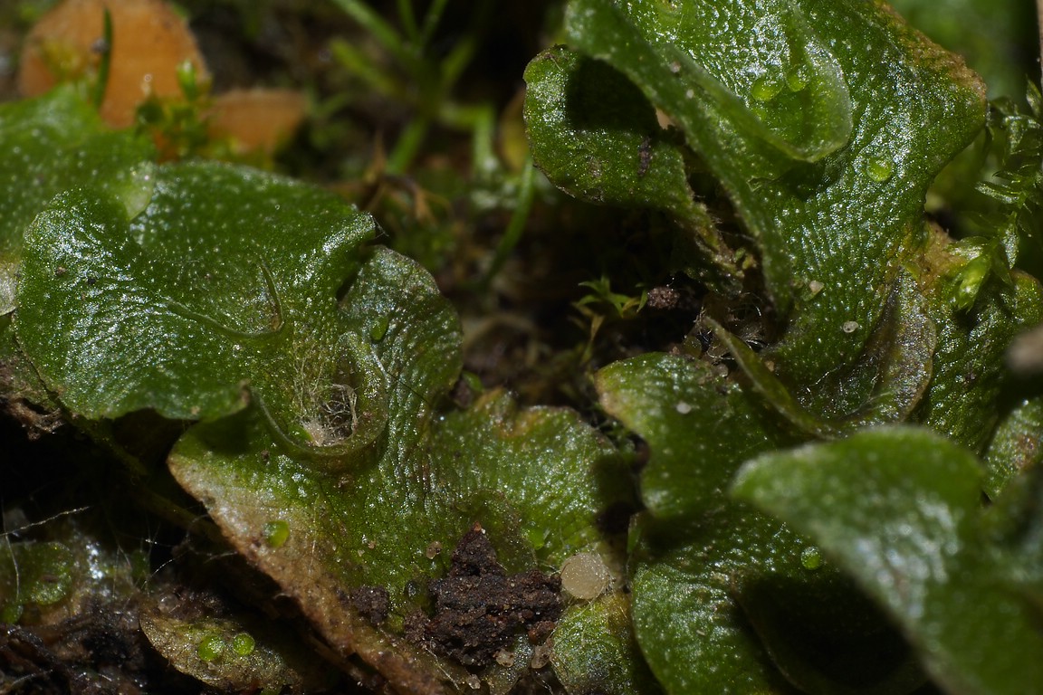 Was das Moos und den Pilz angeht: Von Moos habe ich ja keine Ahnung, aber der Pilz erinnert mich stark an Octosporopsis nicolaii, womit der Wirt dann Lunularia cruciata wäre. Und jetzt beim zweiten Blick sehe ich auch die halbmondförmigen Dinger auf den Moosblättchen! Auch ein toller Fund, der bei Pilze-Deutschland bislang nur mit Funden aus Bochum und Düsseldorf eingetragen ist!