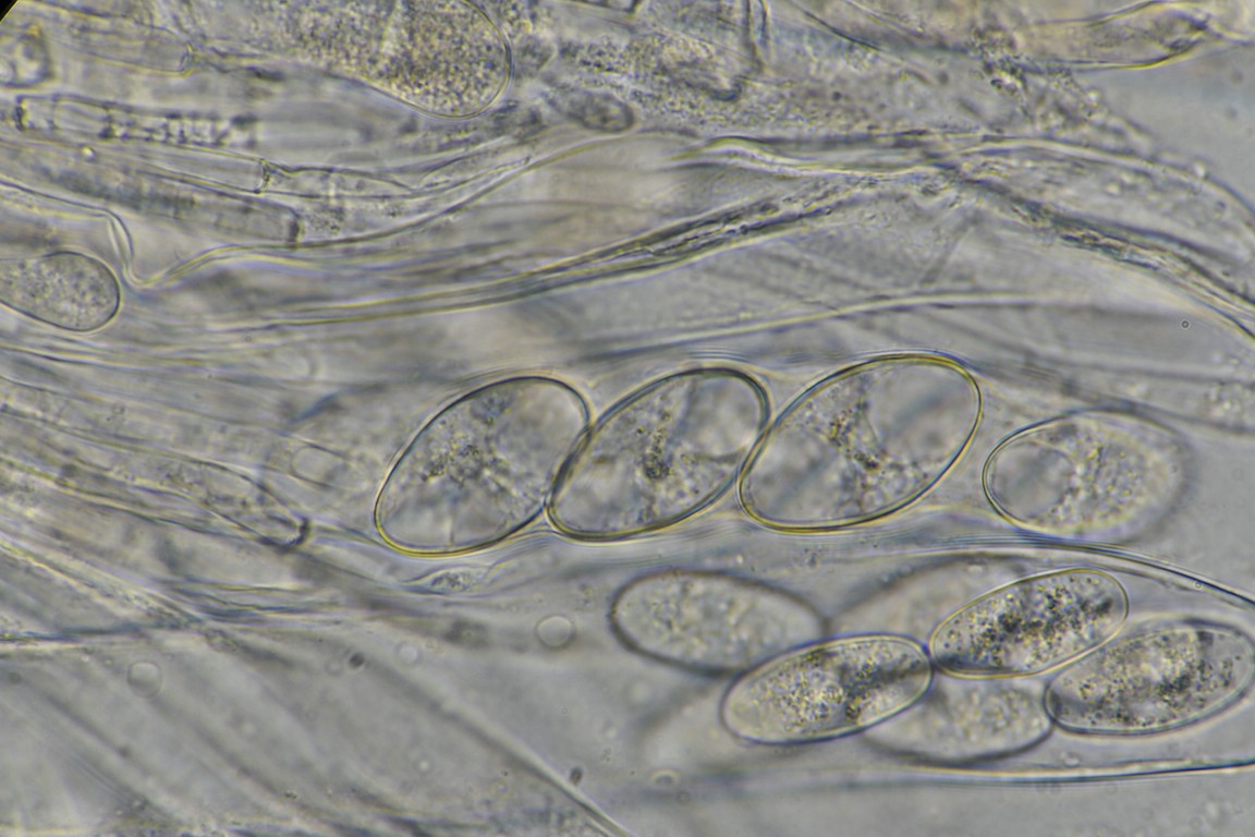 Hier zwei erste Übersichtsaufnahmen. Wenn ich es richtig sehe fällt auf, daß, wie es auch bei O. ithacaensis zu erwarten wäre, die Sporen manchmal uni- und manchmal biseriat angeordnet sind.