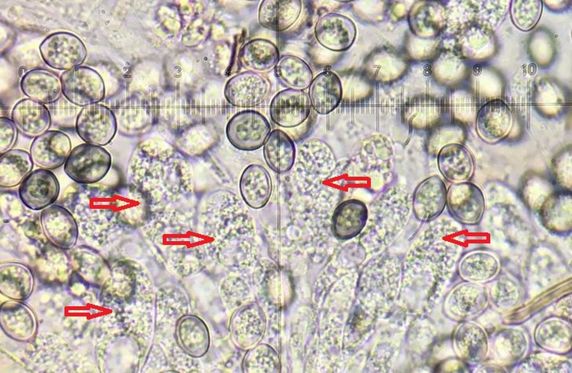 Ich habe mir erlaubt das 5. Bild Deines 2. Beitrages etwas zu bearbeiten und einige Asci mit Pfeilen versehen.