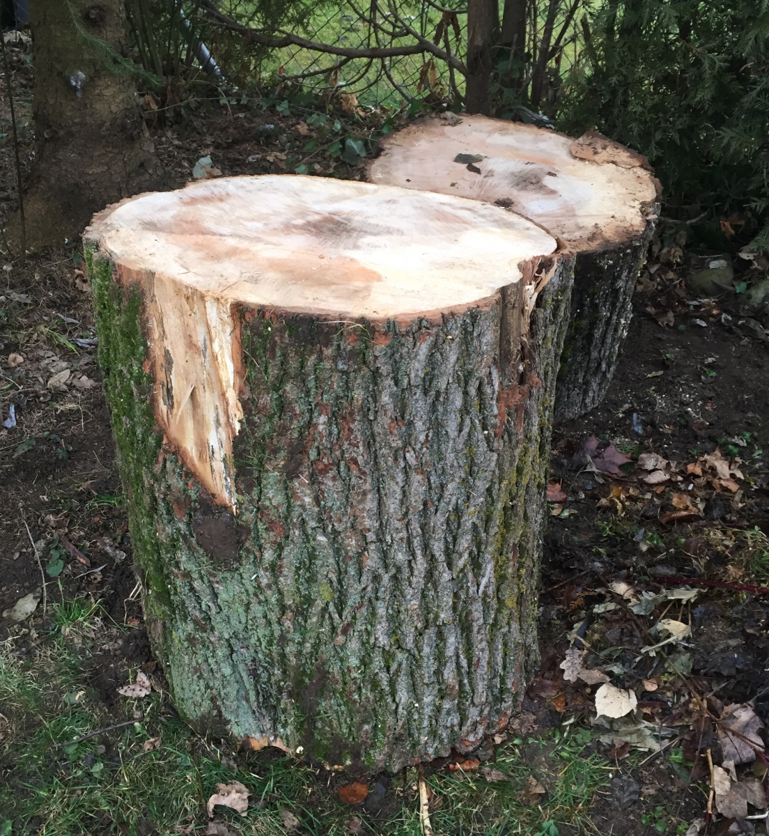 Nun ja, es war schon noch ein „Brocken“ Arbeit da die Pappel einen Durchmesser von 65 cm hat. Aber mein Mann und unser Freund haben mir die Dinger in den Garten geschleppt. Und da stehen sie jetzt