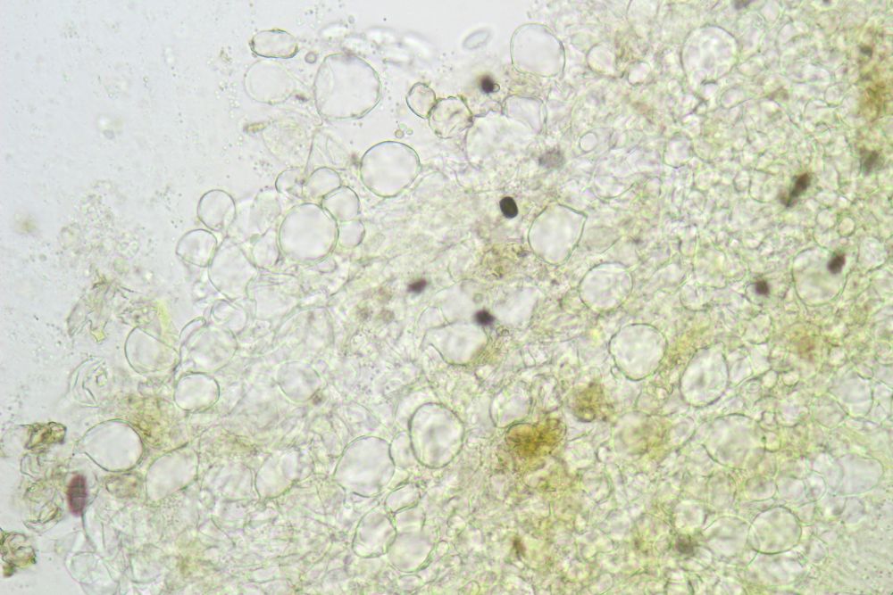 seit einiger Zeit hab ich ein ziemlich großes Einzelexemplar eines Ascobolus auf Oryx-Dung. Leider will das irgendwie nicht richtig ausreifen, hat aber immerhin einige reife Asci hervorgebracht, sodass ich das nun mal untersucht habe, bevor es sich noch anders überlegt.