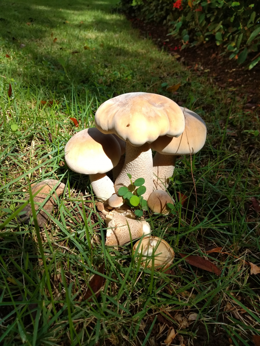 ich bin neu hier und hab gleich mal ein Rätsel mitgebracht. Diese wunderschönen Pilze fand ich vor meiner Tür und ich finde nicht raus, was das für Pilze sind. Sie riechen angenehm pilzig und schmecken roh wie ein nussiger Champignon (hab nur ganz vorsichtig ein winziges Stück gekostet).