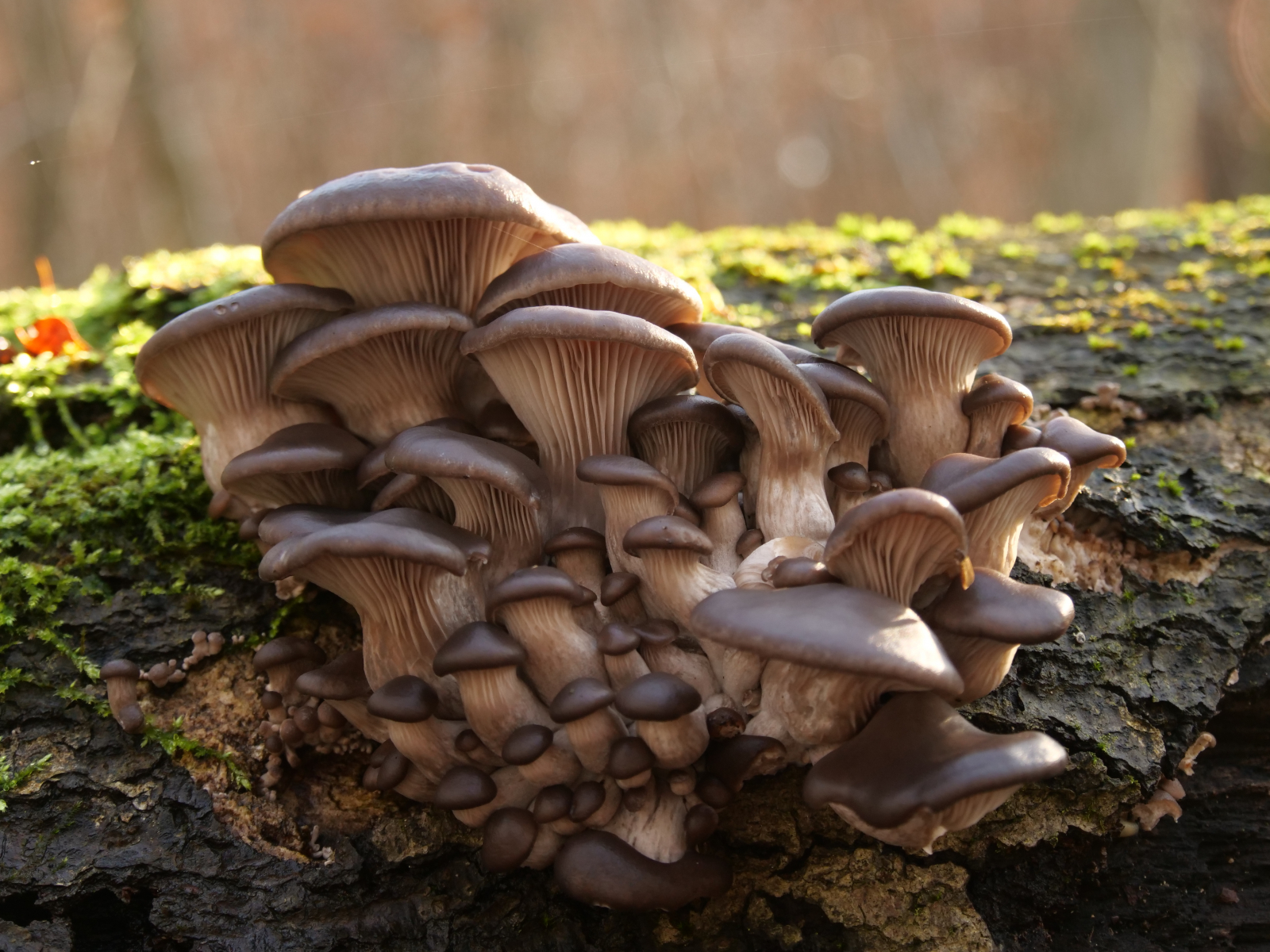 habe heute bei uns im Waldkindergarten jede Menge dieser Pilze gefunden - sind das Austernseitlinge? Sie wachsen gesellig an einer umgefallenen Buche.