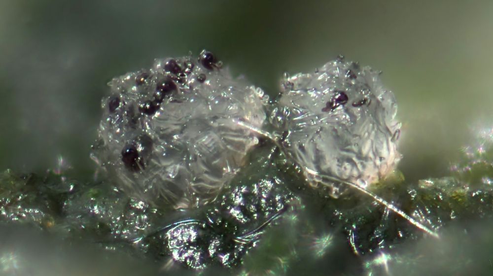 Es handelt sich um einen winziges Becherchen von ca. 0,15 mm Durchmesser. Das Substrat, ein Maus-Köttelchen misst auch nur ca. 3 x 1 mm. Da ist es schon nicht ganz einfach diesen Winzling sauber herunterzubekommen und dann zu präparieren. Klappt trotzdem jedes Mal wieder irgendwie.