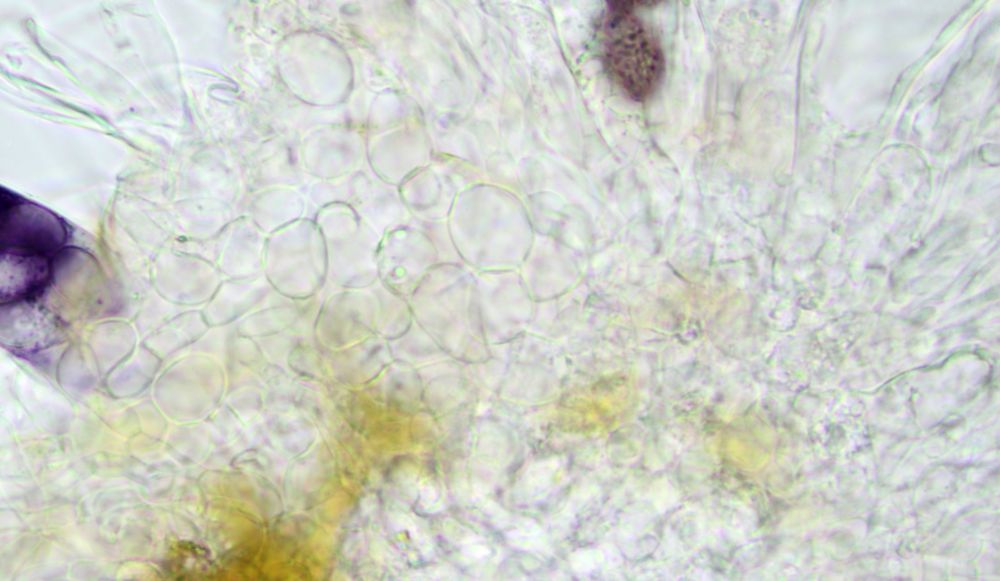 Die Art wurde mir ja schon mal vor langer Zeit geschickt, war da aber nur in schlechtem Zustand angekommen. Übereinstimmend mit allen Funden, die ich bislang kenne, sind die Sporen etwas länger und deutlich breiter als bei Van Brummelen angegeben.