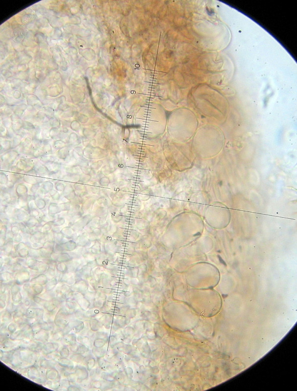 Habitus, Färbung und fehlende Pileozystiden lassen da nichts anderes zu. Auch ohne Sporen.